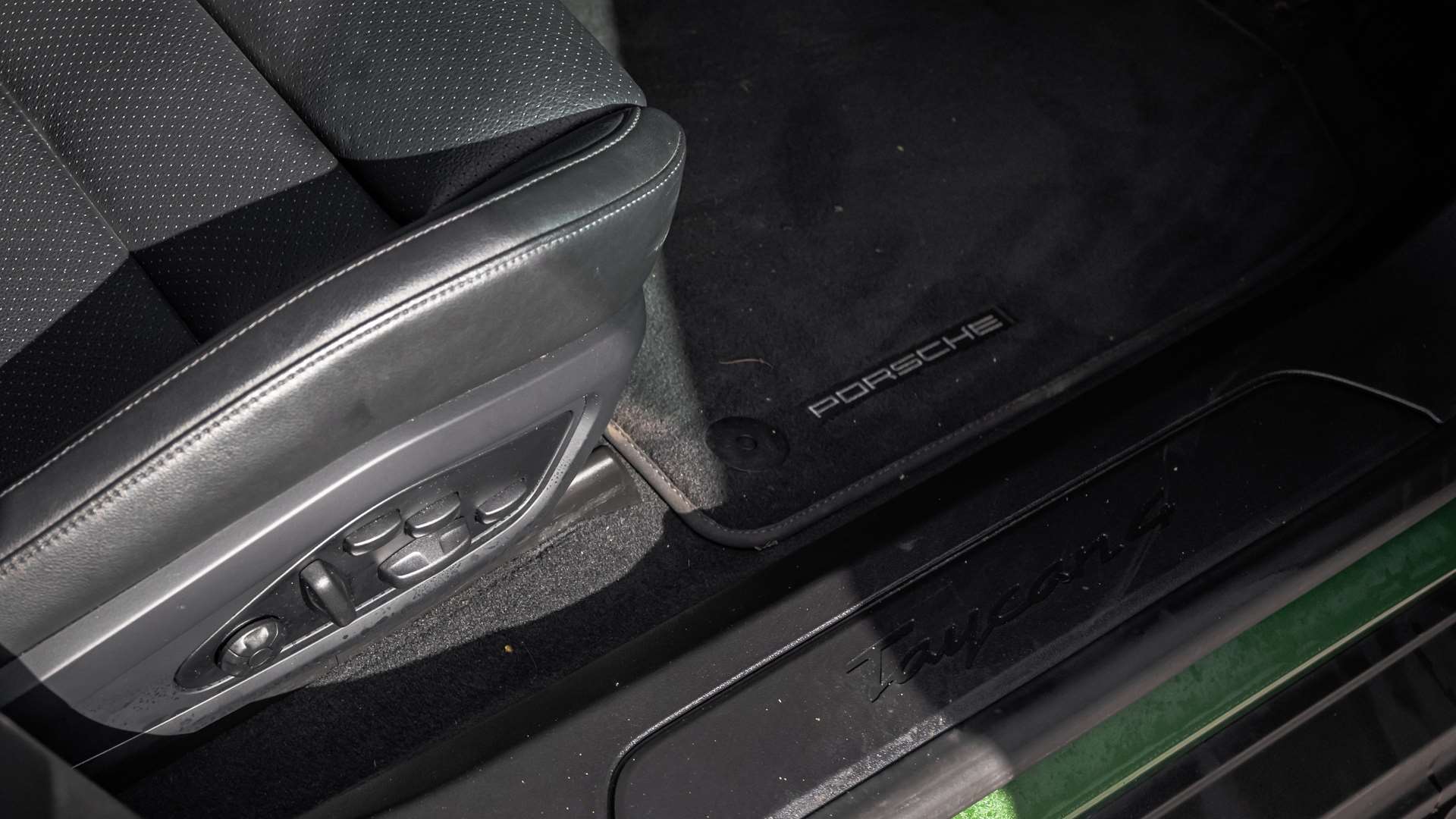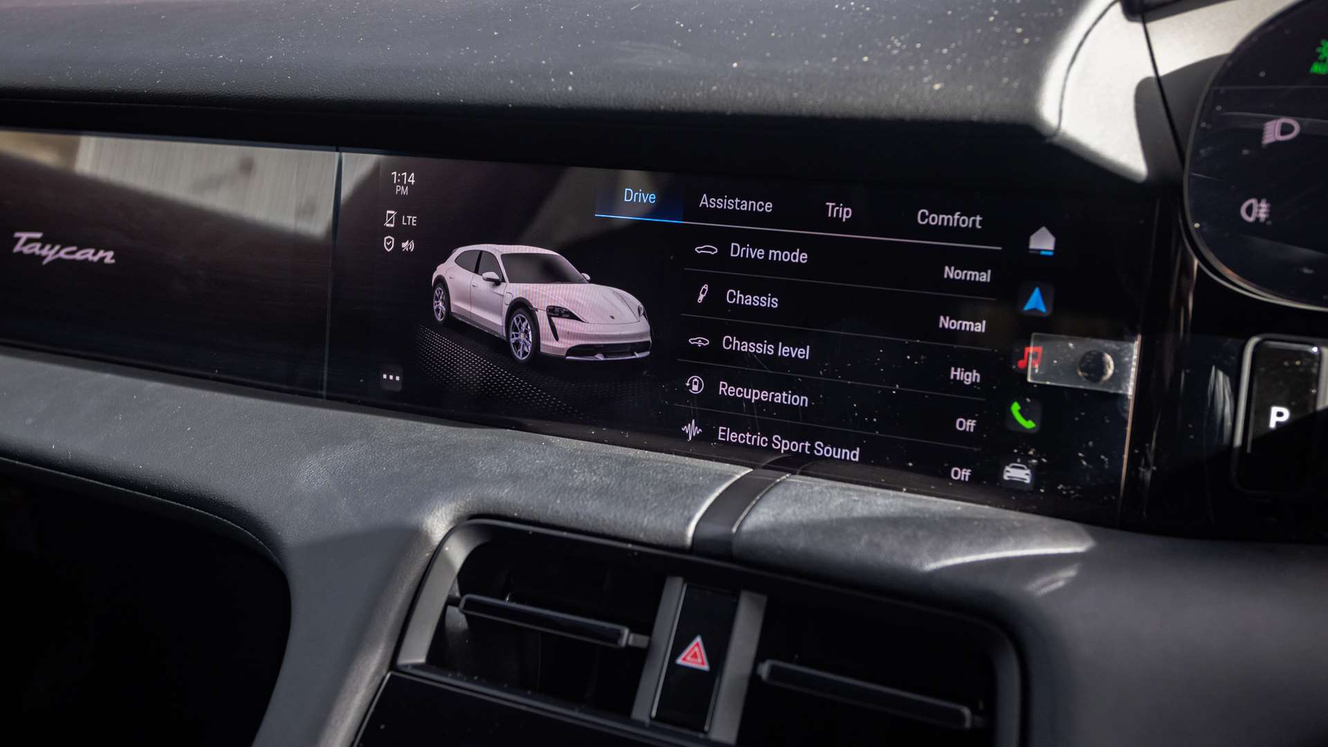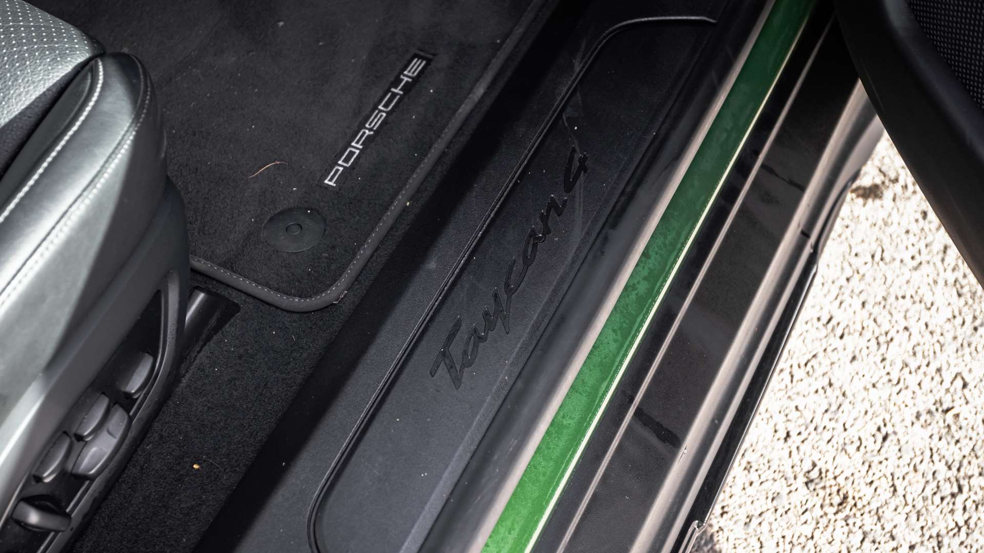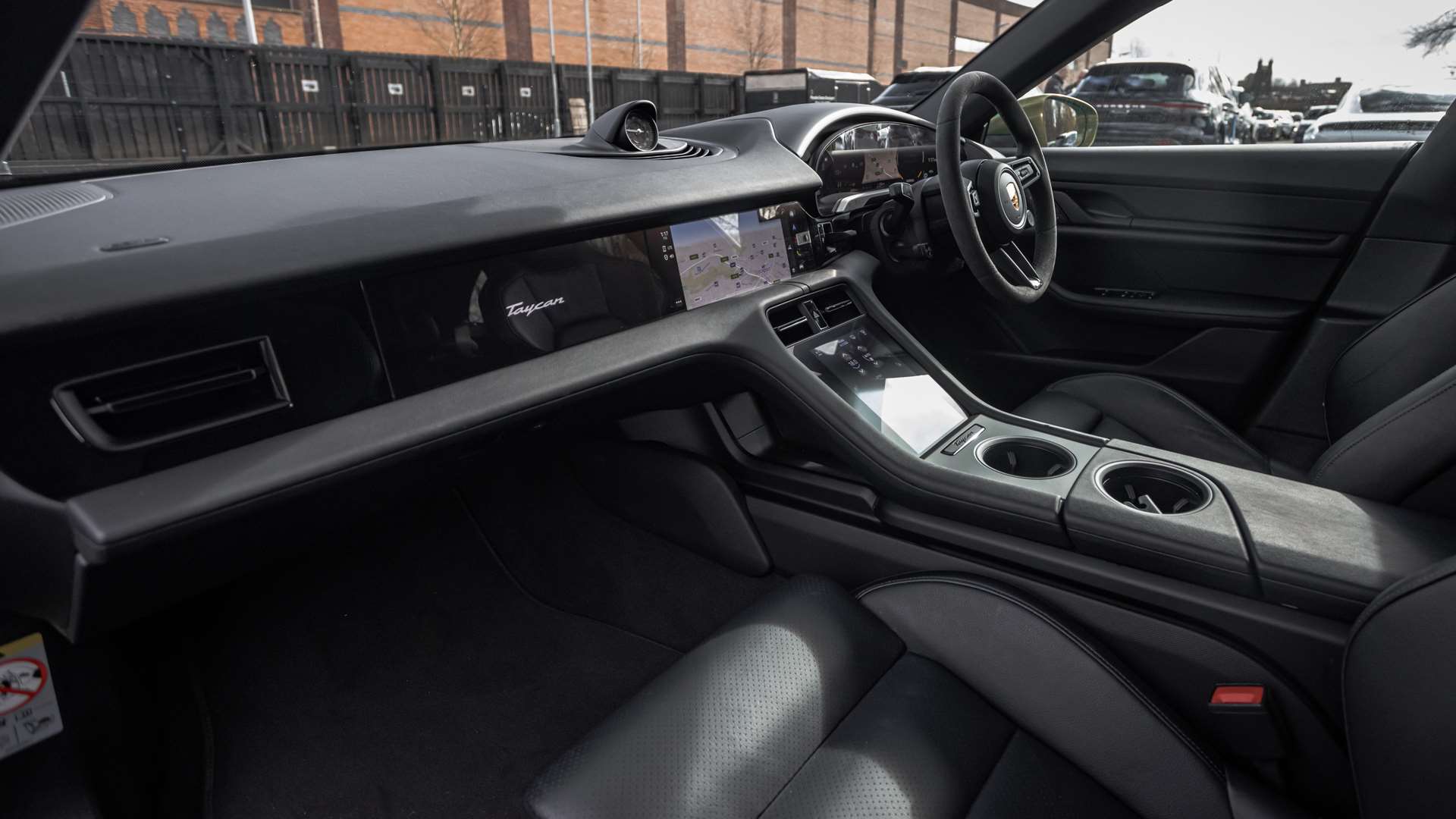 "Taycan badge on center console",