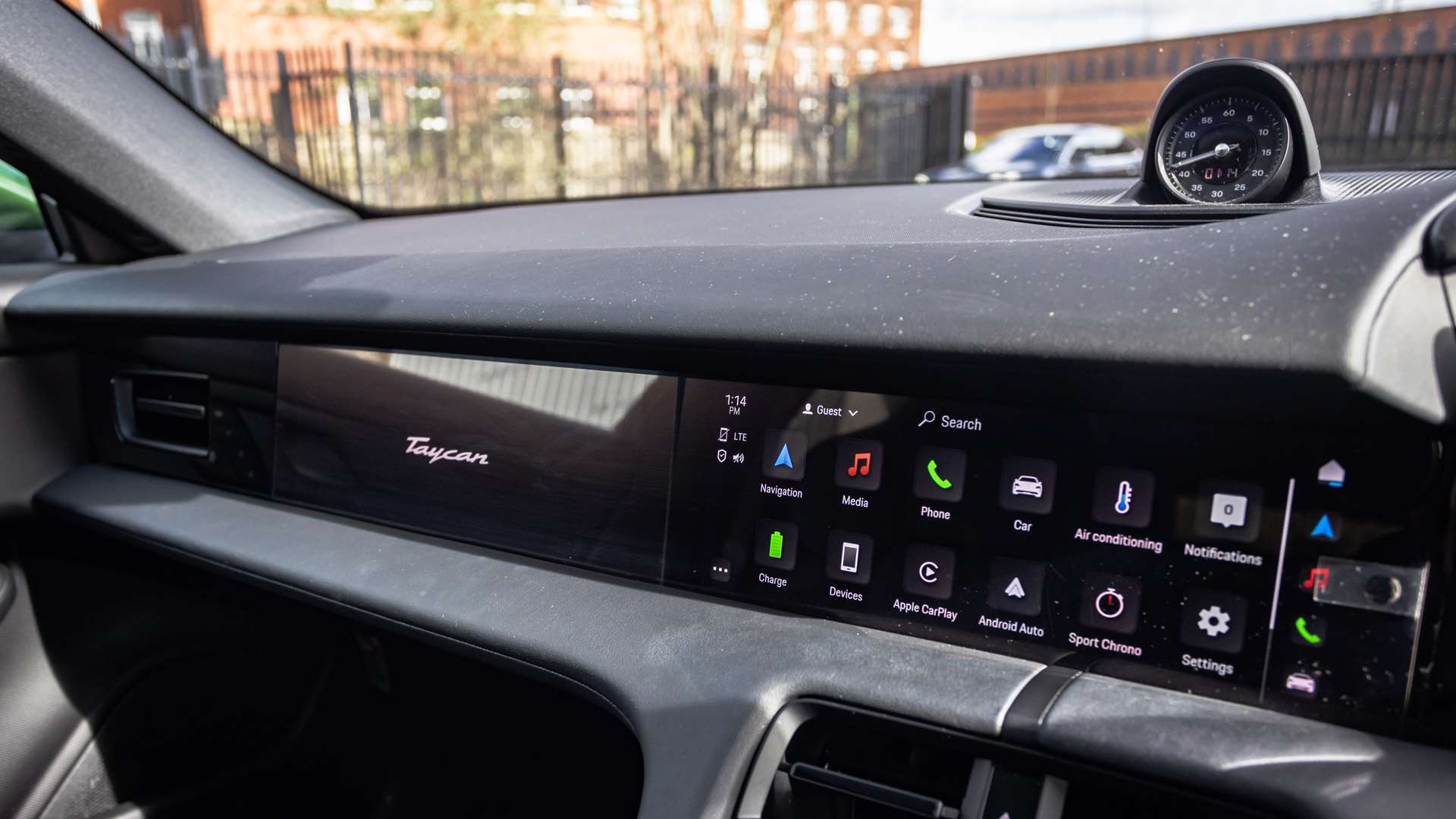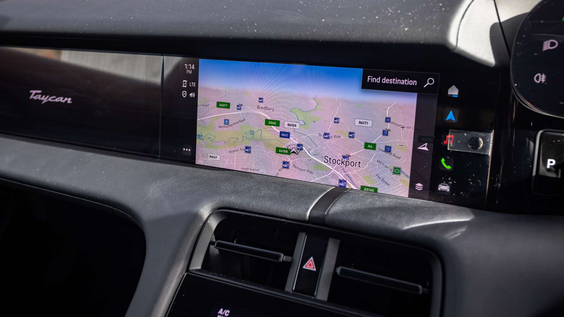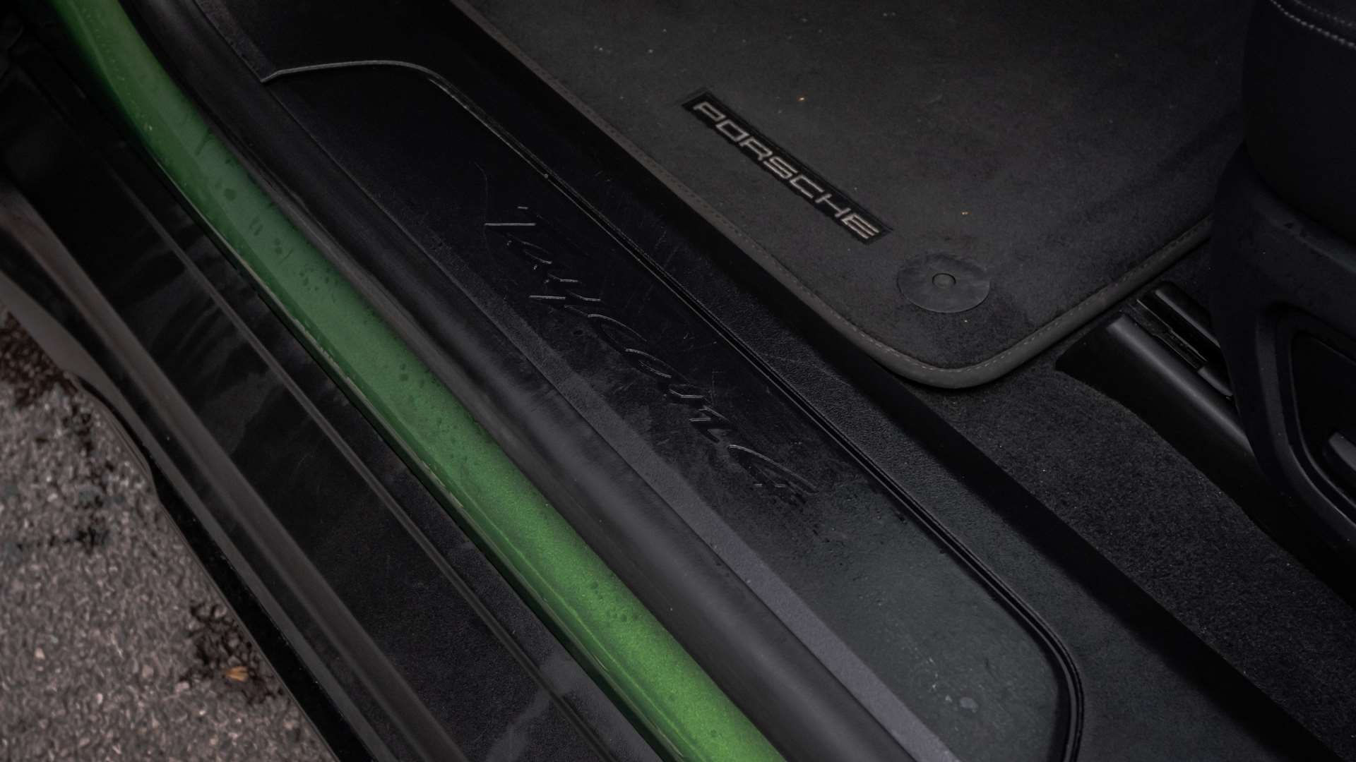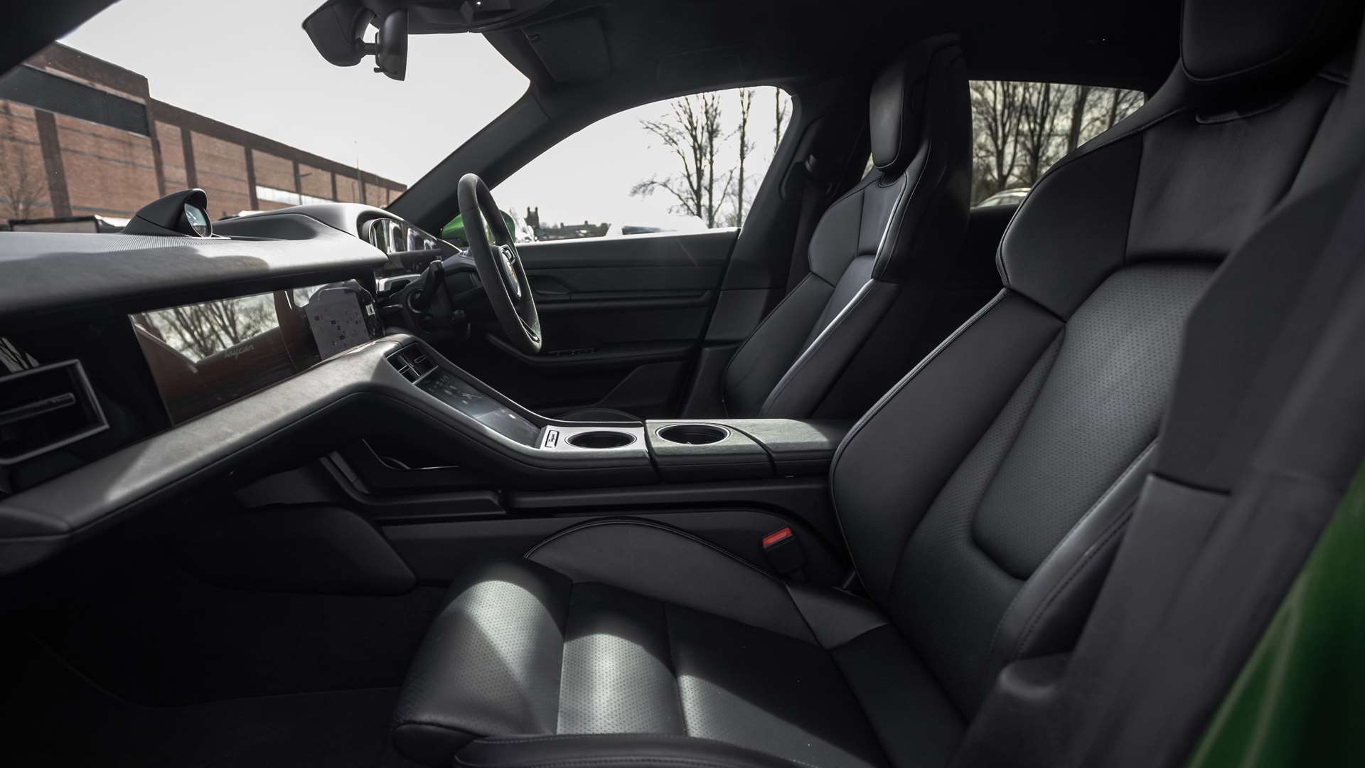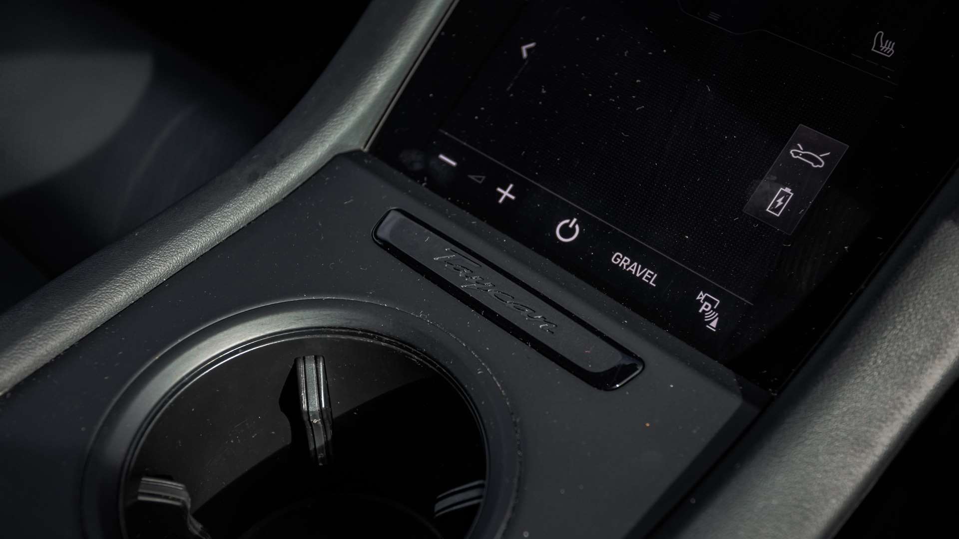 "Taycan badge on center console",