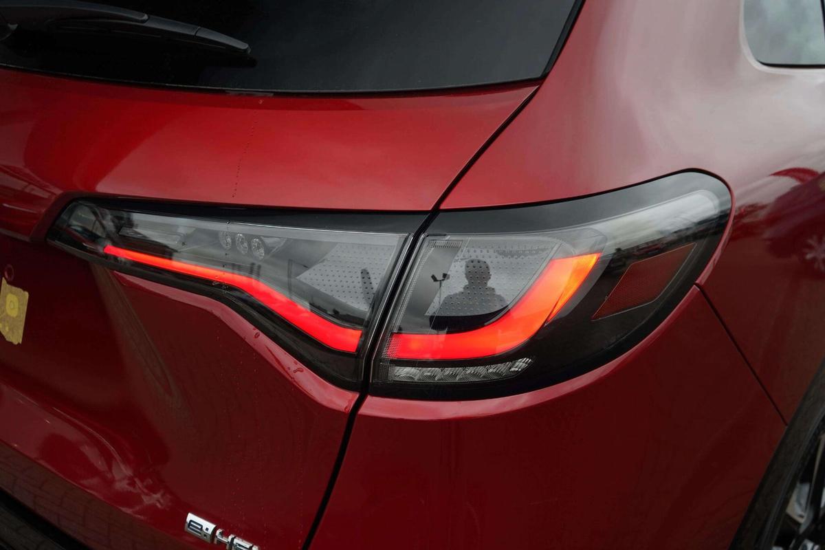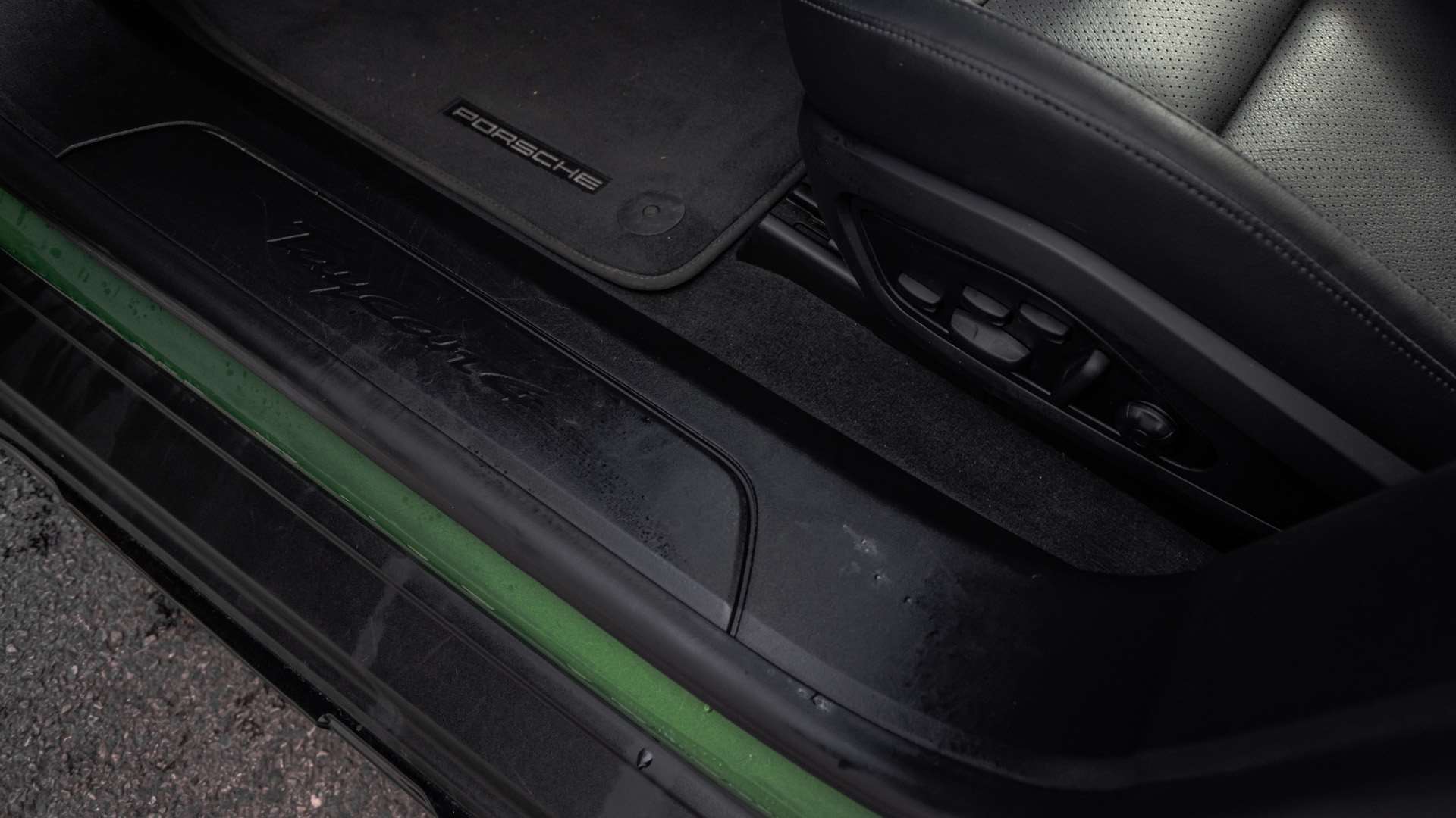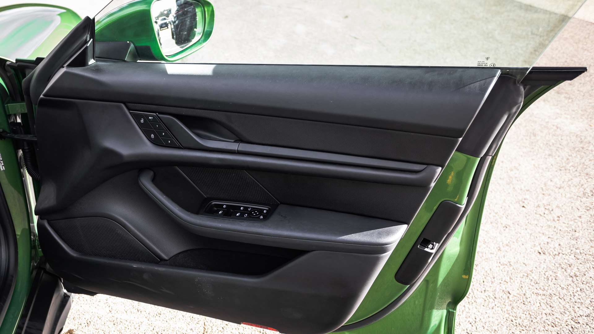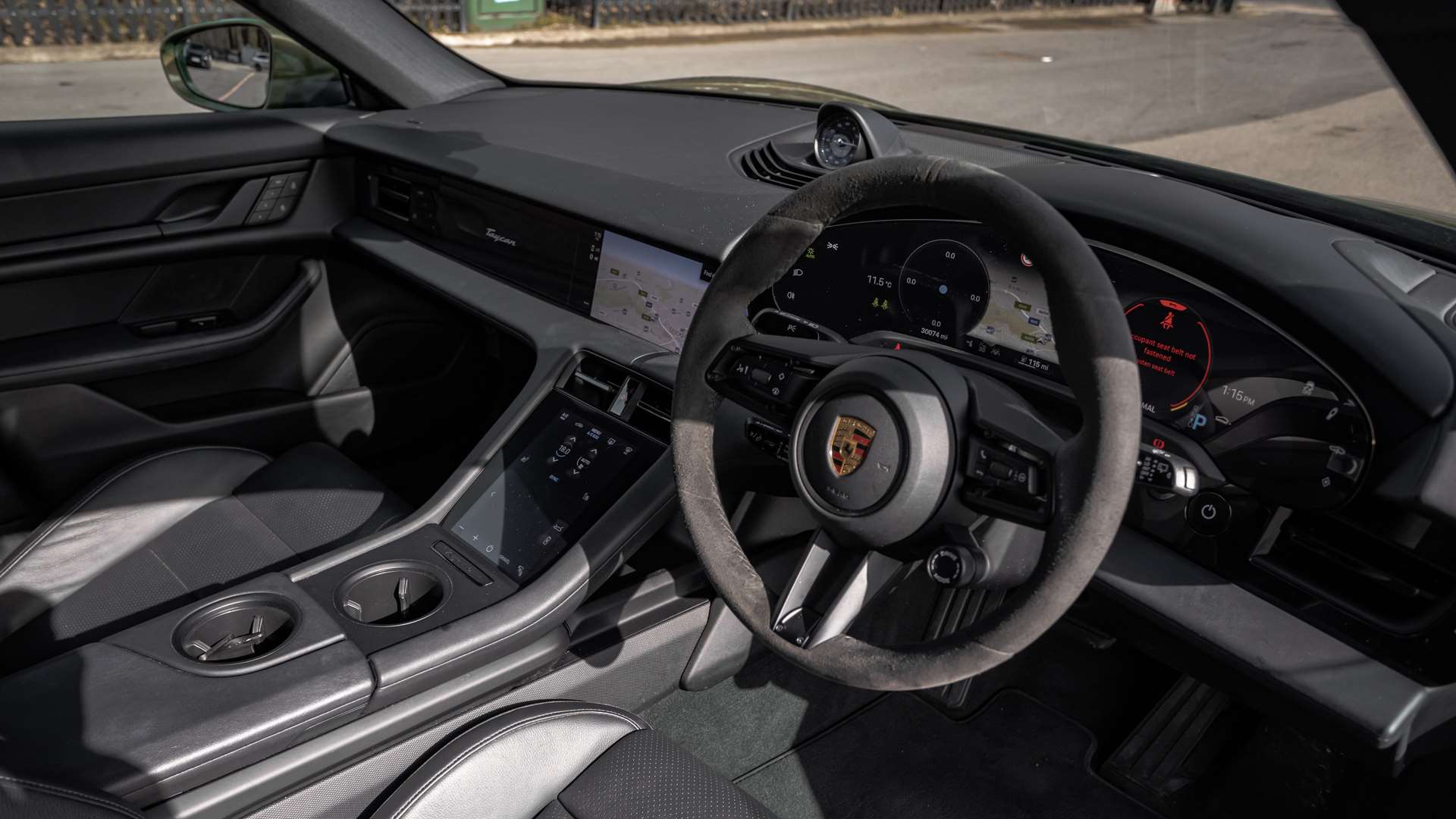 "Taycan badge on center console",
