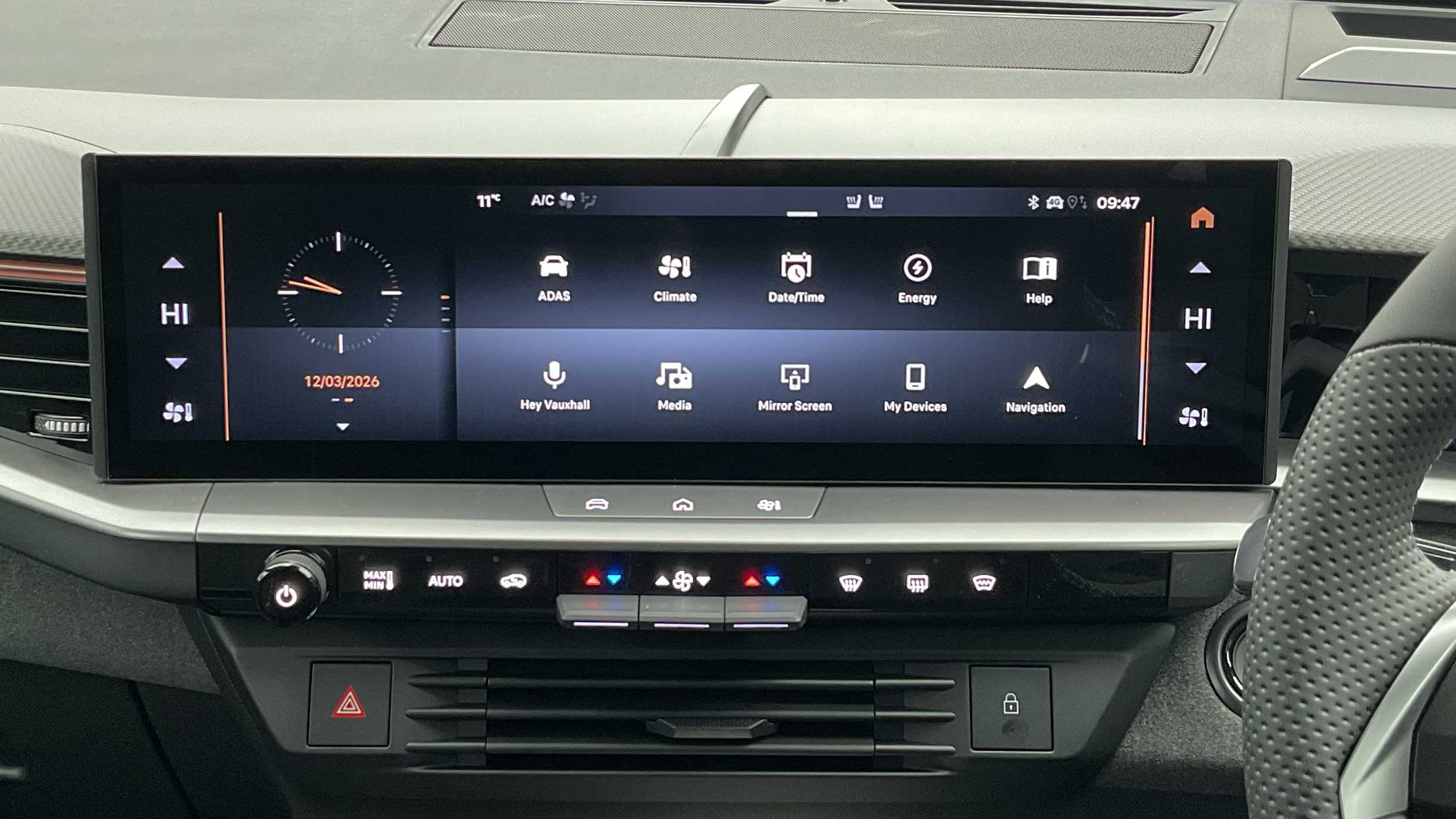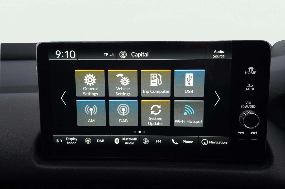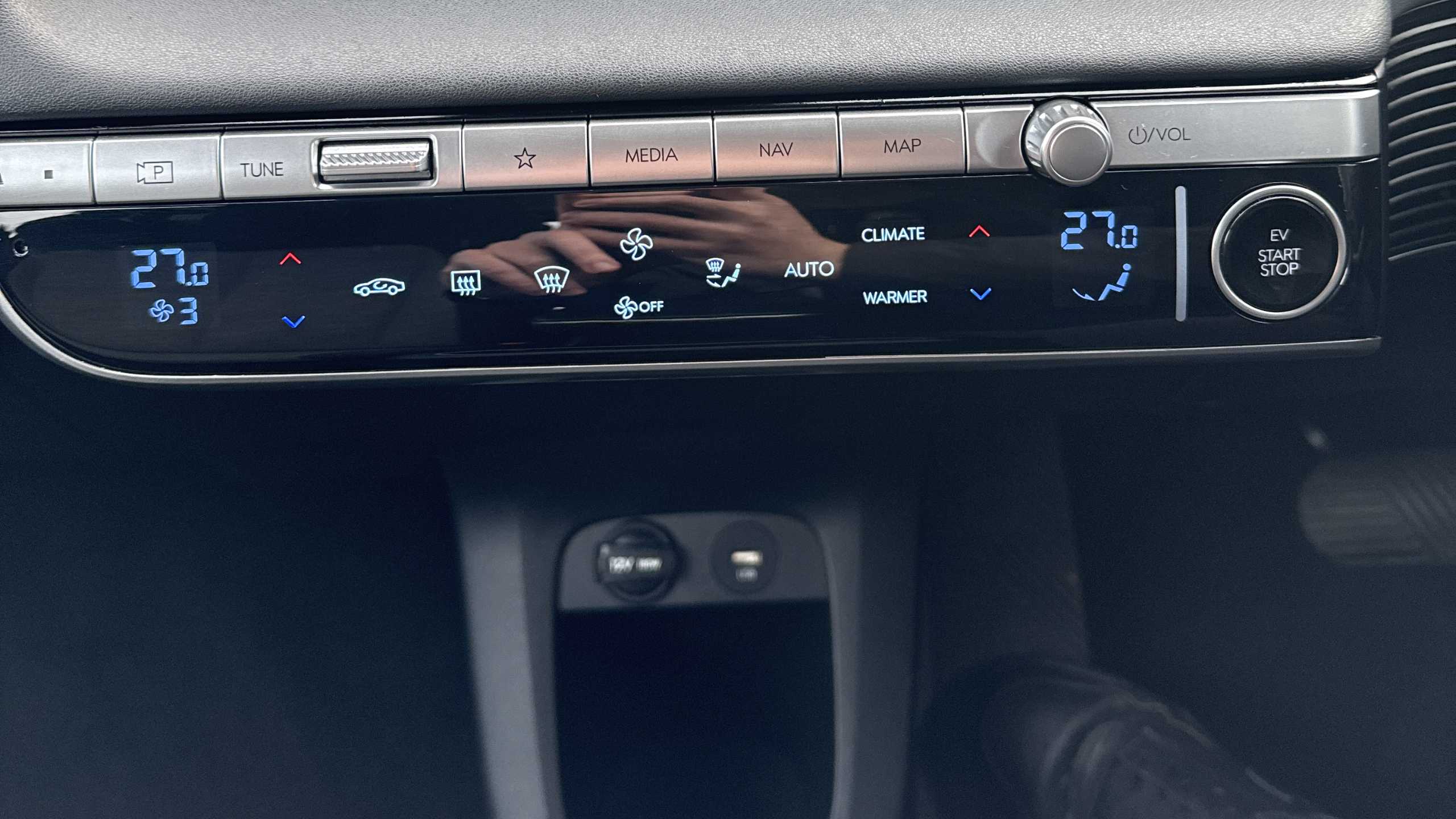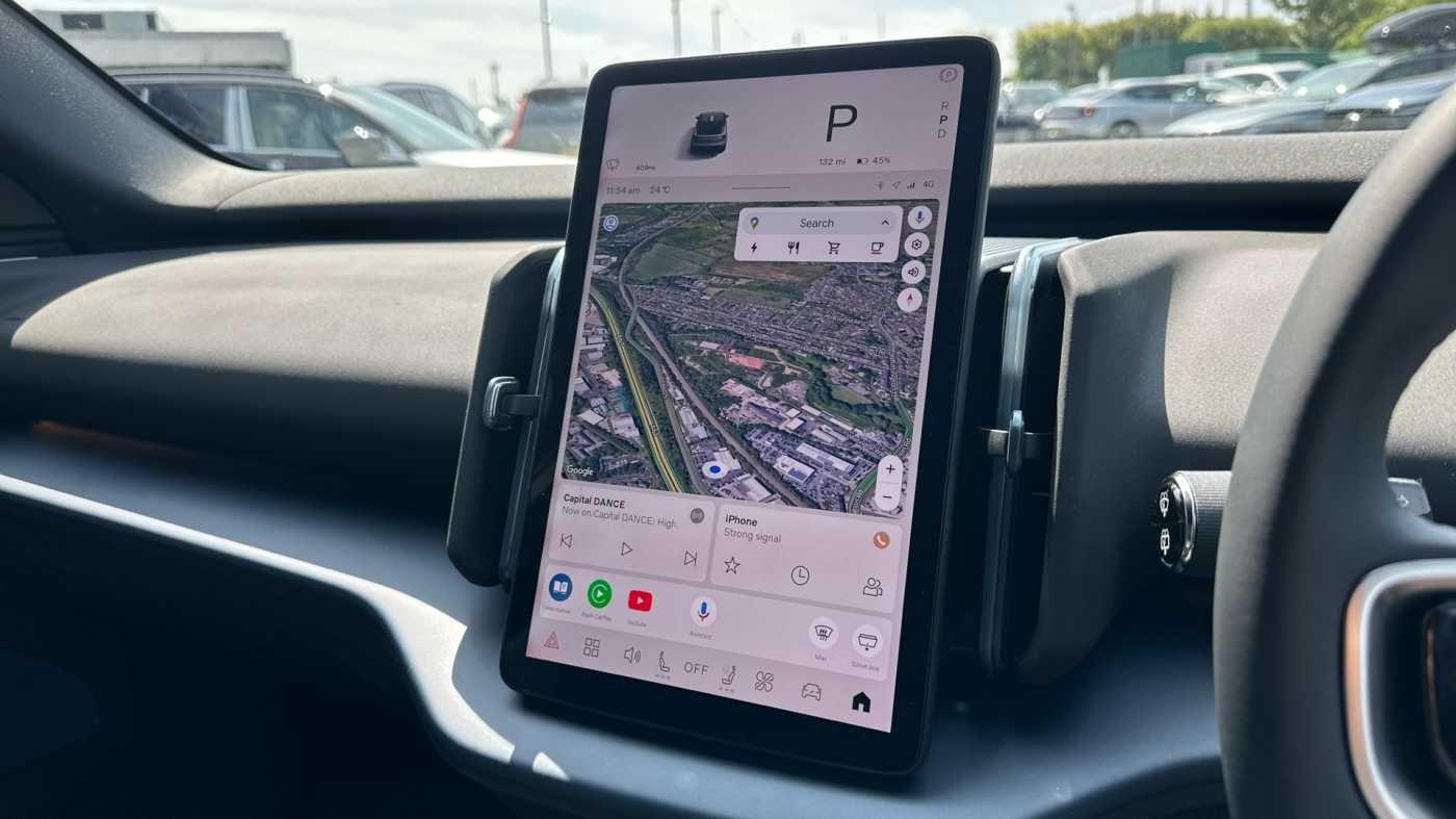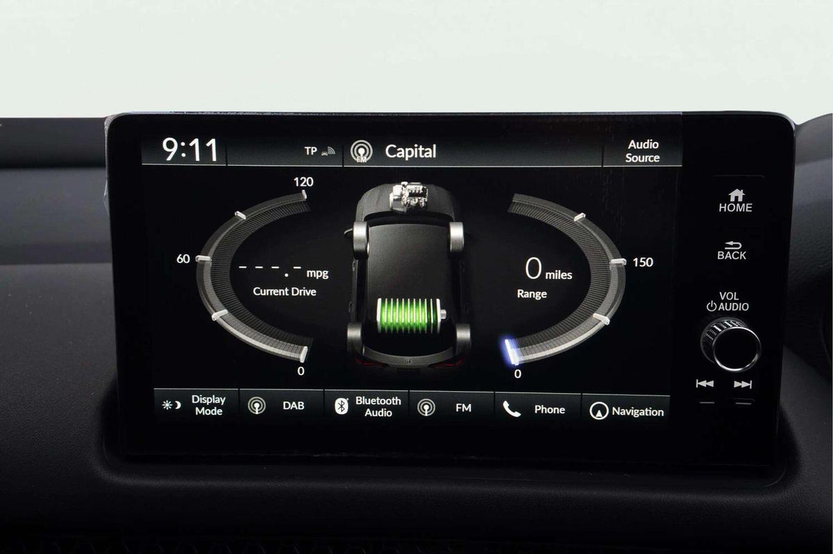 "Centre console with direct touch control includes climate settings, opening and closing charge port doors, battery level indicator, handwriting panel",