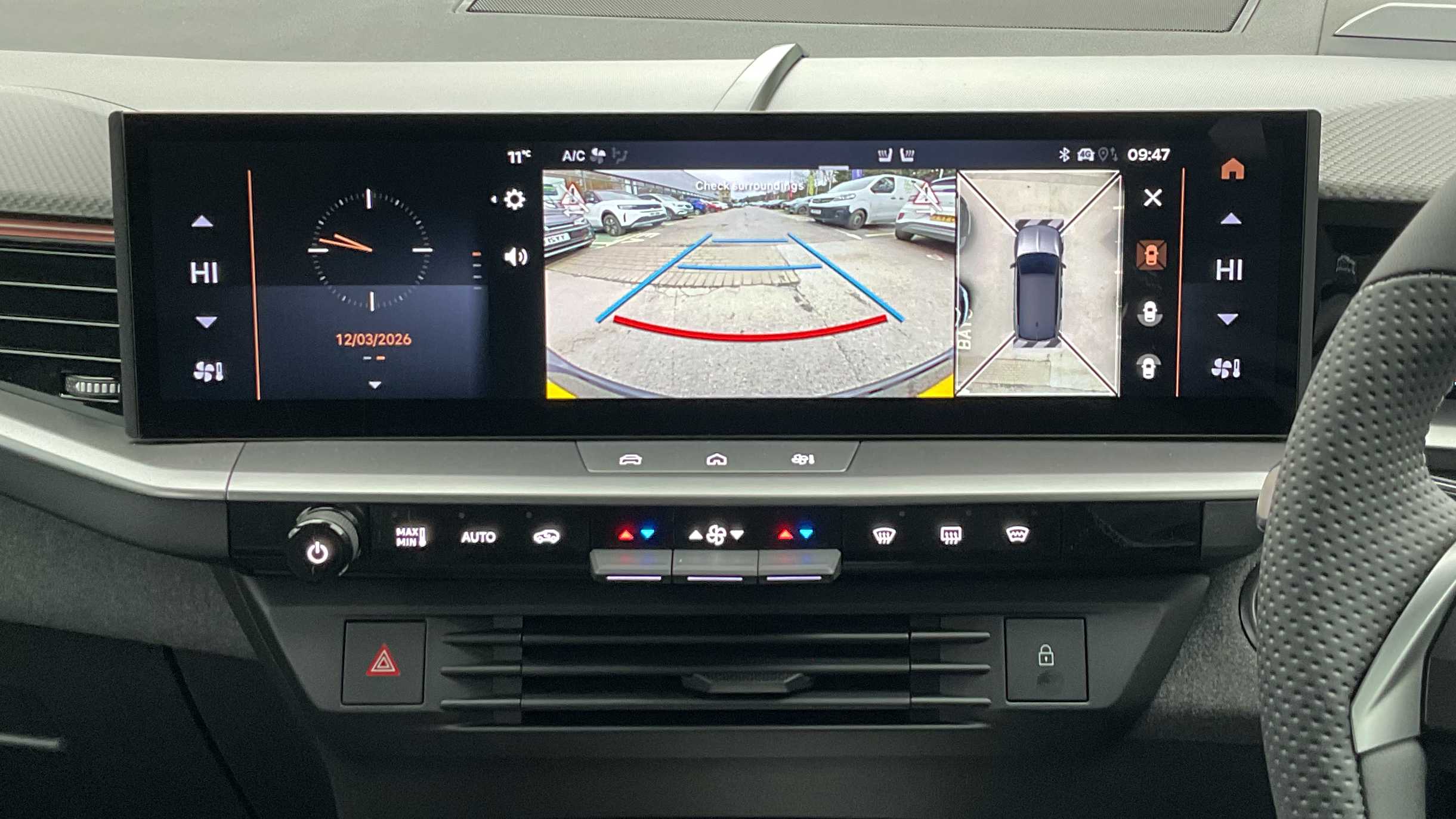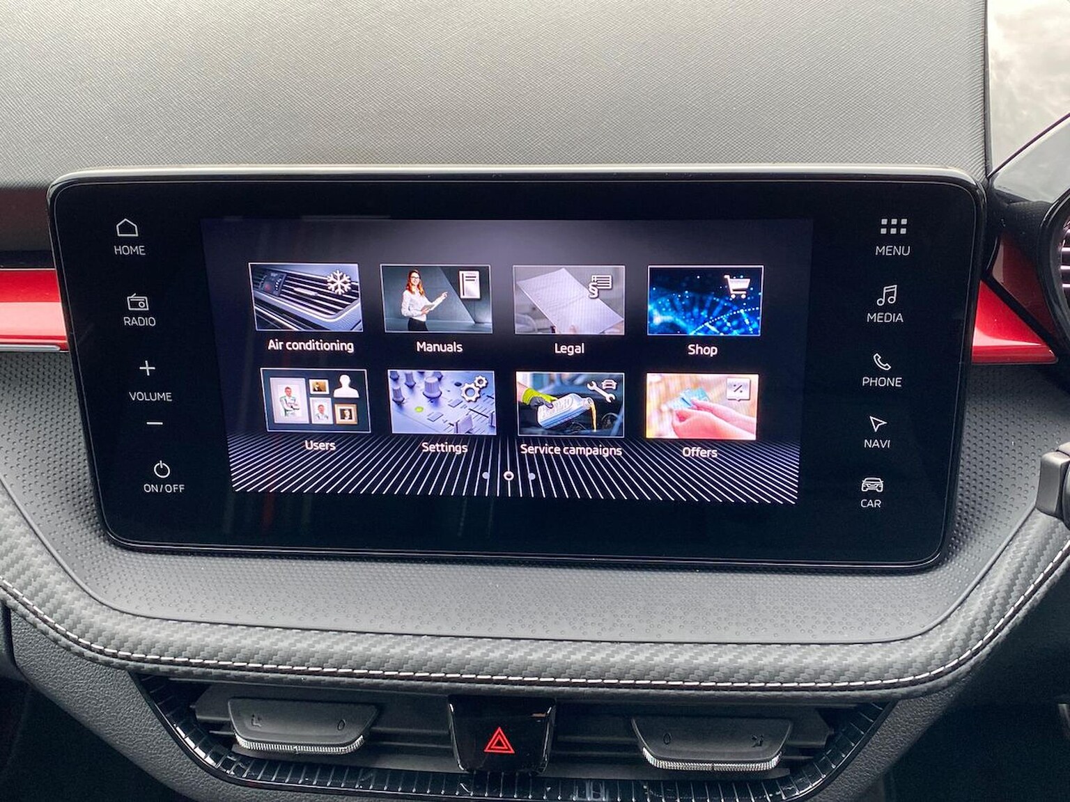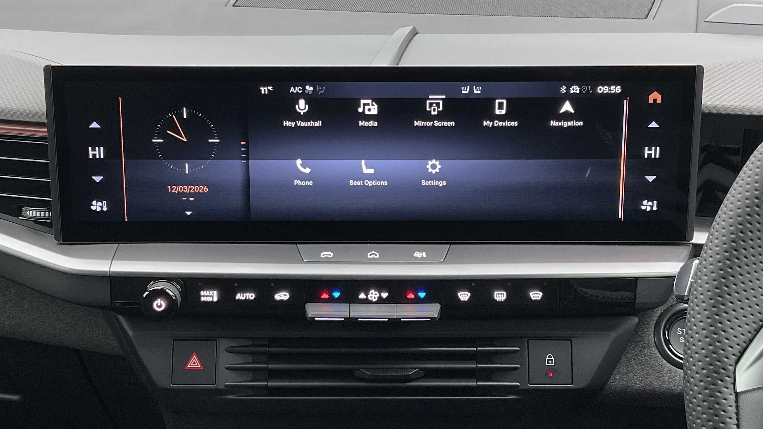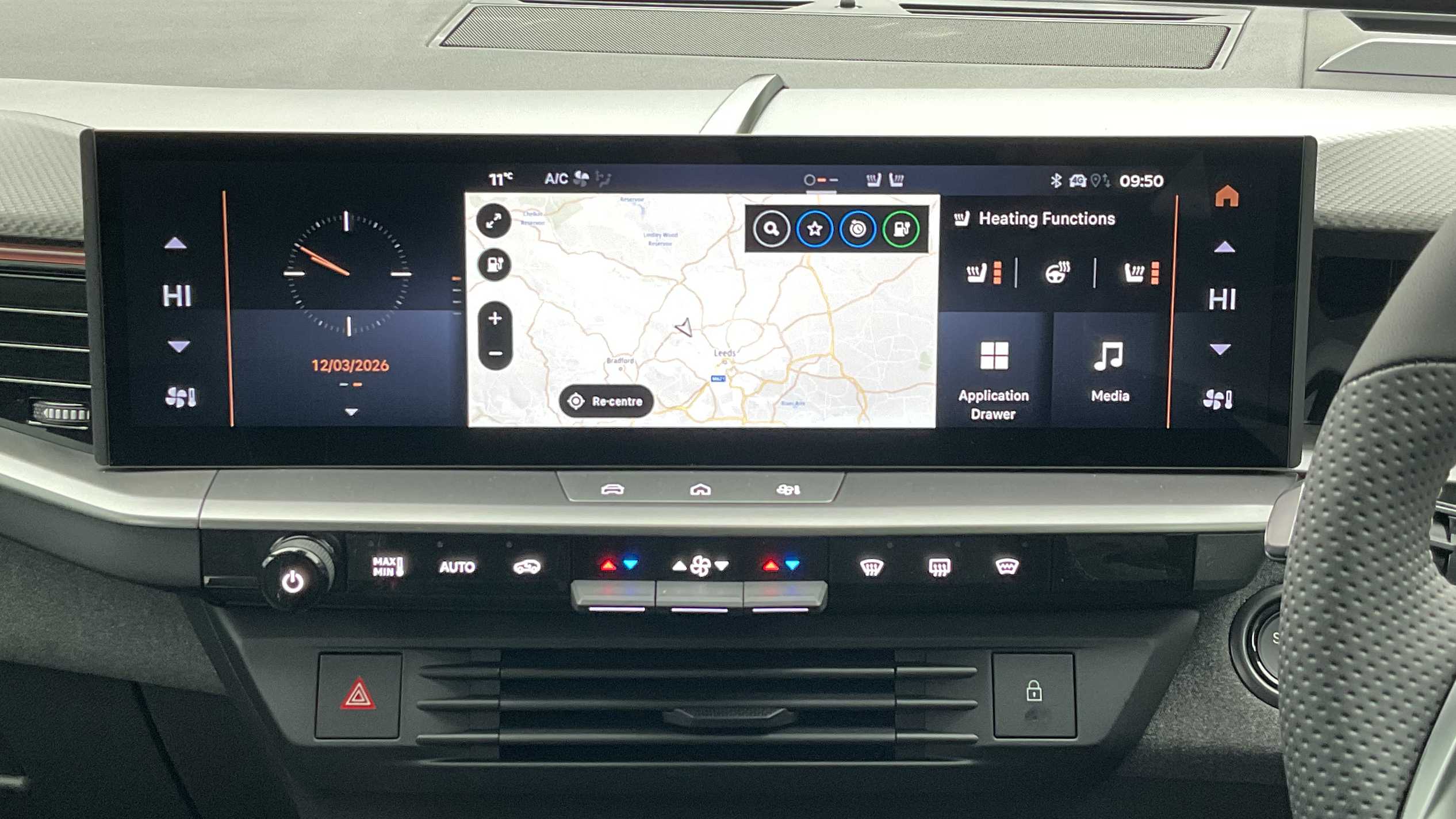 "Centre console with direct touch control includes climate settings, opening and closing charge port doors, battery level indicator, handwriting panel",
