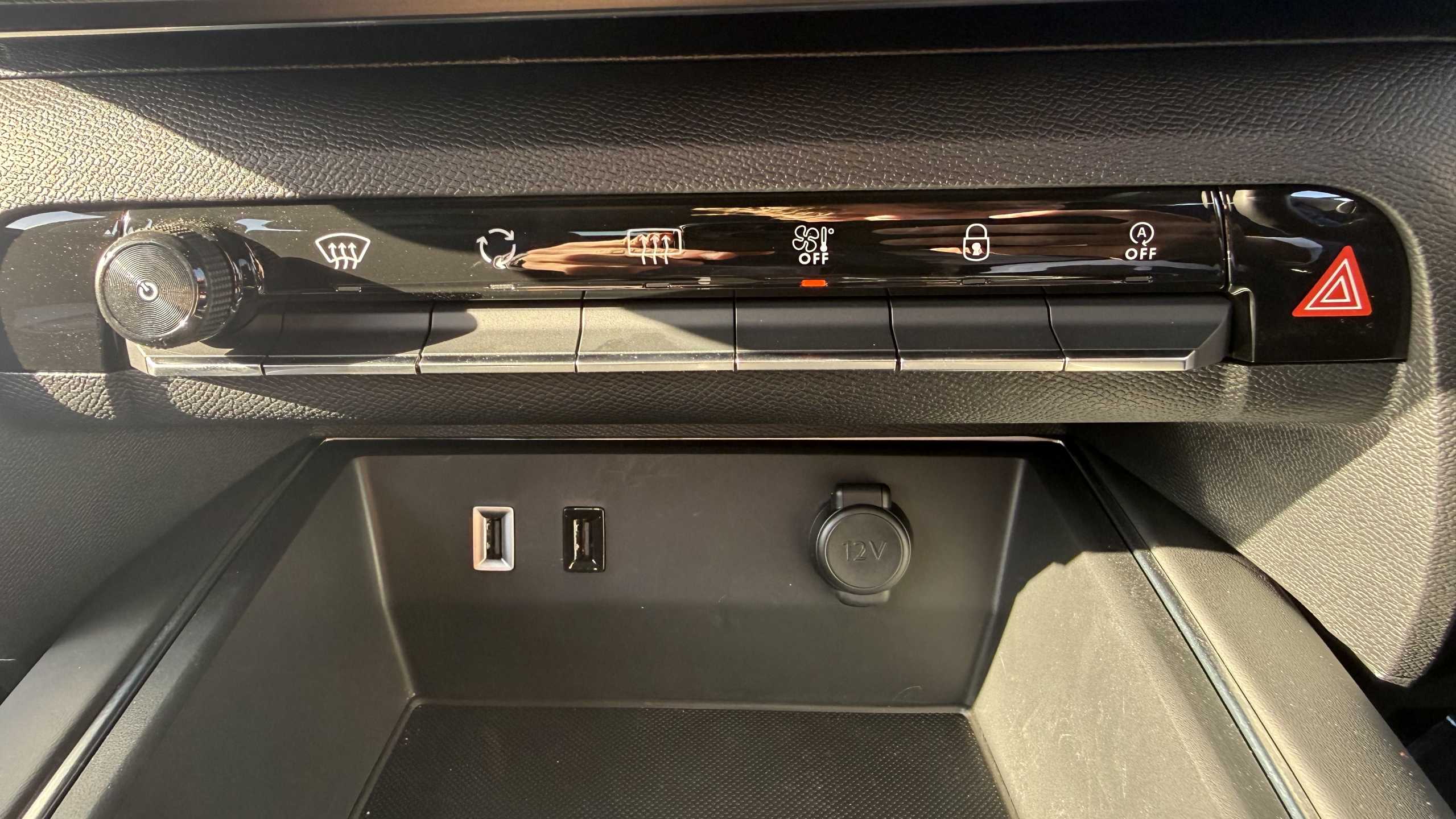 "12V electrical socket in centre console storage compartment",