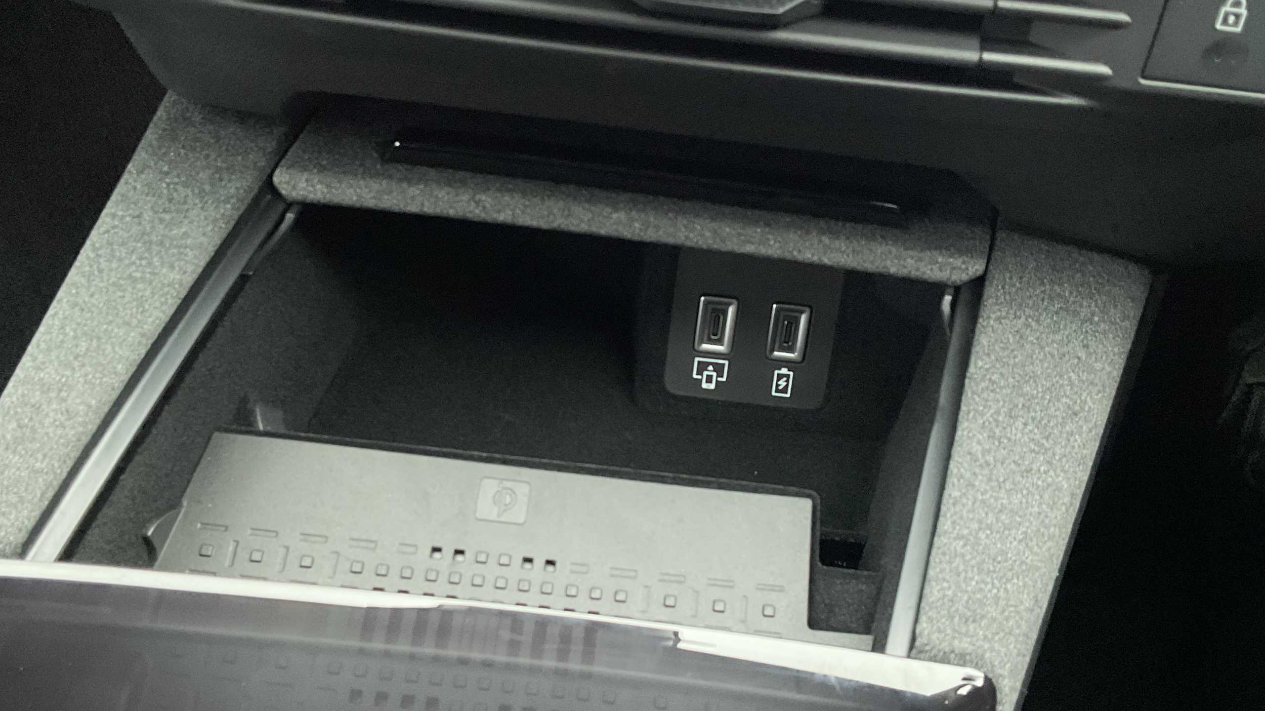 "Wireless phone charging in centre console storage compartment"
