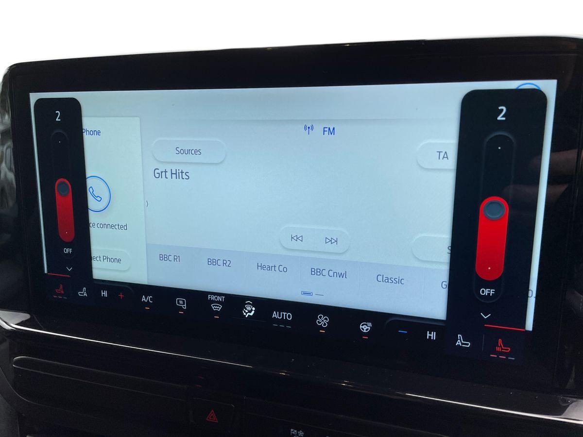"features": "13\" Touchscreen, 5G embedded modem, AECS NO SMS/Roll Detect 2G, Close Assist, PAS, Rear USB charge port, Tyre pressure monitor, Wireless charging, SYNC 4 - Android Auto/Apple Car Play,advance speech recognition,over the air update capability, Aggressive and aerodynamic front bumper with integrated splitter, Automatic headlights, Automatic windscreen wipers, Black door handles, Black door mirrors, Body coloured front bumper, Body coloured rear bumpers, Daytime running lights, Dual heated auto fold power exterior mirror, Electric front windows with one touch facility for driver and front passenger, Front mud flaps, Hood Accent Stripes, LED tail lamps, Low roof line, Lowered sports side skirts, Molded load floor liner, Motorsport inspired rear spoiler, Power cinch latch, Privacy glass, Quickclear front window defroster, Rear cargo hinged door, Sports rear quarter and rear bumper with integrated diffuser with exhaust tip, Trailer sway control, 3 Seat Rear seats with under seat stowage, 4 Load compartment tie down loops, Ambient interior lighting, Carpet floor in first row and second row, Courtesy light, DCiV Moulded polymer bulkhead, Dual zone automatic air conditioning, Heated steering wheel, Interior grab handle with driver's sunglasses holder, Large console, LED lights, Locking glove box lid, Rear reading light, Rubber in cargo area, Sensico gearshift knob, Sportier look bolster and foam seat backs, Sports steering wheel with 12 o clock blue marker and MS-RT inlay, Super bright load compartment lights, USB/Aux power socket, Cab as office pack - Transit custom, Driver assistance pack 2 - Transit custom, Premium non animal eco leather single passenger seat pack - Transit custom MS-RT, Passenger airbag, 2 remote keys, Alcohol Interlock wiring preparation pack, Keyless entry and start, Locking wheel lug nut, Thatcham category 1 alarm, 20L AdBlue tank, ABS, Brake callipers painted in MS-RT Blue, Diesel particulate filter, ESP, Hill launch assist, Traction control, 19\" MS-RT Alloy Wheels, Full wheelcovers, Goodyear vendor - Sport, Temporary spare wheel, ",