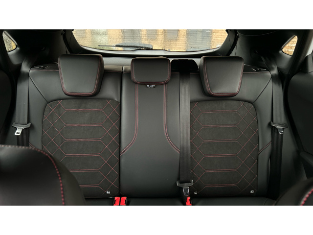 "Leather/faux textile suede upholstery",