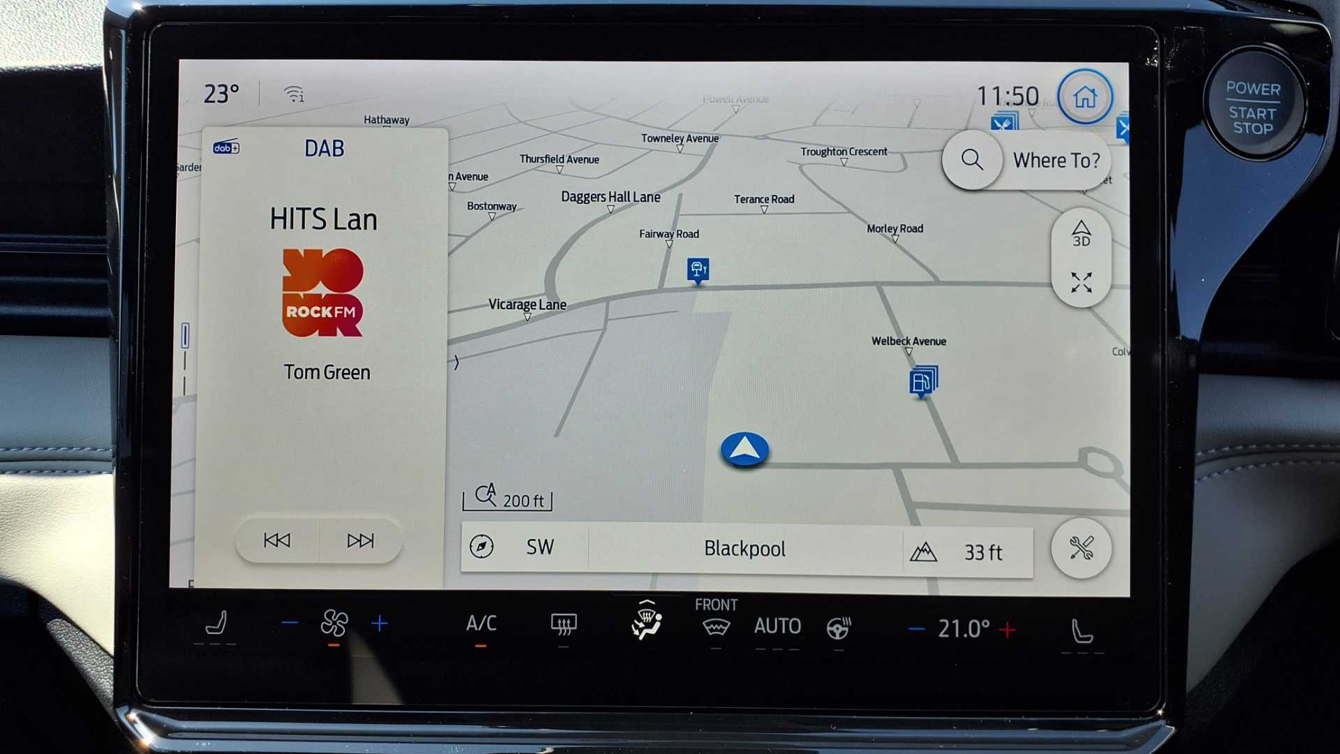 "Keyless start with 'Ford Power' starter button",