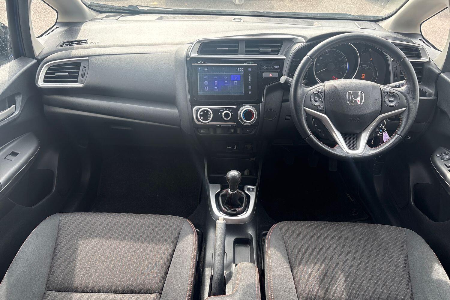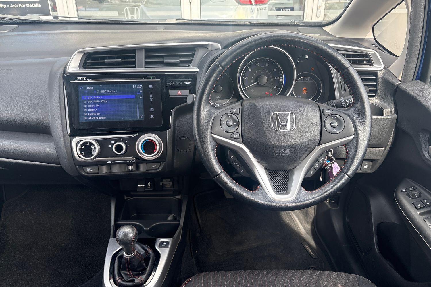 "features": "Bluetooth hands free telephone connection, Connect with 7\" touchscreen, Digital Radio CD/Mp3, Aha app integration, internet browsing, Cruise control, Electric power steering, Emergency stop signalling system, Forward collision warning, Front and rear parking sensors, Idle stop, Intelligent speed assist, Lane departure warning system, Multi-information display, Traffic sign recognition, Vehicle stability assist, 'Shark fin' mobile antenna, 2x USB and HDMI, 6 speakers, Steering wheel mounted audio controls, Automatic coming/leaving home lighting function, Automatic headlights with dusk sensor, Automatic rain sensing wipers, Black door mirrors, Body colour door handles, Body coloured bumpers, Drivers window one touch up/down, Electric front windows, Electric heated + adjustable door mirrors, Electrically retractable door mirrors, Front fog lights, High beam assist, LED daytime running lights, LED Headlights, LED high level brake lights, Rear electric windows, Rear screen wiper - intermittent, Red bumper inserts, Side sills, Tailgate spoiler, Cloth upholstery, Driver's seat height adjustment, Driver/passenger sunvisors and vanity mirrors, Front accessory power socket, Front map lights, Front/rear courtesy lights, Gear shift indicator, Isofix child seat restraint mechanism, Leather gear knob, Leather steering wheel, Luggage area under floor storage box, Magic seat flexibility system, Manual air conditioning, Passenger seat back pocket, Rear parcel shelf, Reclining rear seats, Tilt/telescopic adjustable steering wheel, Trunk light, ABS/EBD, Active city braking, Anti-whiplash front headrests, Brake assist function, Deflation detection system, Dual front SRS airbags, Front and rear curtain airbags, Front safety belt with retractor, Front side airbags, Hill start assist, Passenger airbag cut-off device, Rear safety belt with retractor, Honda super locks, Immobiliser, Remote central locking with 2 remote folding keys, Security alarm, 16\" Berlina black alloy wheels, Tyre repair kit, ",