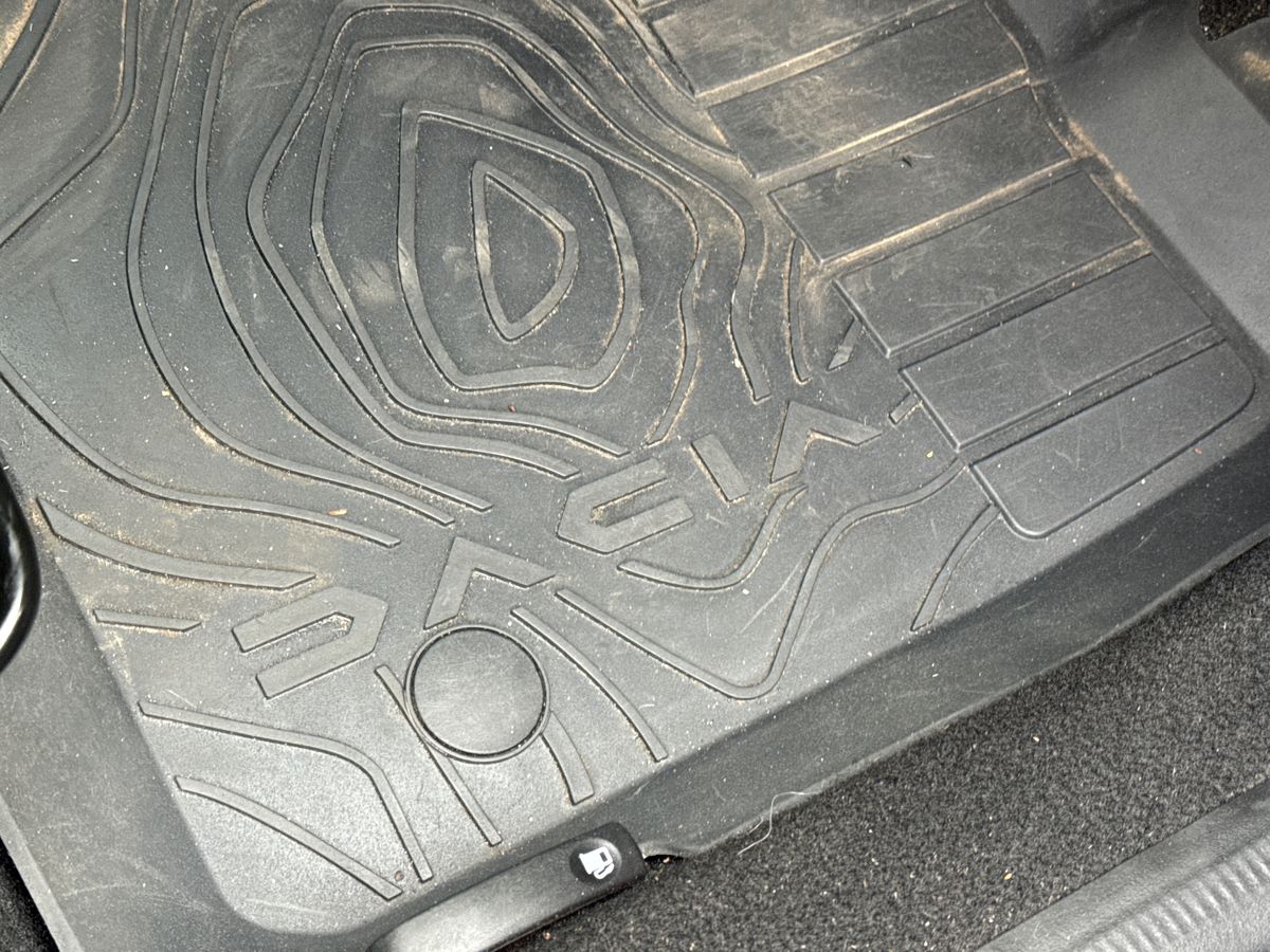 "Front and rear rubber mats with topographic pattern",