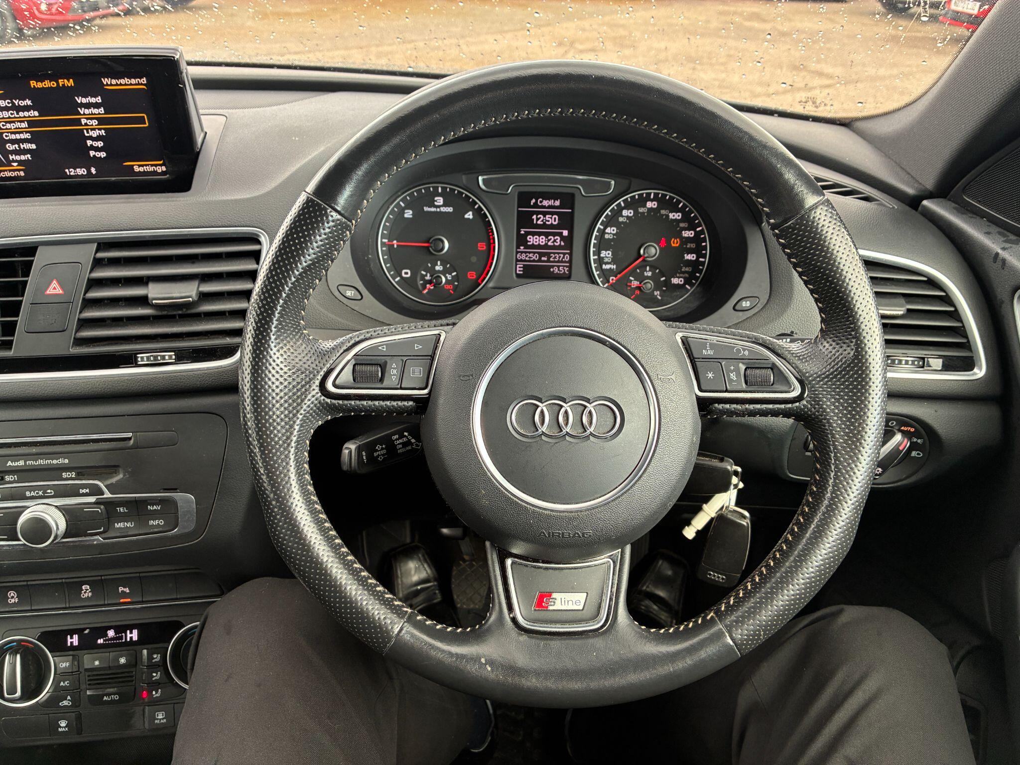 "3 Spoke tailored steering wheel with chrome trim",