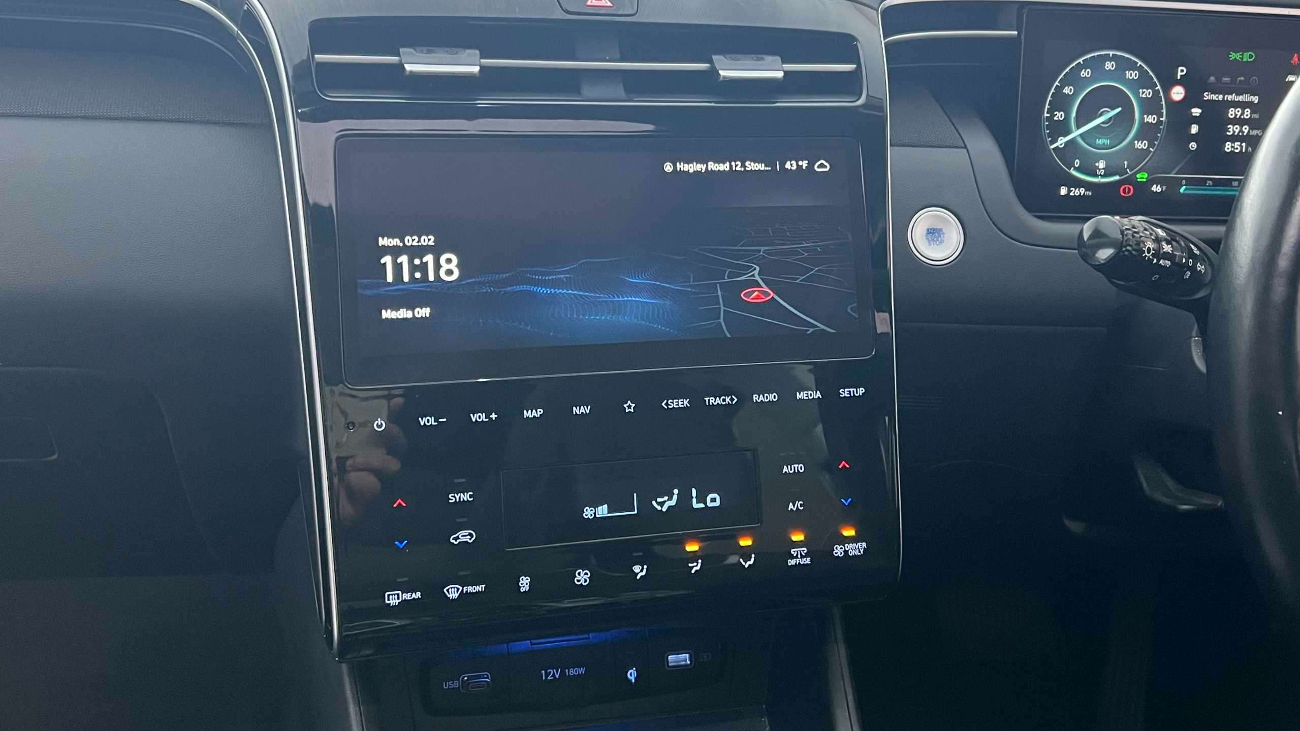 "Front and luggage area 12V power sockets",