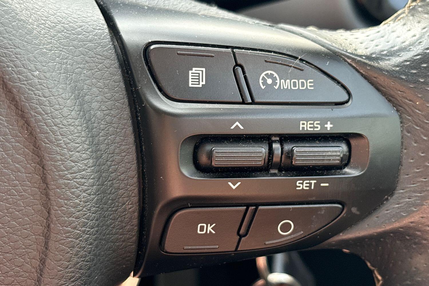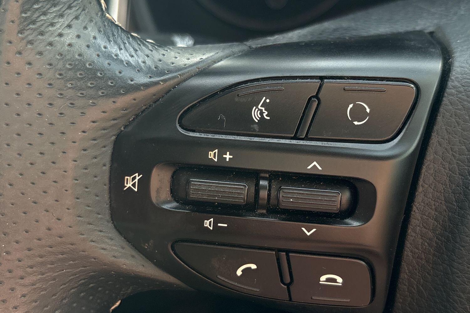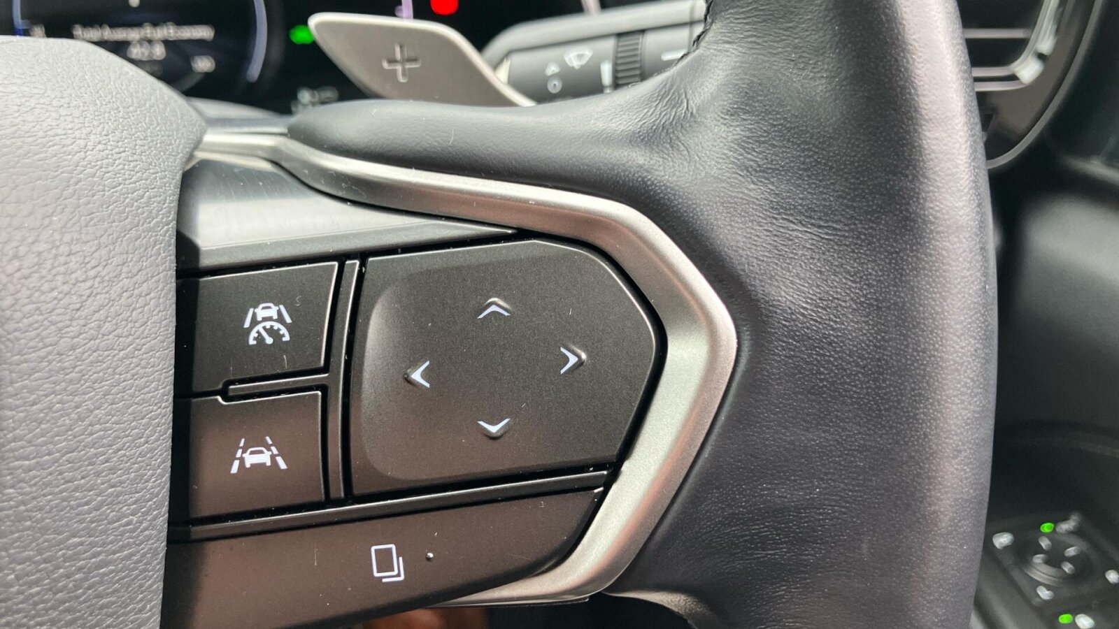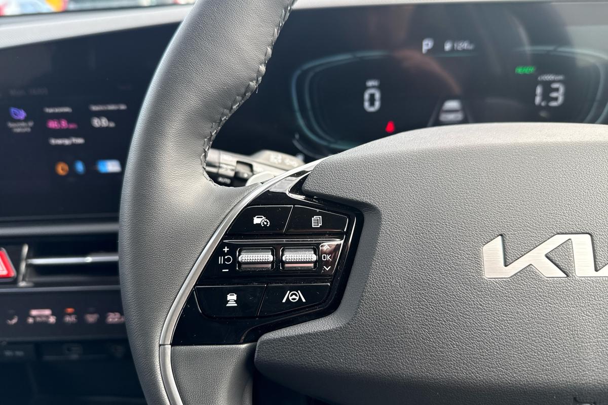 "3-spoke leather heated sports multifunction steering wheel with paddles for recuperation level selection",
