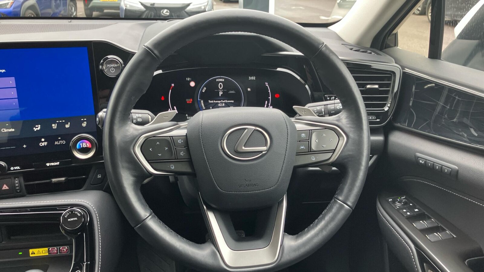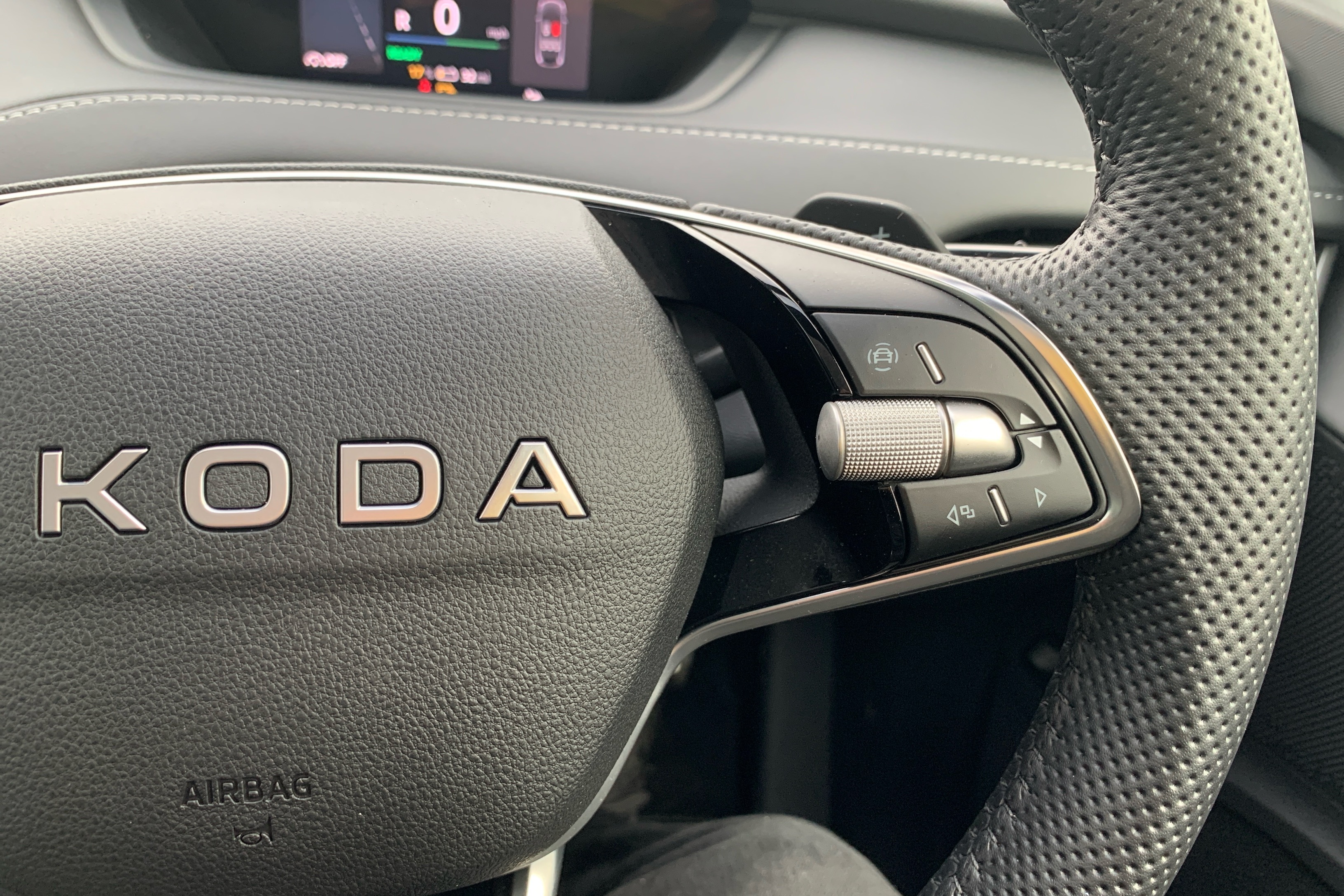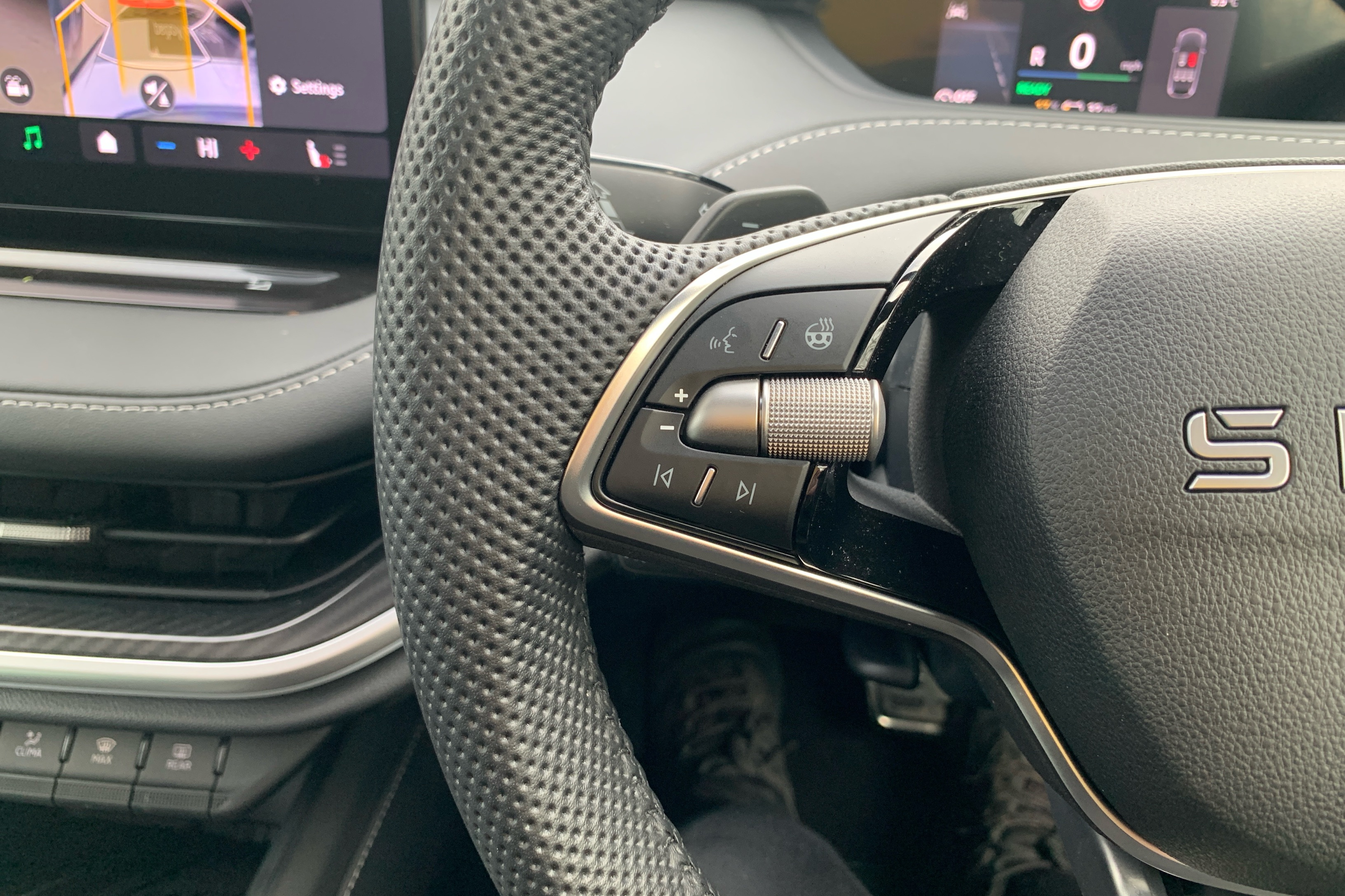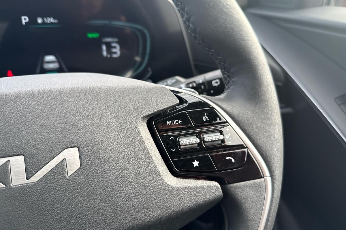 "3-spoke leather heated sports multifunction steering wheel with paddles for recuperation level selection",