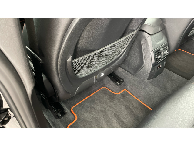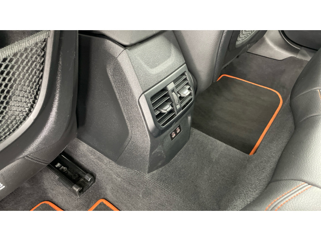 "Floor mats with blue stitching",