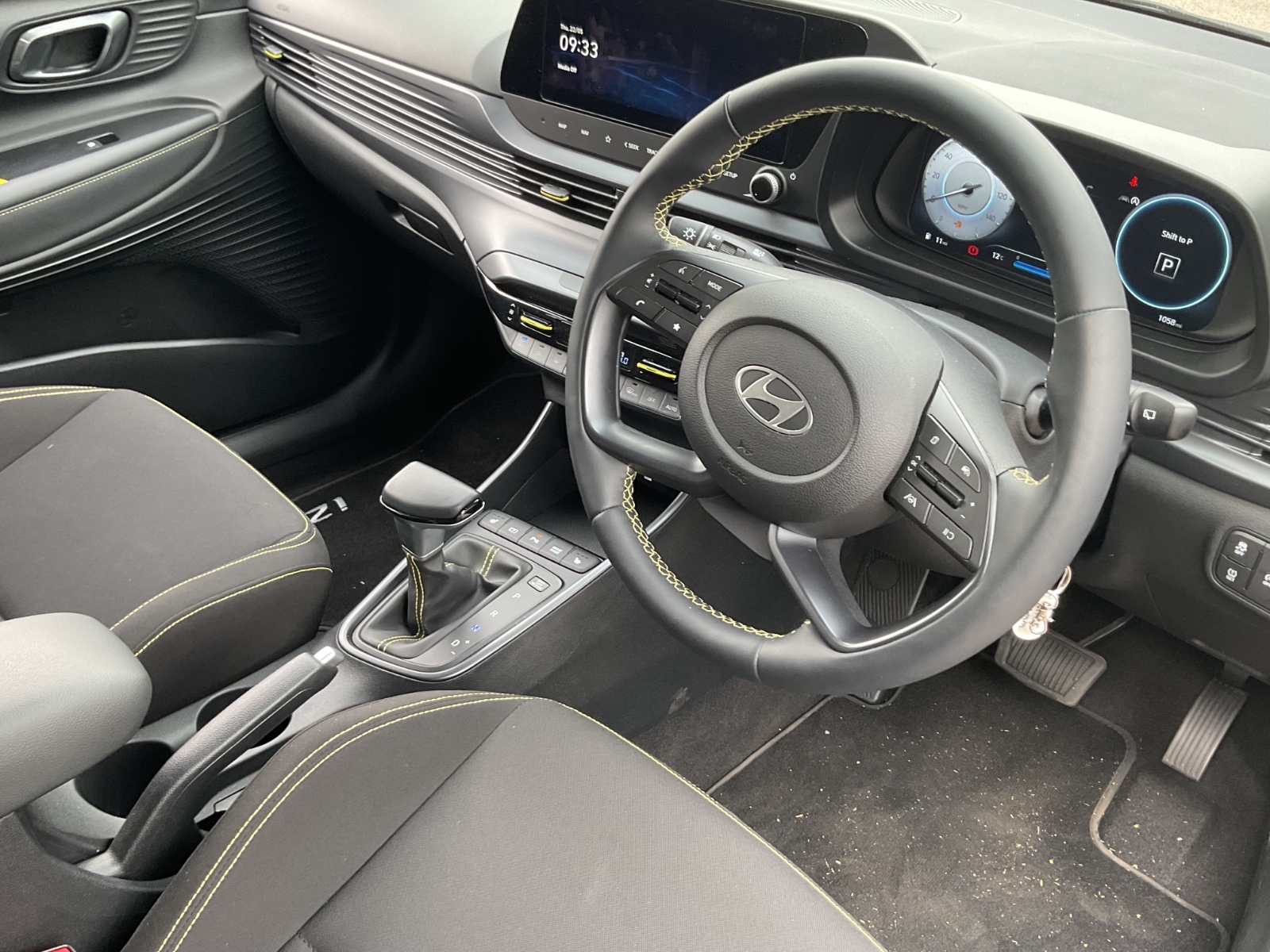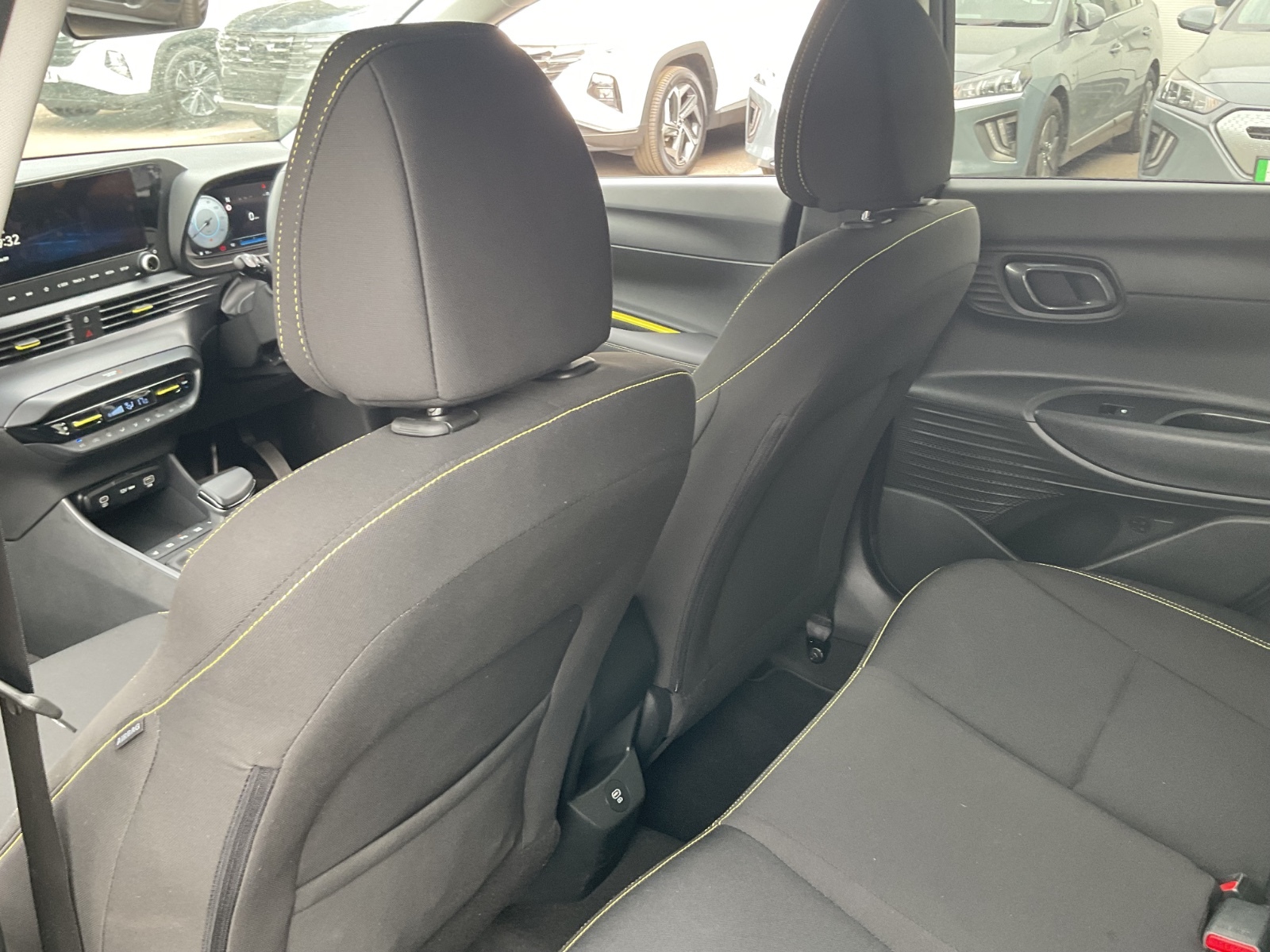 "features": "10.25\" touchscreen + navigation, 2nd Gen eCall, 8\" Touchscreen DAB Radio with android auto and apple carplay, Cruise control + speed limiter, Forward collision assist with car, pedestrian and cycle detection, Intelligent speed assist, Intelligent speed limit warning, Lane follow assist, Lane keep assist, PAS, Rear parking sensor, Rear view camera with dynamic guidelines, USB C port front, Automatic headlights with dusk sensor, Electric adjustable heated door mirrors, Front grille mesh pattern design, High beam assist, LED 3rd brake light, LED daytime running lights, LED Headlights, LED taillights, Rain sensor, Rear side wing doors, Rear wiper, Repositioned flat metal hyundai emblem, Trailer wiring, 3 seat bench in 2nd row, Adjustable head restraints, Air conditioning, Cloth upholstery, Floor mats, Leather steering wheel, Single front passenger seat, 3x3 point rear seatbelts, ABS with front and rear diagonally split, Autonomous emergency braking, Child locks on rear doors, Front ventilated disc brakes, Rear solid disc brakes, Tyre pressure monitoring system, 16\" alloy wheels, Tyre repair kit, ",
