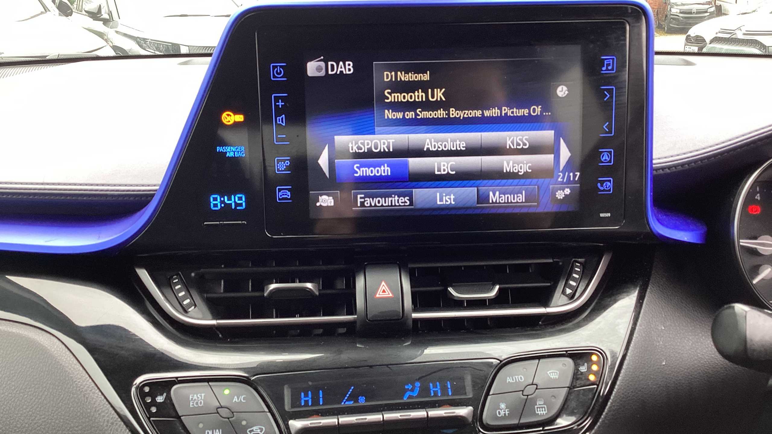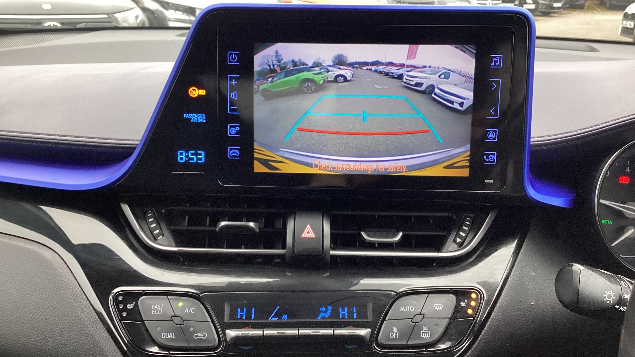 "features": "4.2\" coloured TFT screen for multi-information display, Adaptive cruise control, Bluetooth connectivity, E-call, Electric power steering, Hybrid system indicator, Lane departure alert with steering control, Lane trace assist, Push button start, Push button tailgate release, Remote boot door release in cabin, Remote boot door release in key, Reversing camera, Road sign assist - RSA, Smart voice assist, Trip computer, Voice recognition, Vehicle Stability Control (VSC), 6 speakers, AM/FM radio, DAB Radio (Digital Audio Broadcasting), Toyota touch 2 multimedia system with 8\" display, USB connector, Wi-fi connectivity, Anti-jam protection on power windows, Auto high beam, Auto up and down function on all power windows, Automatic headlights, Automatic headlights cut-off, Black and body coloured rear bumper, Black lower front grille, Black upper front grille, Body colour door handles, Body colour door mirrors, Body colour front spoiler lip, Body coloured front bumper, Boot door release with push button, Electric heated door mirrors, Follow me home headlights, Front and rear power windows, Front fog lights, Hard tonneau cover, Headlight cut off reminder, Honeycomb lower front grille, LED daytime running lights, LED High mounted stop light, LED rear brake lights, LED rear combination lights, Manual headlight levelling, Manually retractable door mirrors, Noise reduction layer on front windows and windscreen, Power adjustable door mirrors, Rear side wing doors, Rear spoiler, Rear tailgate, Rear window defogger, Rear window wiper, Reflective LED headlights, Shark fin antenna, UV-filter on driver and passenger windows, UV-filter on rear windows, 12v power outlet - front, 3 rear headrests, 3 seat bench in 2nd row, 3 spoke leather steering wheel, 60/40 split folding rear seat, Adjustable rear headrests, Adjustable speed limiter switch on steering wheel, Assist grips front and centre pillar, Audio and telephone switches on steering wheel, Black front door assist grips, Boot light, Chrome interior door handles, Cloth upholstery, Driver and front passenger personal light, Driver and front passenger Whiplash Injury Lessening seats, Dual zone automatic air conditioning, Floor mats, Front cupholders, Front head restraints, Front sports seats, Glovebox with internal light, Hooks for luggage holding net, Humidifying Nanoe air purifier, Illuminated entry system, Isofix attachments on rear seats, Leather gearshift, Light on driver sun visor, Light on passenger sun visor, Manual telescopic steering wheel, Manual tilt steering wheel, Manually adjustable lumbar support on driver seat, Manually height adjustable driver seat, Manually height adjustable front passenger seat, Manually reclining driver seat, Manually reclining front passenger seat, Manually sliding driver seat, Manually sliding front passenger seat, Microphone on front personal light, Mirror on driver sun visor, Mirror on passenger sun visor, Multimedia switches on steering wheel, Pollen filter, Shopping bag hooks, Single front passenger seat, Slow opening on lower glovebox, Voice recognition switch on steering wheel, 16 Disk front wheel brake, 3x3 point rear seatbelts, ABS+EBD+Brake assist, Electronic parking brake, Front and rear seatbelt reminder, Front passenger airbag on/off switch, Hill start assist control (HAC), Pre collision system with pedestrian detection, Pre-tensioners and force limiters, Rear door child safety locks, SRS Airbags - Driver + Front passenger, front side, front and rear curtain and driver's knee airbags, Toyota safety sense, Tyre pressure monitoring system, Tyre pressure warning system, Acoustic vehicle alert system (AVAS), Glass-breaking alarm sensors, Immobiliser, Intrusion alarm, Intrusion sensor, Motion sensor alarm, Power door locks, Power passenger window lock, Remote central locking, Black lower dashboard, Black upper dashboard, Grey deco line on upper dashboard, Matte black centre console, Tyre repair kit, ",