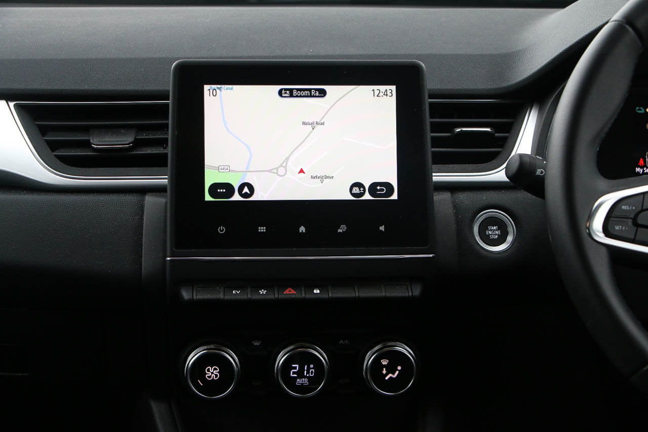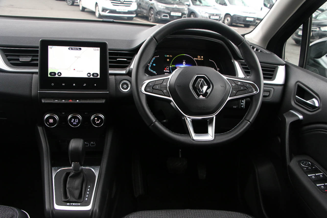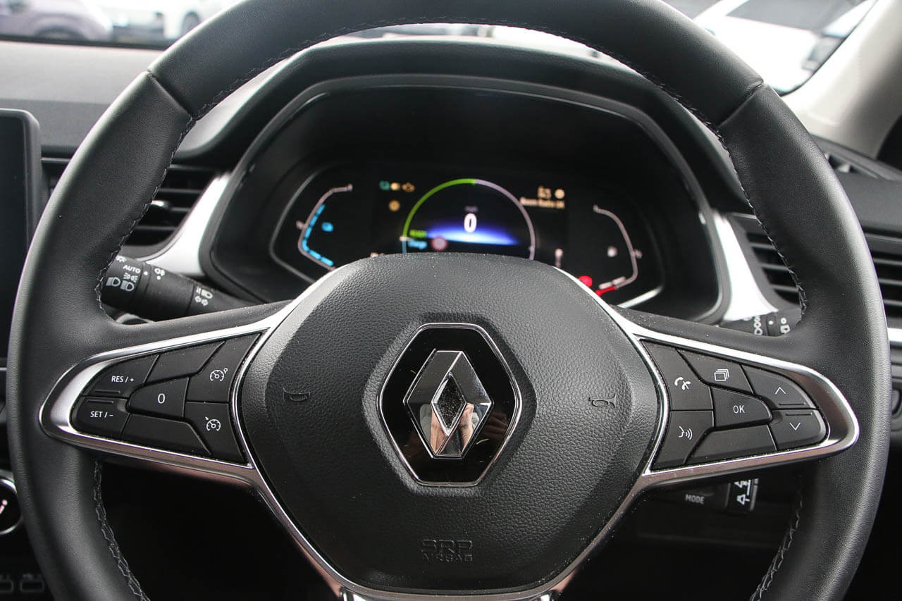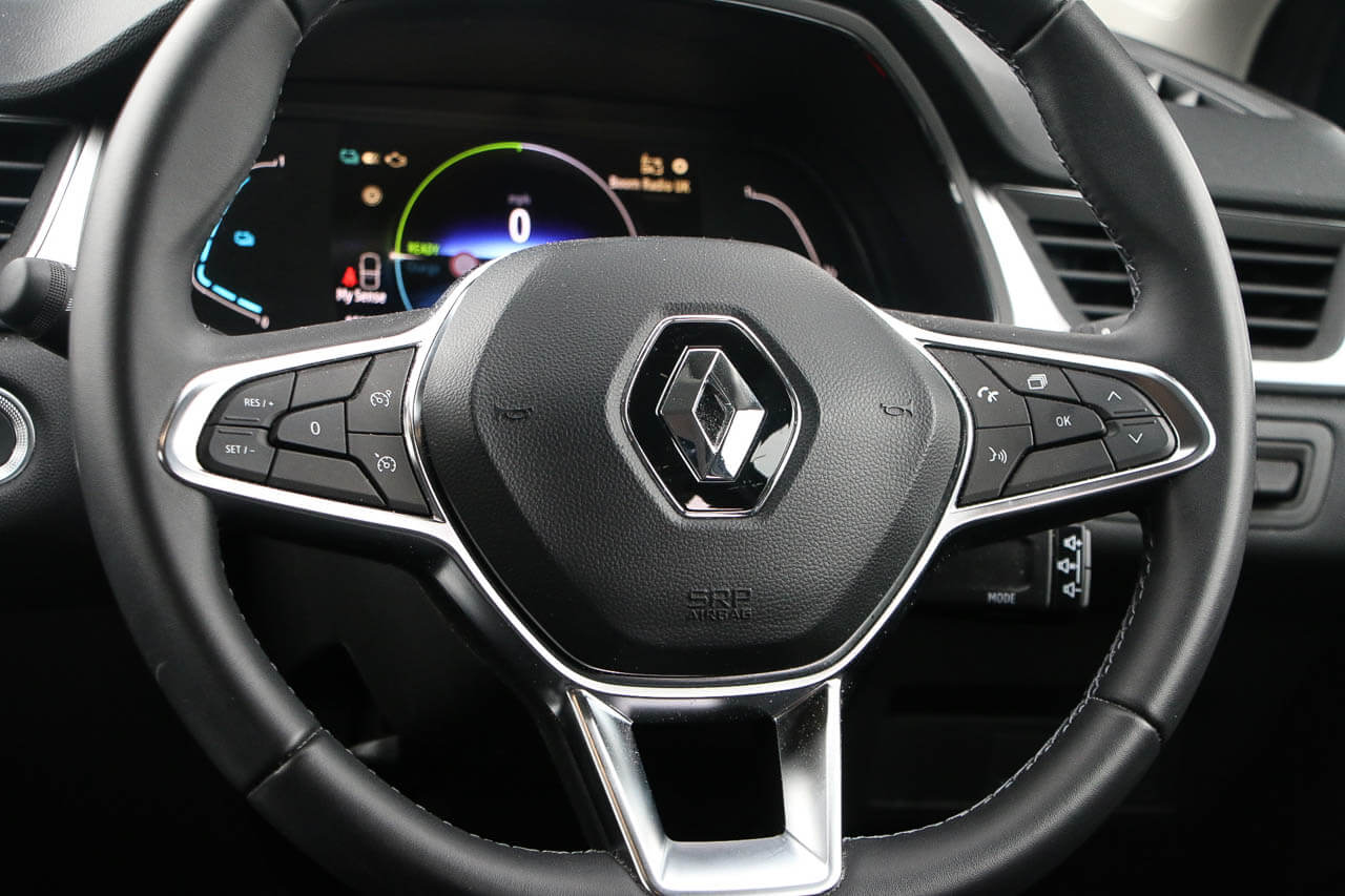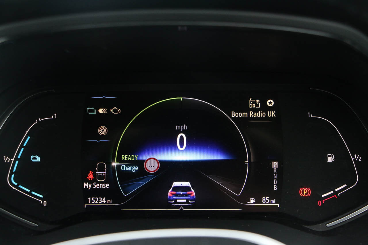 "features": "10\" TFT Driver information display, Blind spot warning, Bluetooth system, Cruise control with speed limiter, EASY LINK 9.3\" portrait touchscreen with 3D navigation, hybrid voice recoginition and applications store, Eco mode, EV button to activate pure mode, Front and rear parking sensors, Gear change indicator, Lane departure warning, Lane keep assist, Multi-sense - 3 driving modes and 8 ambient lighting, Rear cross traffic alert, Rear view camera, Renault automatic emergency assist, Traffic sign recognition with over speed prevention, Trip computer, Variable assistance electric power steering, Wireless phone charger, Wireless Smartphone Integration includes Apple CarPlay and Android auto, Arkamys classic sound system with 6 speakers, DAB radio, USB port, 3rd brake light, Auto dimming rear view mirror, Automatic full LED headlights, Automatic headlights, Automatic high / low beam, Automatic windscreen wipers with rain sensor, Black side door protection with chrome insert, Body colour door mirrors, Body colour rear boot spoiler, C-shaped LED front signature lighting (333 high), Chrome decopart on wing (fender molding), Chrome window lower lining, Electrically adjustable and foldable door mirrors with defrosting,temperature sensor and automatically fold when vehicle closure, Exterior chrome enhancement, Extra tinted rear windows and tailgate, F1 blade style body coloured bumper, Front and rear electric windows, Front driver window with one touch facility and anti-pinch function, Front grille with chrome on upper part, Grey front and rear skid plates, Heated rear window, Rear windscreen wiper, Shiny black shark fin antenna, Variable front intermittent wipers, 1/3-2/3 foldable fixed bench, 3 seat bench in 2nd row, Automatic climate control with combined filter, humidity sensor and AQS, Black interior roof lining, Central console with storage, Cloth/TEP artificial leather upholstery, Driver and front passenger seat height adjustment, Foldable armrest with 2 cup holder in rear passenger seats, Front and rear head restraints, Height and reach adjustable steering wheel, ISOFIX child seat fixing points on rear outermost seats, LED front and rear roof lights, Rear air vents, Single front passenger seat, Sun visor with enlighted vanity mirror, Synthetic leather steering wheel, Variable boot floor, 3x3 point rear seat belts, Active emergency braking system, Anti-lock braking system (ABS), B Brake Mode - One pedal driving with increased regenerative braking, Distance warning alert, Driver airbag, Driver and passenger front and side airbag deactivation, Driver and passenger side airbags, Driver height adjustable seat belt, Electronic parking brake with auto hold, ESC (Electronic Stability Control), Front and rear no seatbelt warning sound, Front curtain airbags, Front head airbags, Front seatbelt pretensioner, Hill start assist, Passenger airbag, Sound for pedestrian (1 to 30 kph), Tyre pressure warning light, Anti drill door locks and locking fuel cap, Central door locking, Deadlocking system, Hands free keycard with Keyless access and start, RAID (Renault Anti-Intruder Device) automatic door locking, Rear side wing door and window child locking function (front driver door control panel), Thatcham alarm, 18\" R.S design alloy wheels, ",