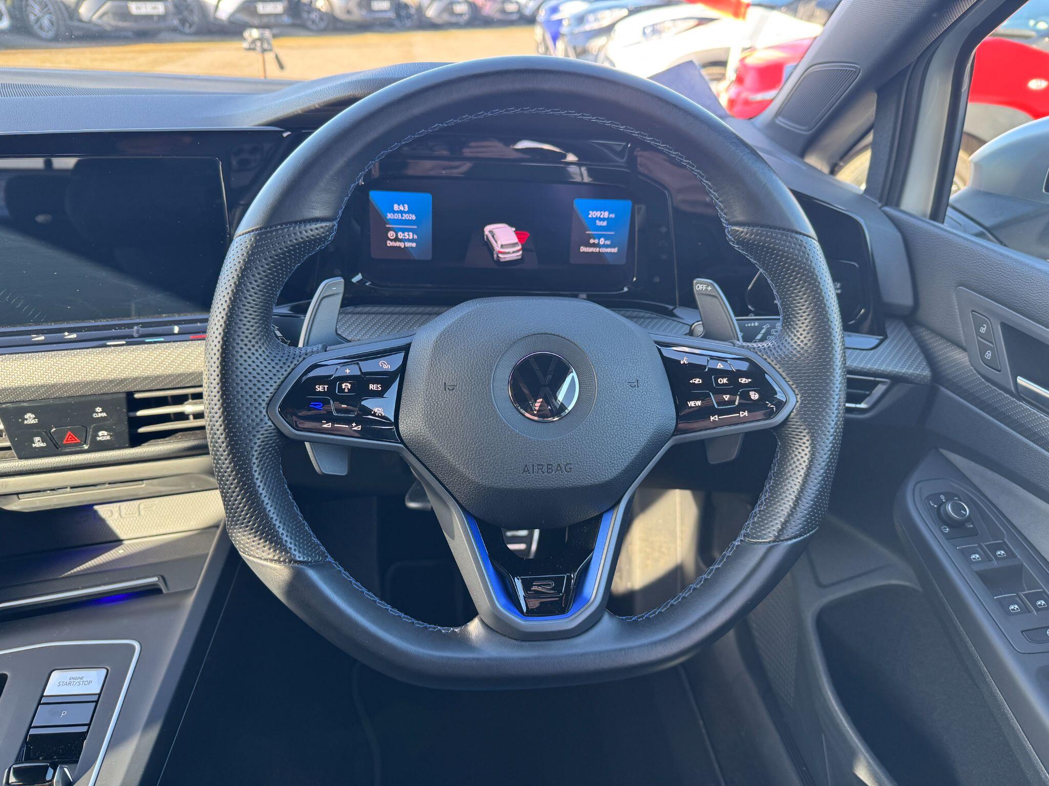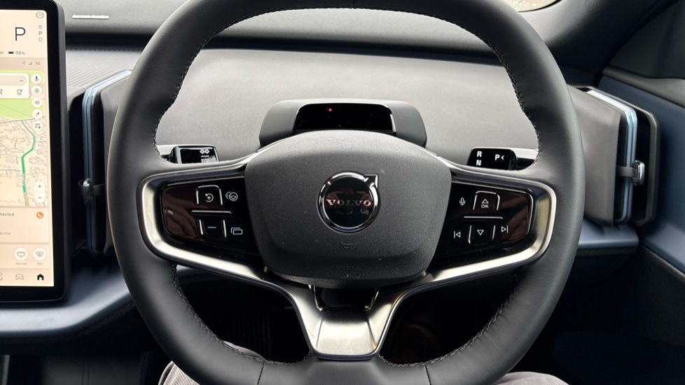 "R leather wrapped multi function sports heated steering wheel with extended paddle shift",