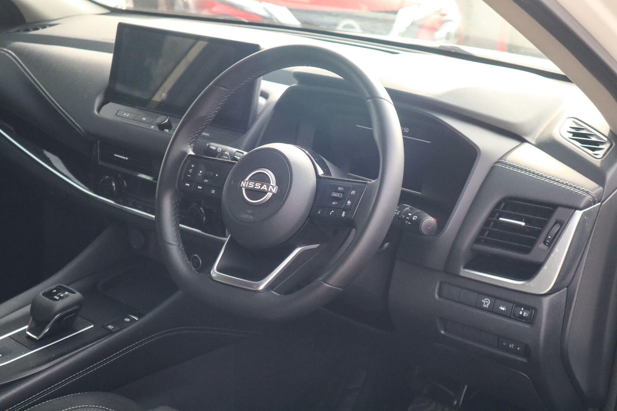 "features": "360 degree Intelligent around view monitor with moving object detection, Advanced windscreen head up display, Blind spot warning, Drive assist custom mode, Drive modes (sport, normal, eco), Driver drowsiness and attention warning, Electric speed sensitive power steering, Emergency and breakdown call, Emergency lane keep assist, Emergency Stop Signal (ESS), Engine start/stop button, Event data recorder, Front and rear parking sensors, Full Digital 12.3\" TFT Digital Combimeter, Google virtual personal assistance, Hands free power tailgate, Idle stop/start system, In-car WIFI hotspot, Intelligent Cruise control (ICC), Intelligent driver alert system, Intelligent forward collision warning, Intelligent lane intervention, Intelligent speed assist, Lane departure warning system, Nissan connect 12.3 inch touchscreen infotainment system, Nissan connect navigation with google maps, Nissan connect services 2.0 (Google Automotive System), Outside temperature sensor, Rear cross traffic alert, Remote control services - door locks, lights, horn and car locator, Reversing detection, Traffic jam pilot, Traffic sign recognition with legal speed adjustment, Trip computer, Wireless Apple CarPlay/Android Auto, Wireless charging pad, Limited slip differential, 2 front USB-C ports, 2 rear USB-C ports, 6 speakers, AM/FM audio system with DAB, Bluetooth audio streaming, Auto dimming frameless rear view mirror, Auto rear wiper when reversing, Body coloured door handles, Bodyside mouldings, Chrome side window finisher, Electric auto folding door mirrors, Electrically adjustable and heated door mirrors with LED turn indicator, Follow me home headlights, Gloss black mirror caps, High beam assist, Intelligent auto headlights, LED 3rd brake light, LED daytime running lights, LED headlights with adaptive driving beam, LED rear lights, LED sequential turn lights, One touch front and rear electric windows with remote opening and closing, One touch passenger window, Partially body coloured bumpers, Rain sensing wipers, Rear privacy glass, Rear roof spoiler, Rear side wing doors, Rear styling plate, Reverse tilting door mirrors, Shark fin antenna, Silver roof rails, Splash free rain sensing wipers, Super RED rear LED lights, Super UV and infrared cut glass, Thermaclear heated windscreen, 12v power socket in dashboard and luggage, 3 bench rear seats in 2nd row, 3 rear headrests, 60/40 split folding rear seat bench, Chrome interior door handles, Dark headlining, Driver and passenger sunvisors with illuminated vanity mirrors, Driver seat back pocket, Dual zone automatic climate control with pollen filter, Electrically adjustable driver seat, Electrically adjustable lumbar support for driver, Fixed Glass roof with electric sunshade, Front centre console and armrest, Front cupholders, Front door with bottle holders, Heated front seats, Heated steering wheel, Height adjustable front headrests, Height adjustable passenger seat, Leather shift knob, Luggage board system, Luggage space lighting, Manual adjustable lumbar support for passenger, Multifunction steering wheel, Passenger seat back pocket, Quilted/PVC upholstery, Rear door bottle holders, Rear seat armrest with 2 cupholders, RGB ambient light (Extended area coverage), Single front passenger seat, Smooth leather steering wheel, Tilt/telescopic adjustable steering wheel, Two rear isofix child seat anchorage points with top tether, 3x3 point rear seatbelt pretensioners + load limiters, ABS with EBD and brake assist, Autonomous emergency braking, Child locks on rear doors, Curtain and front side, far side airbags, Driver and passenger airbags, Driver, passenger and 2nd row rear seat belt reminder, Electric handbrake with auto hold function, Front seatbelt pretensioners + load limiters, Height adjustable front seatbelts, Hill start assist, Intelligent blind spot intervention, intelligent front emergency braking, Intelligent rear automatic braking, Tyre pressure monitoring system, Vehicle dynamic control, Engine immobiliser, Intelligent key with walk away lock and approach unlock functions, Remote central door locking with deadlocking, Thatcham alarm, 19\" Diamond cut alloy wheels, Tyre puncture repair kit, ",