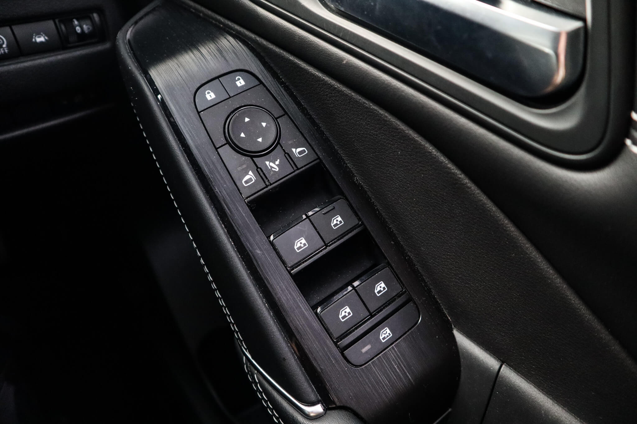 "Chrome plated surround to electric mirror button, window switch and air vent surrounds",