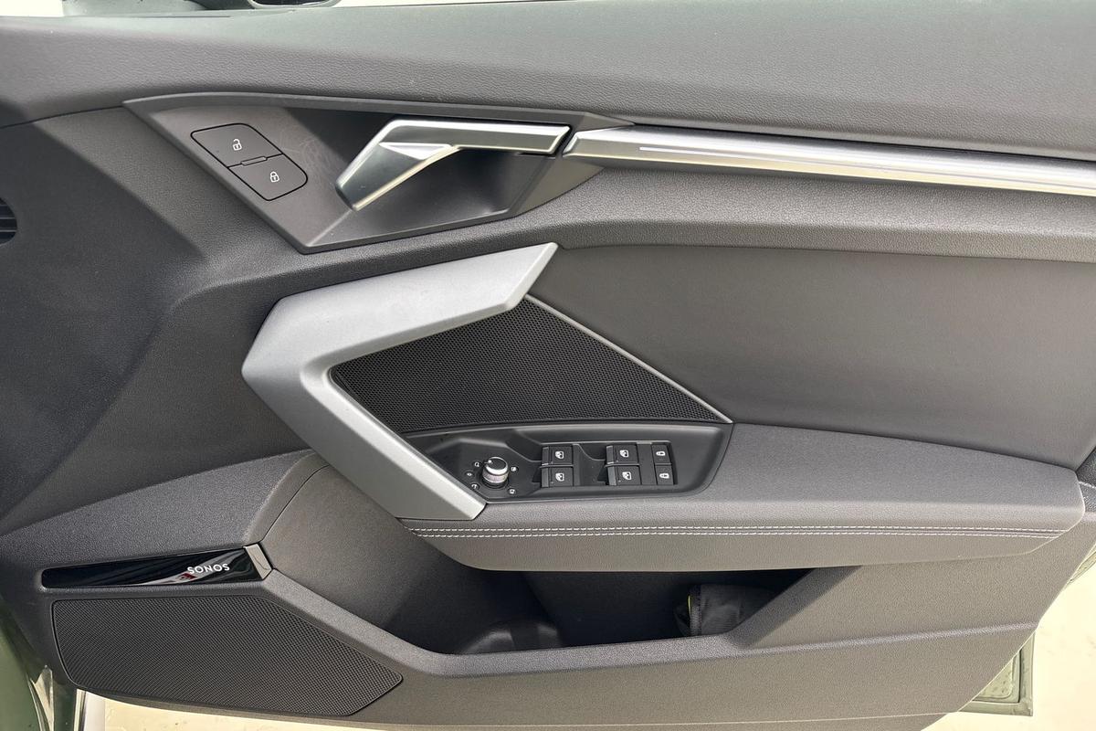 "features": "Adaptive cruise control (ACC), Adjustable speed limiter, Audi drive select (Auto, Comfort, Dynamic, Efficiency and Individual), Audi virtual cockpit plus - 12.3\" full HD resolution dynamic digital instrument cluster, Automatic start/stop system with recuperation, Bluetooth interface, Camera based traffic sign recognition, Collision avoidance assistant, Driver attention and fatigue detection, e-Call (emergency call), Electromechanical power speed sensitive steering, Emergency assist, Intersection assist, Lane departure warning system, MMI Navigation Plus with high resolution 10.1\" colour touch screen display, Park Assist with parking system Plus, Reversing camera, Service indicator, Smartphone interface with app store includes wireless Apple carplay, Android auto and Amazon alexa integration, Trip computer, Voice control system with natural language interaction, Sports suspension, Audi Phonebox light with wireless charging, Audi sound system - 10 loudspeakers including centre loudspeaker and subwoofer, DAB Digital radio, USB ports with charging function in the rear, Acoustic glass windscreen, All weather light, Aluminium window trim, Auto dimming frameless rear view mirror, Automatic dynamic range control, Body colour exterior mirrors, Dipped beam, main beam, position light and turning light, Electrically adjustable/heated/folding/auto dimming door mirrors with integrated LED indications + kerb view function for passenger side, Exterior model badging, Front and rear side air inlets in grained matt black with dark liquid chrome frame, Front electric windows, Front radiator grill in high gloss dark chrome, Heat insulating glass windscreen, Illuminated door sills with aluminium inserts at the front with S logo, Intersection light, Invisible tailpipe, LED 3rd brake light, LED brake lights, LED daytime running x3, LED headlights with LED rear lights and dynamic rear indicators, LED rear number plate lights, LED reverse light, LED tail lights, Light and rain sensors, Manoeuvring light, Motorway light, Privacy glass - dark tinted rear window, rear door and side windows, Rear diffuser and grill in grained matt black with inlay in dark liquid chrome, Rear electric windows, Rear side wing doors, Rear wiper, S line bumpers, S roof spoiler, Side S line emblems on front wings, Side sill trim in dark liquid chrome, Static cornering light, 12V socket and storage compartment in front centre console, 3 seat bench in 2nd row, 3 spoke flat bottomed leather multifunction sport steering wheel with gear shift paddles, 3-zone deluxe automatic air conditioning, 4 way electrically adjustable lumbar support for driver and front passenger, 40/20/40 split folding rear seat bench, Black cloth headlining, Black front and rear floor mats, Front and rear centre armrest in artificial leather with contrasting stitching on armrests and instrument panel, Front and rear headrests, Heated front seats, Height and reach adjustable steering wheel, i-Size child seat mounting on the front passenger side and outer rear seats, i-Size and top tether on the outer rear seats, Manual boot compartment lid, Manually adjustable front seats, Rear centre armrest with cupholder, S badging on the steering wheel, Seat side bolsters, Single front passenger seat, Stainless steel pedals and front footrest in black, Twin leather upholstery with front sports seats S embossed logo, Aluminium interior elements pack - A3, Multi-coloured LED interior lighting package with Multi-coloured contour lighting of instrument panel - A3, 3x3 point rear seat belts, Driver and front passenger airbag with passenger airbag deactivation, Electronic Stabilisation Control (ESC) including ABS, ASR and EDL, First aid kit with warning triangle and 2 safety vests, Front side airbags with head airbags and interaction airbag, Hill hold assist, Pre-sense front with pedestrian and cyclist detection, Seatbelt monitoring, Tyre pressure loss indicator, Anti theft alarm, Anti-theft wheel bolts, Electronically operated child locks, Immobiliser, Black dashboard, Inlay in dark aluminium spectrum, ",