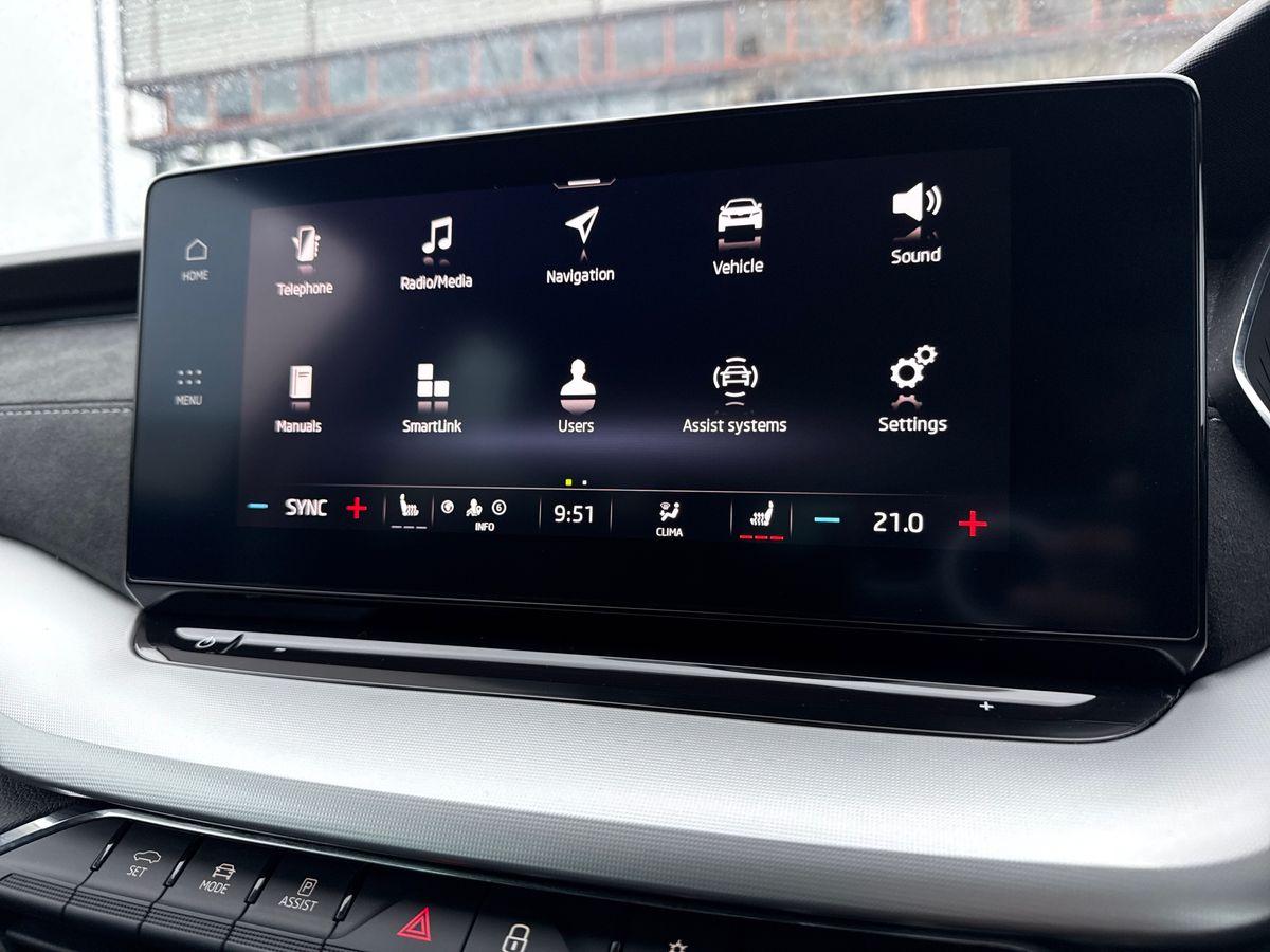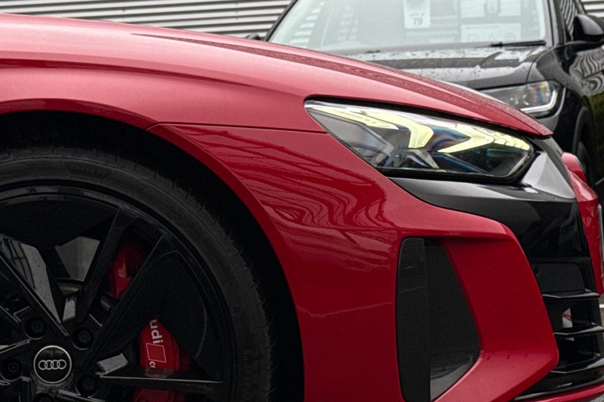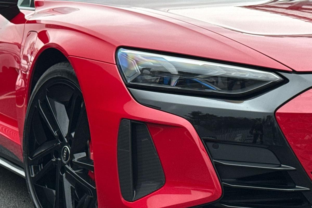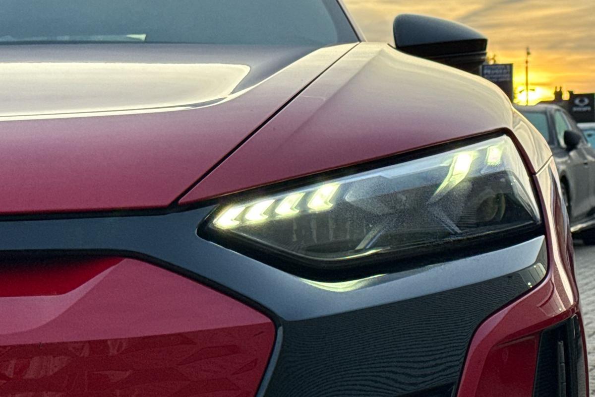 "Dark tinted Matrix LED headlights with dynamic front and rear indicators",