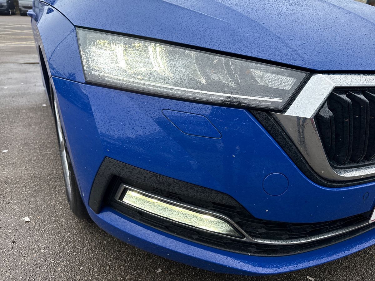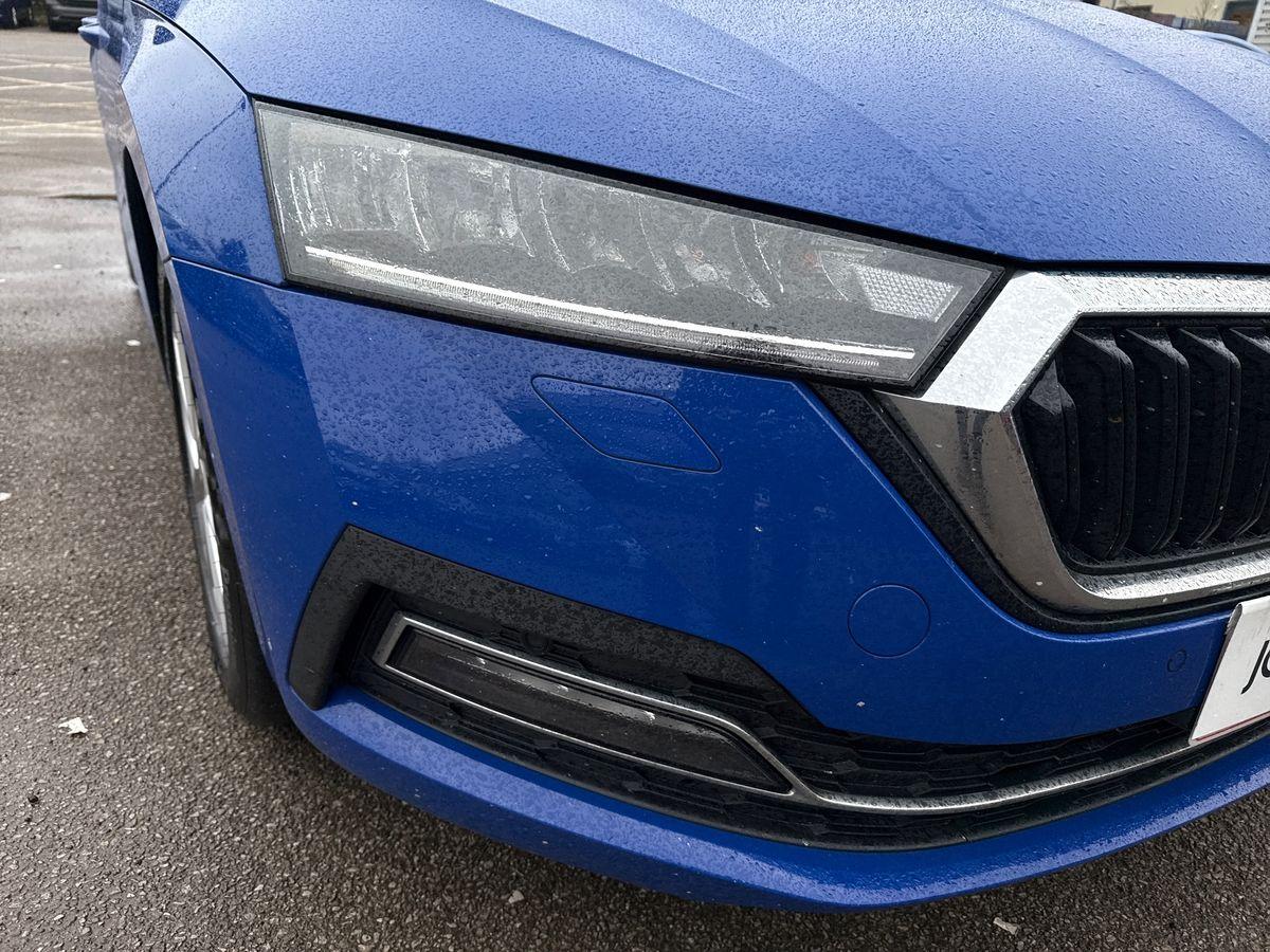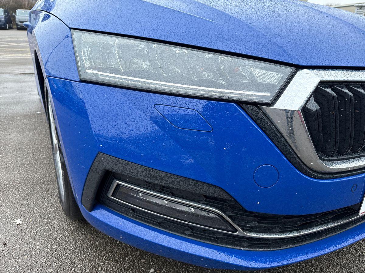 "Dark tinted Matrix LED headlights with dynamic front and rear indicators",