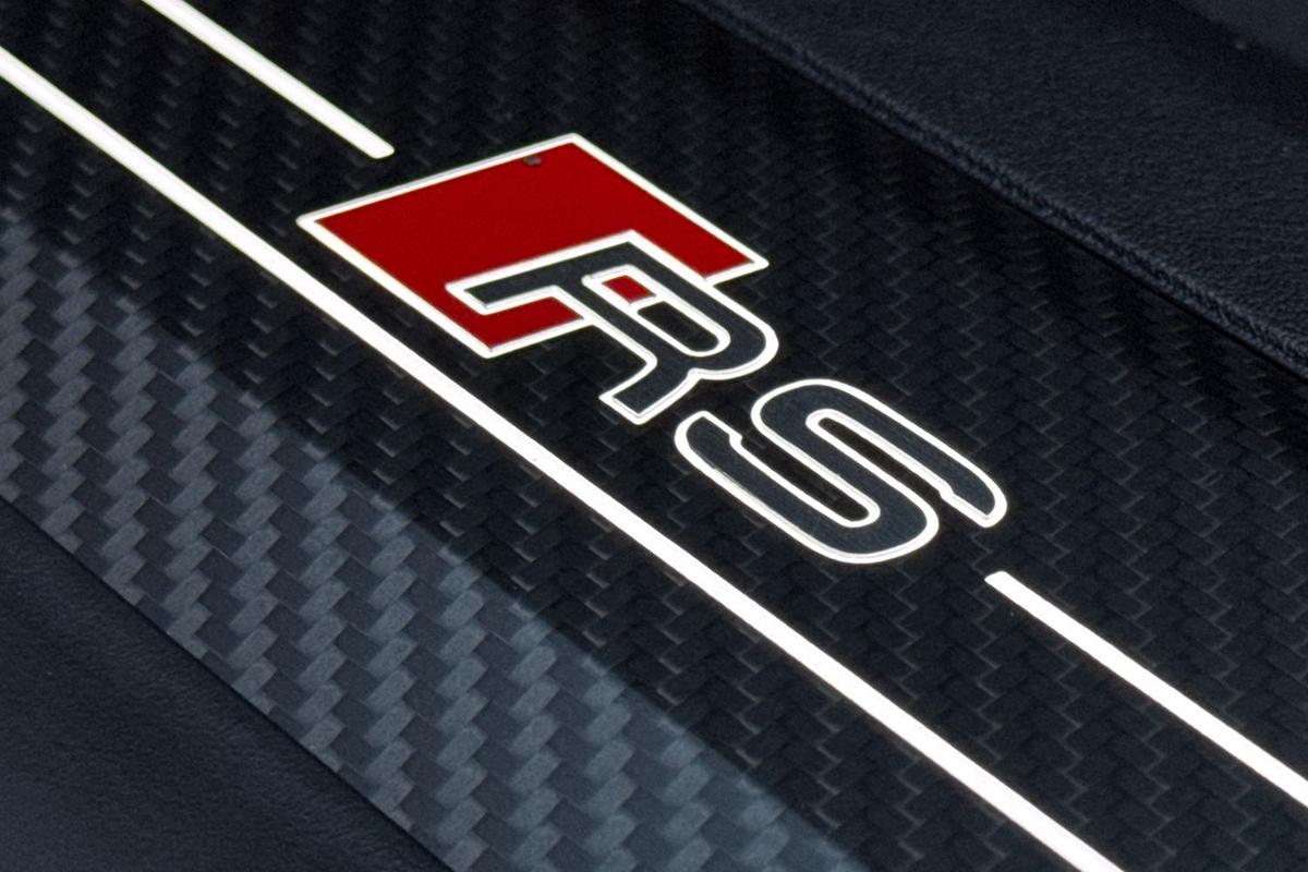 "Audi Beam uses LEDs to project S emblem with red rhombus onto the ground when opening the side doors (front/rear)",