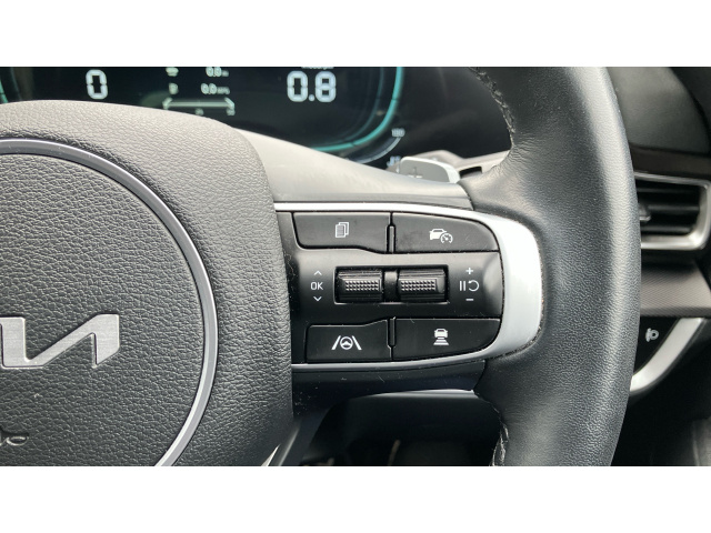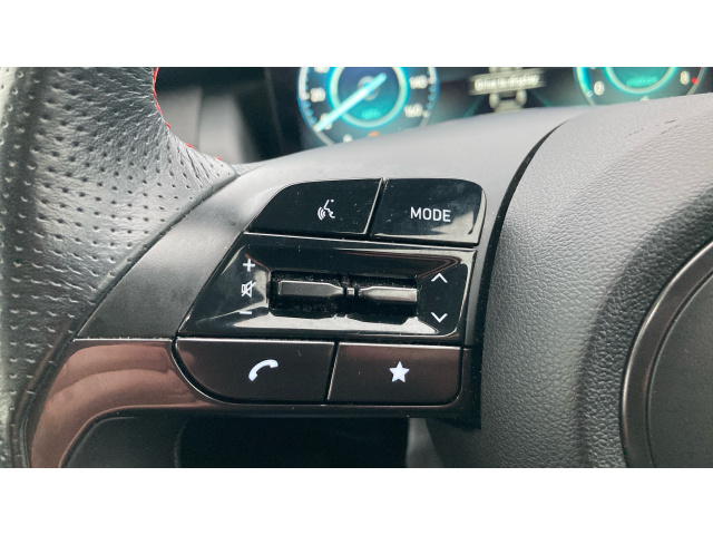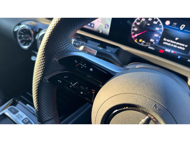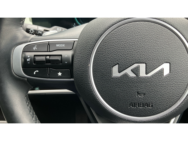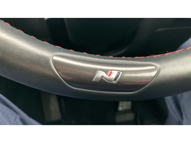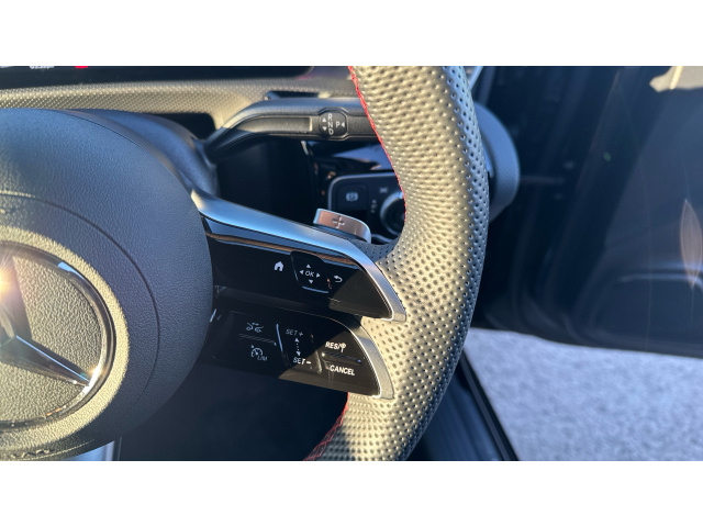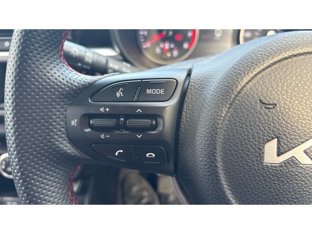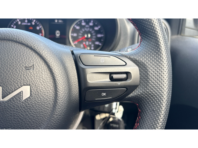 "Mistral full grain perforated leather steering wheel with aikinite stitch detail and satin chrome 'GT Line' emblem",