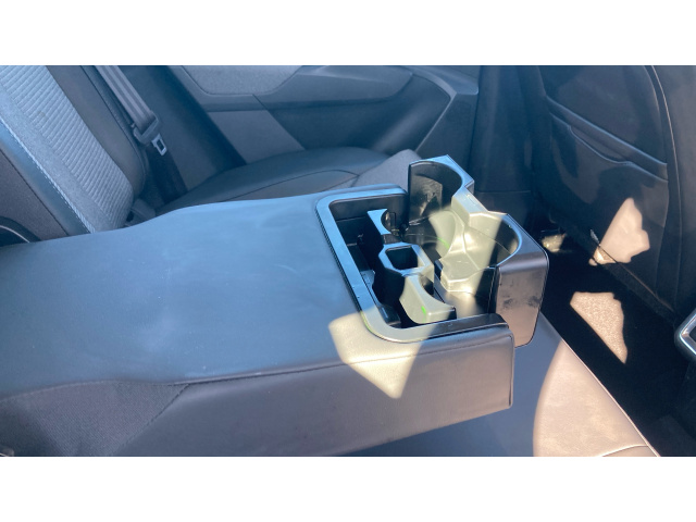 "Rear armrest with ski flap and two cup holders",
