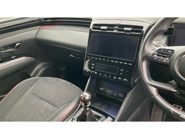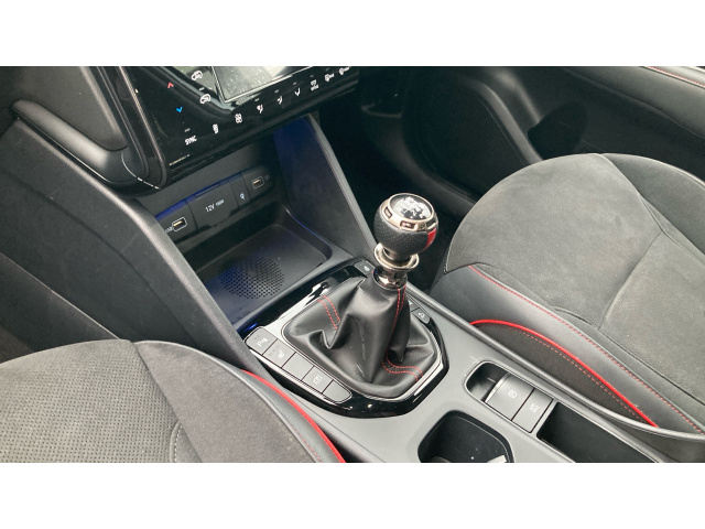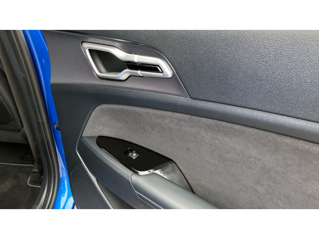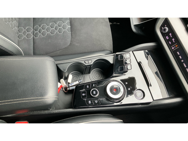 "Aikinite stitching in armrest, gear lever and dashboard facia",