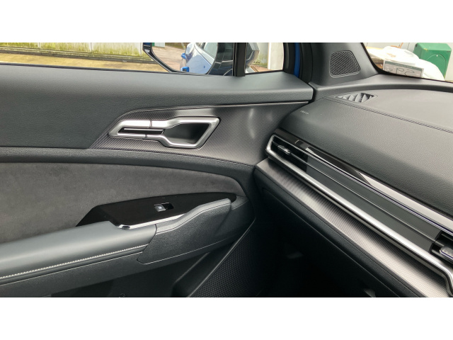 "Flocked front door pocket interior with blue ambient lighting",