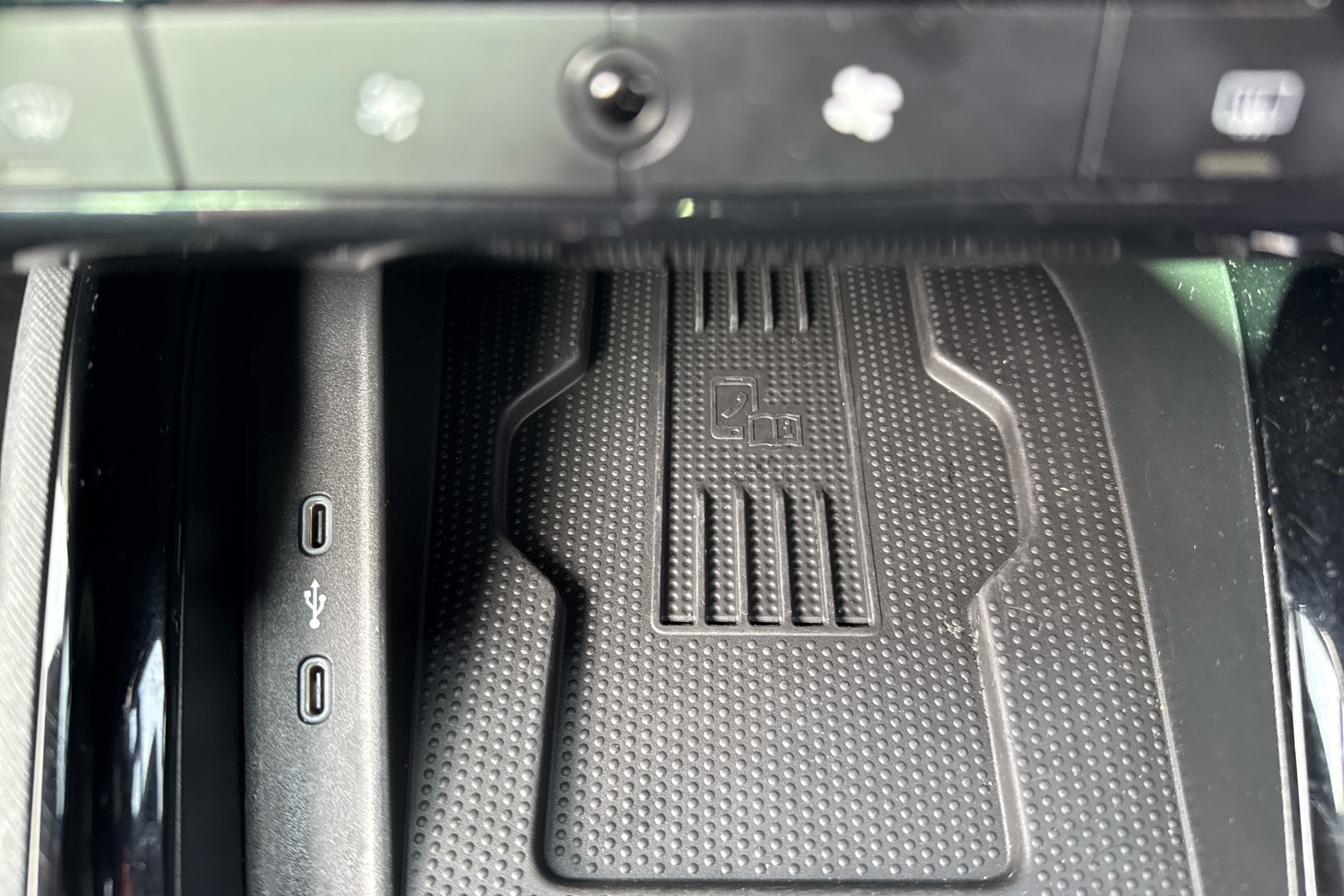 "Grain satin black central console cover",