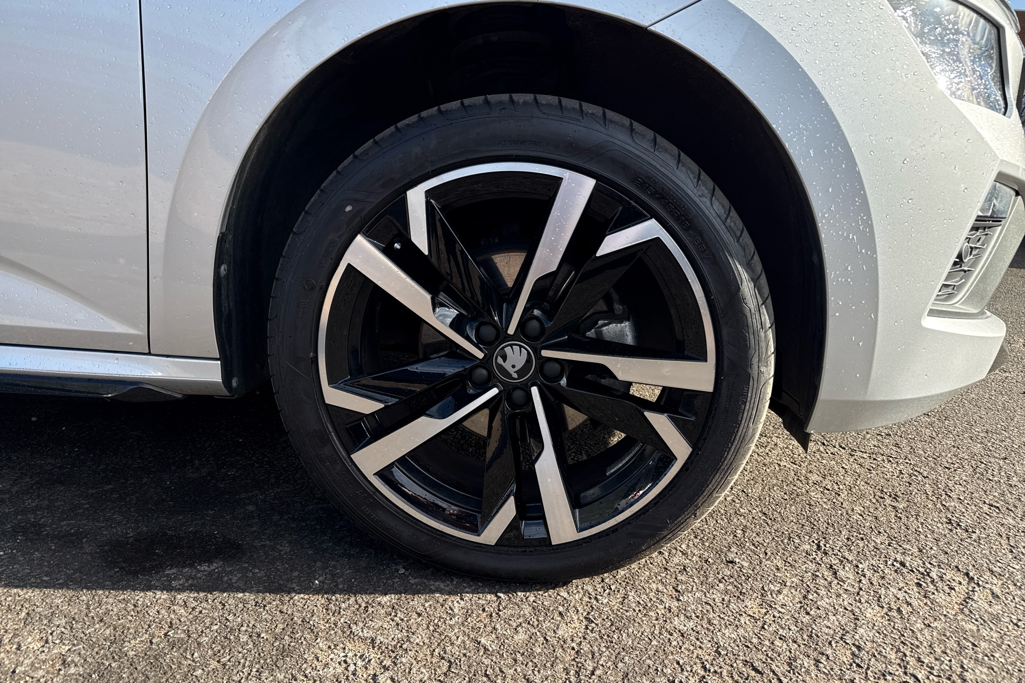"SKODA tailgate lettering in chrome",