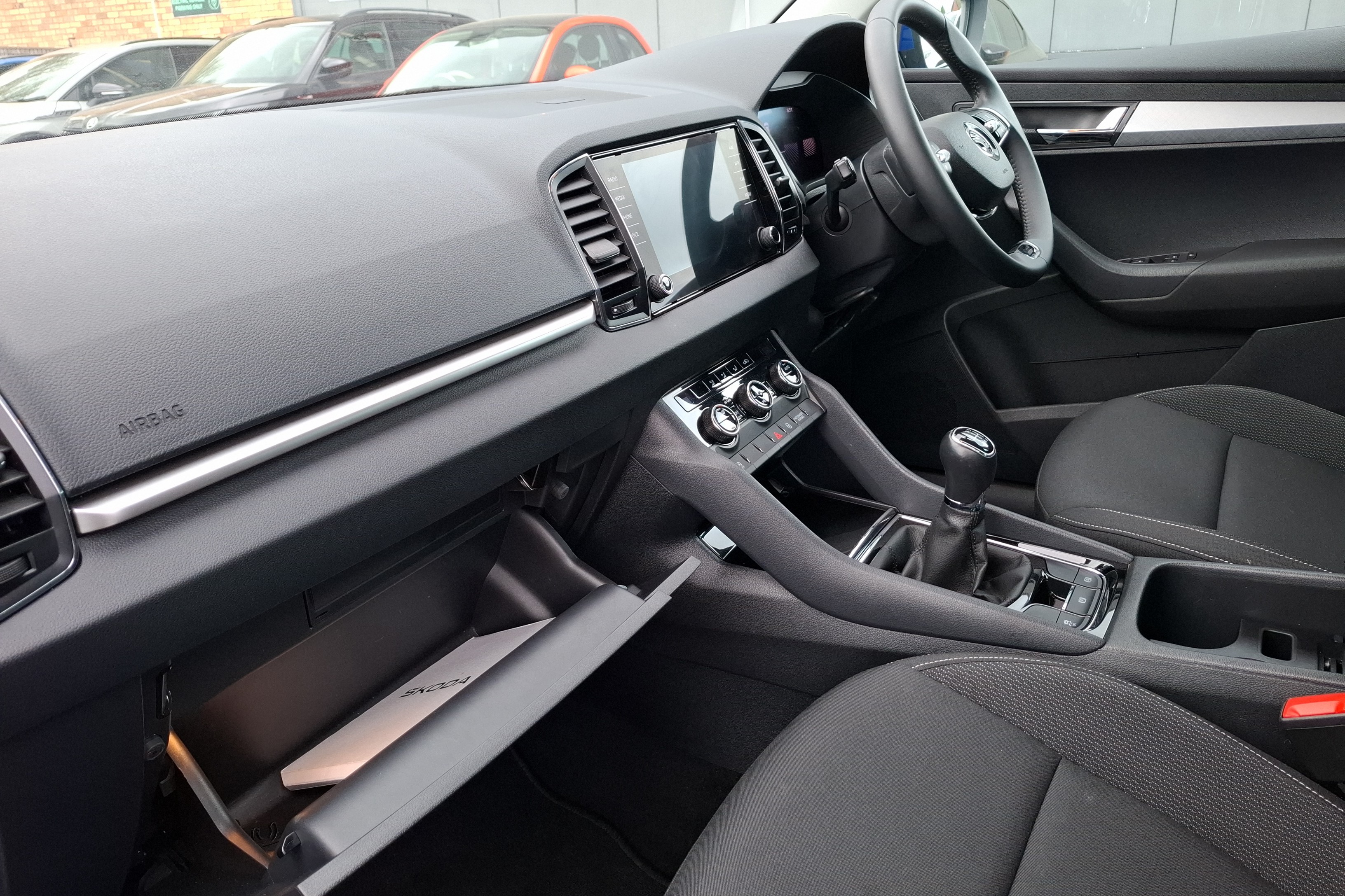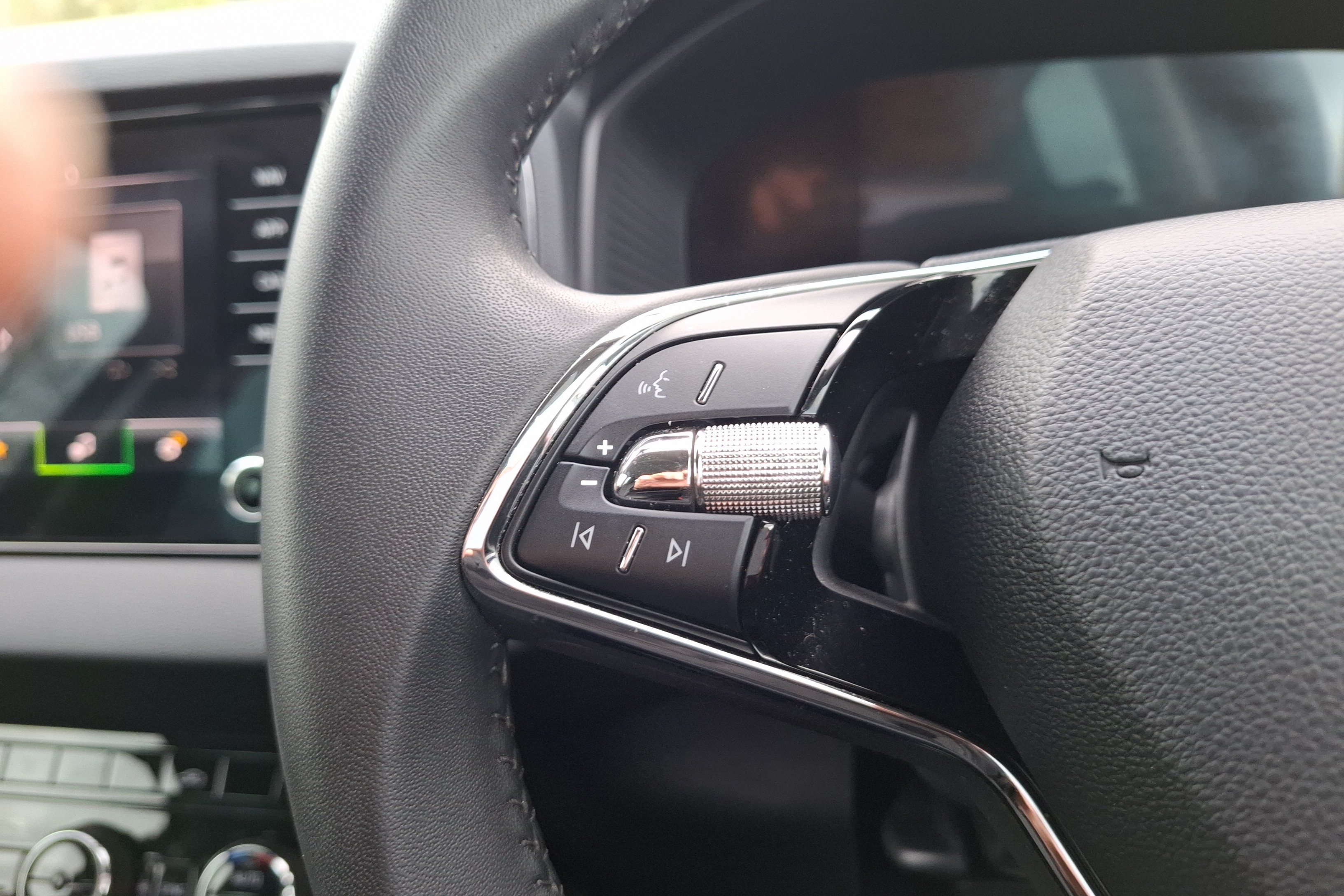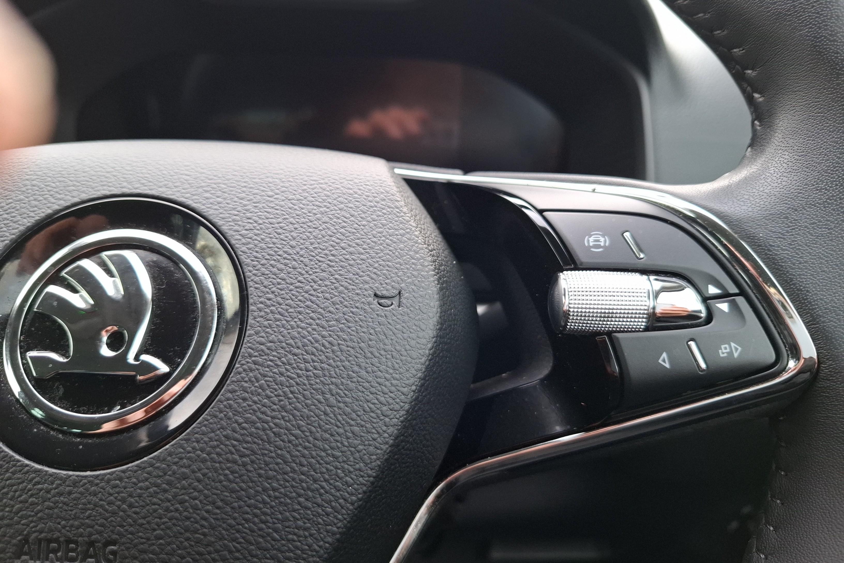 "Skoda lettering on steering wheel",