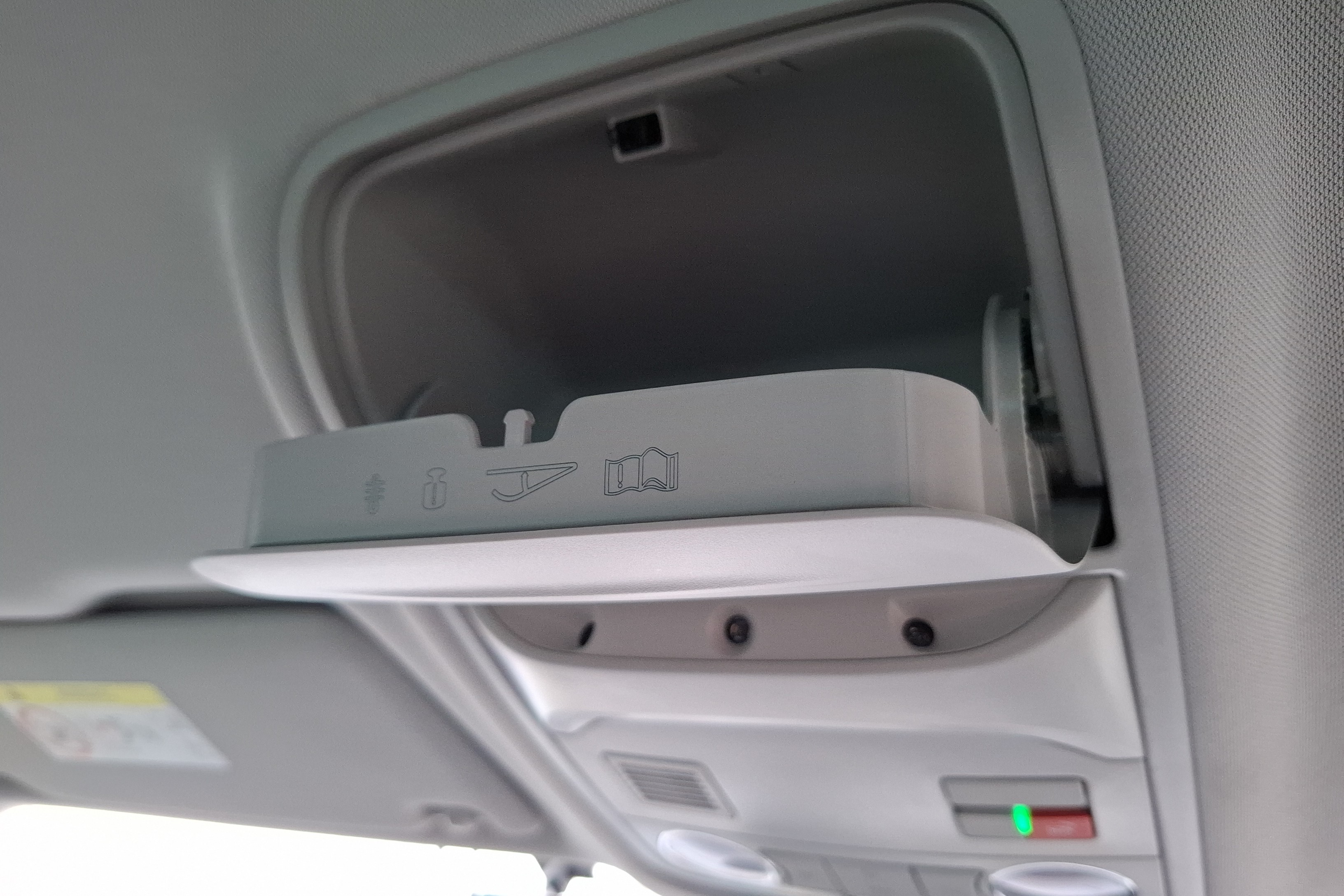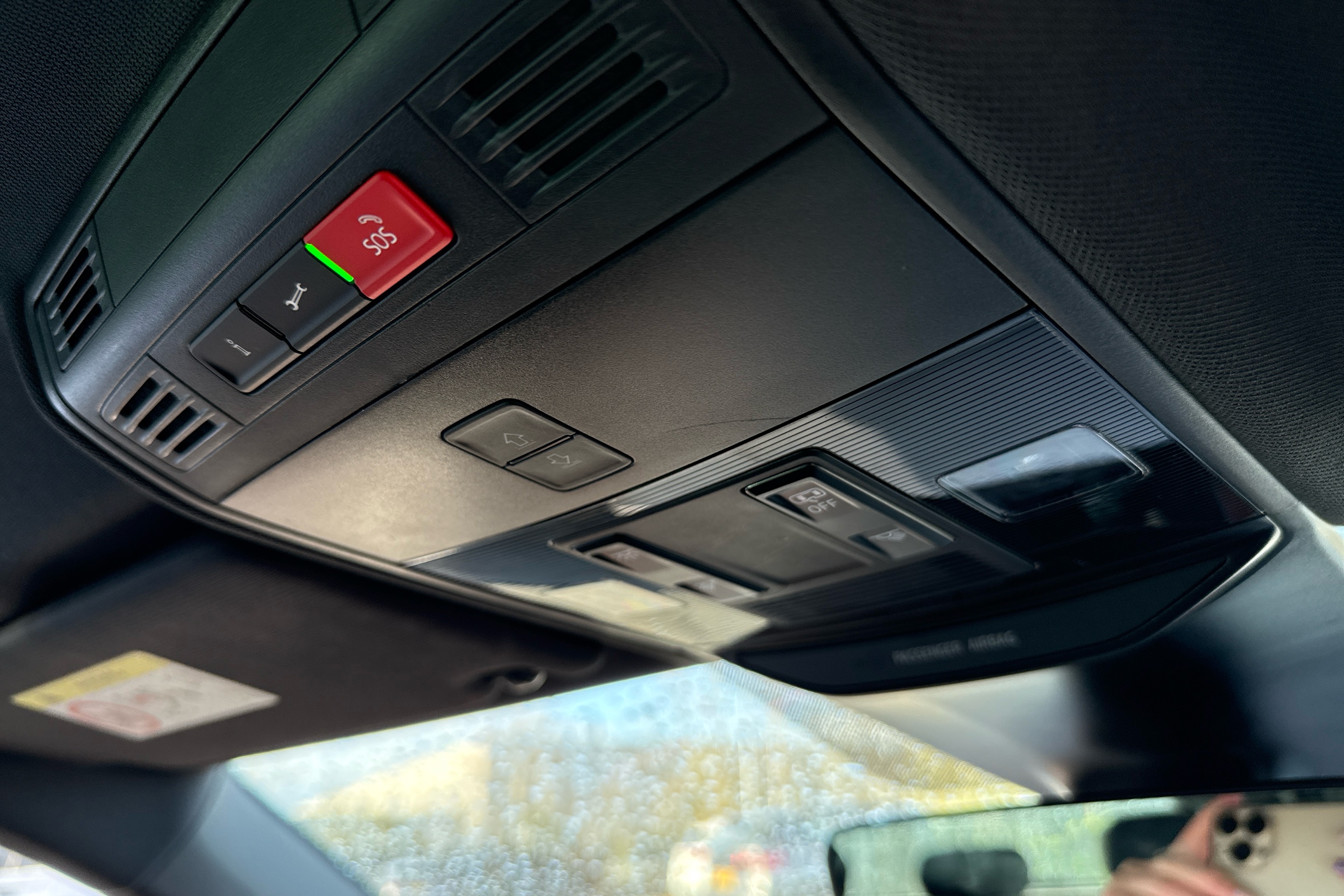 "Sun visors with mirror and airbag label on passenger side",