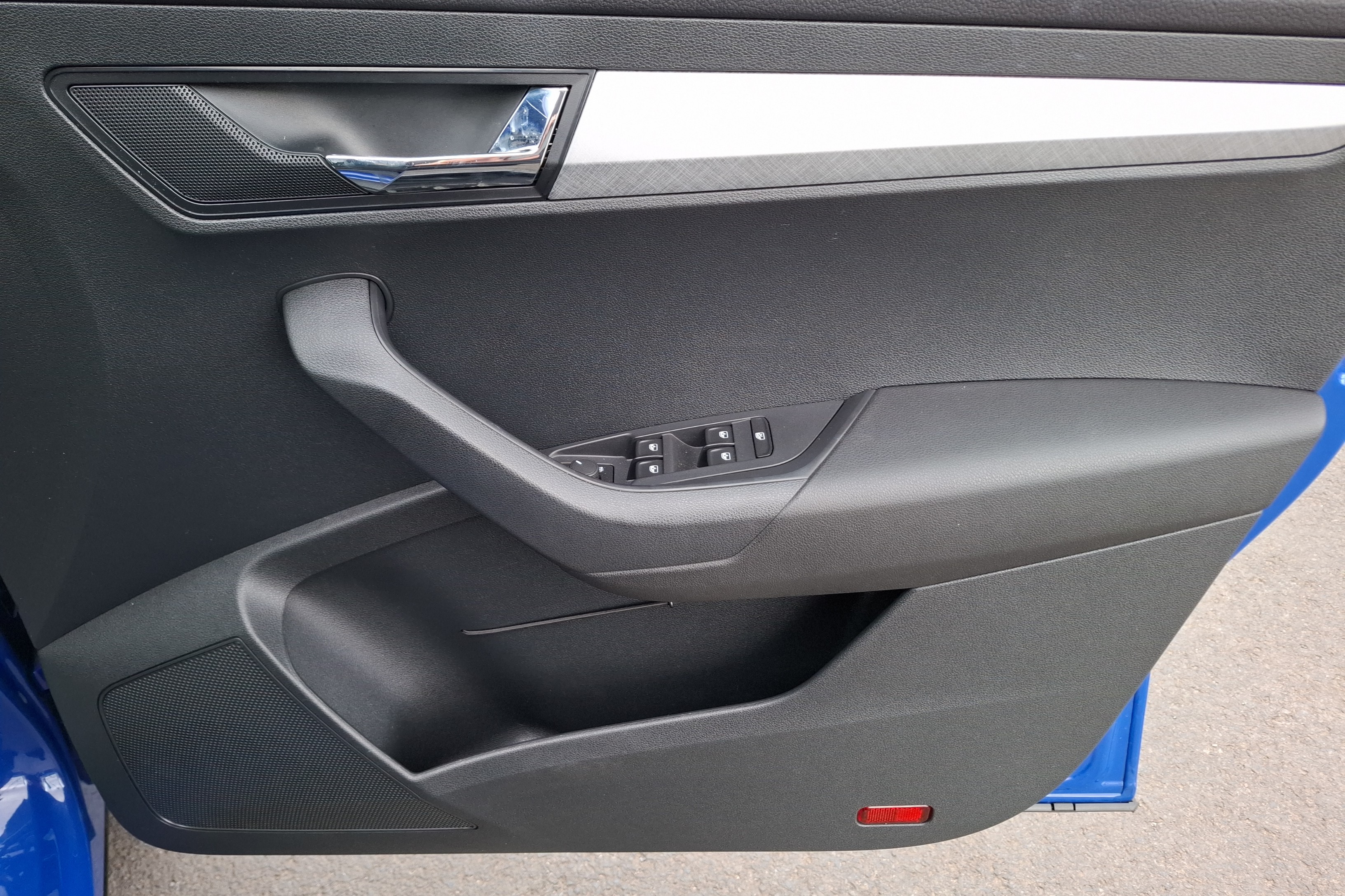 "Satin black door and side trim panel in front",