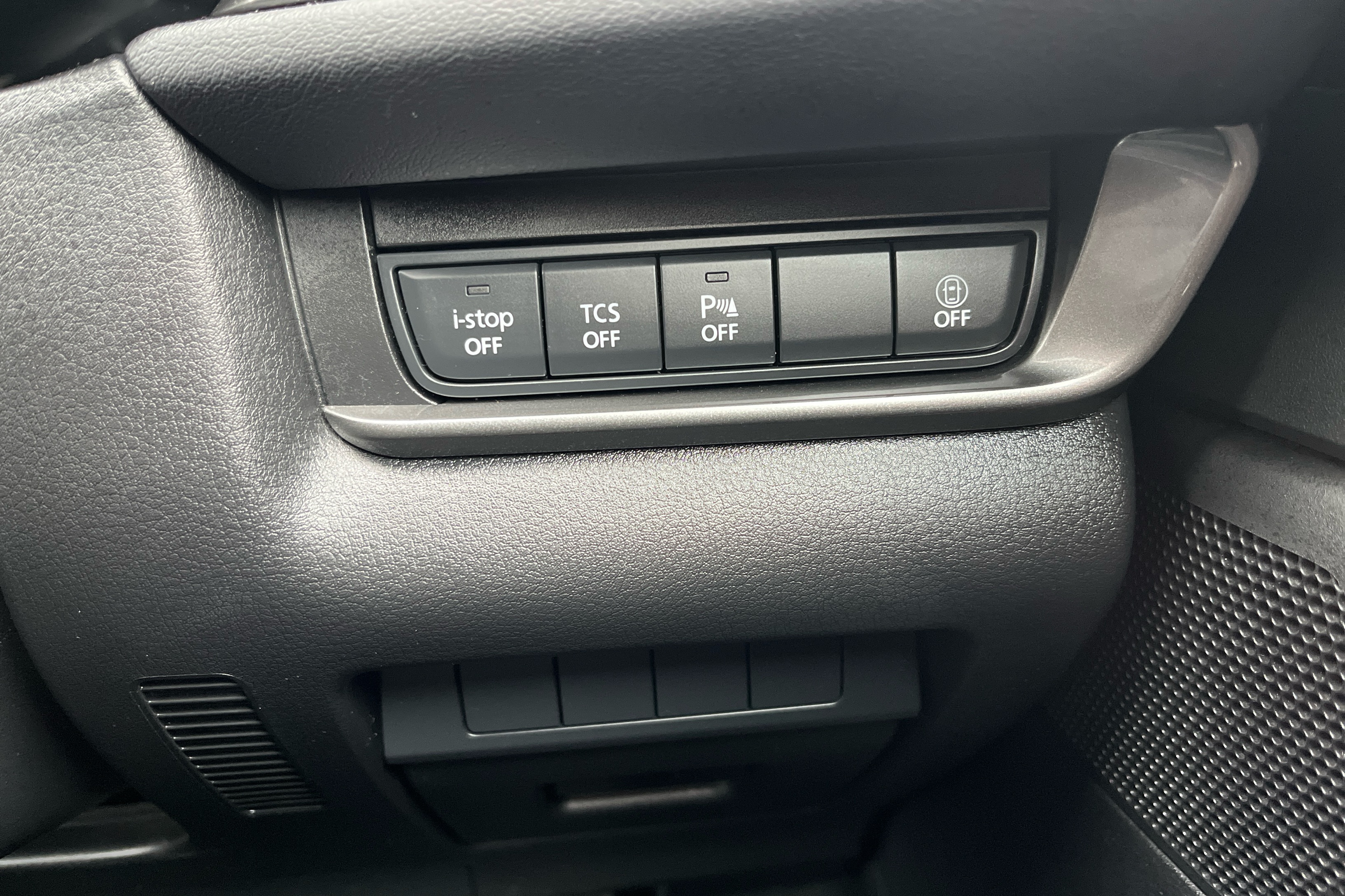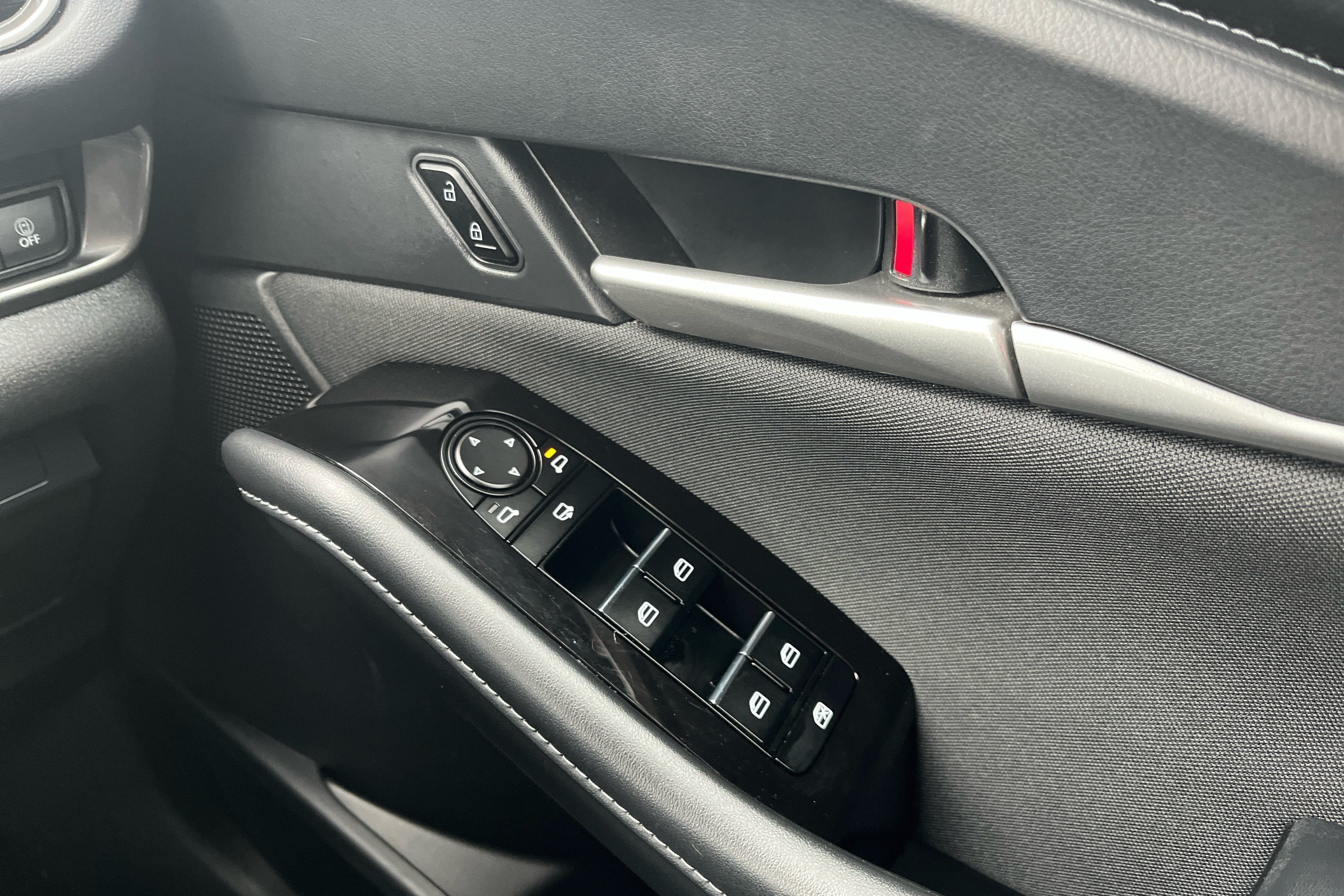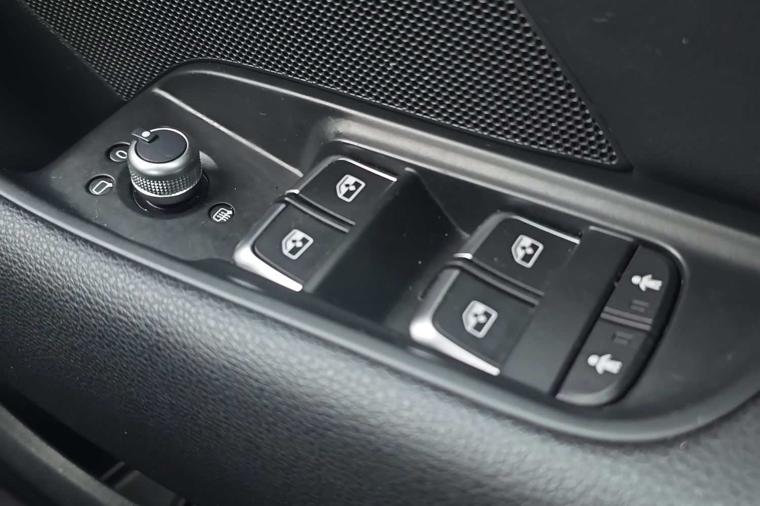 "Window control switches with black trim"
