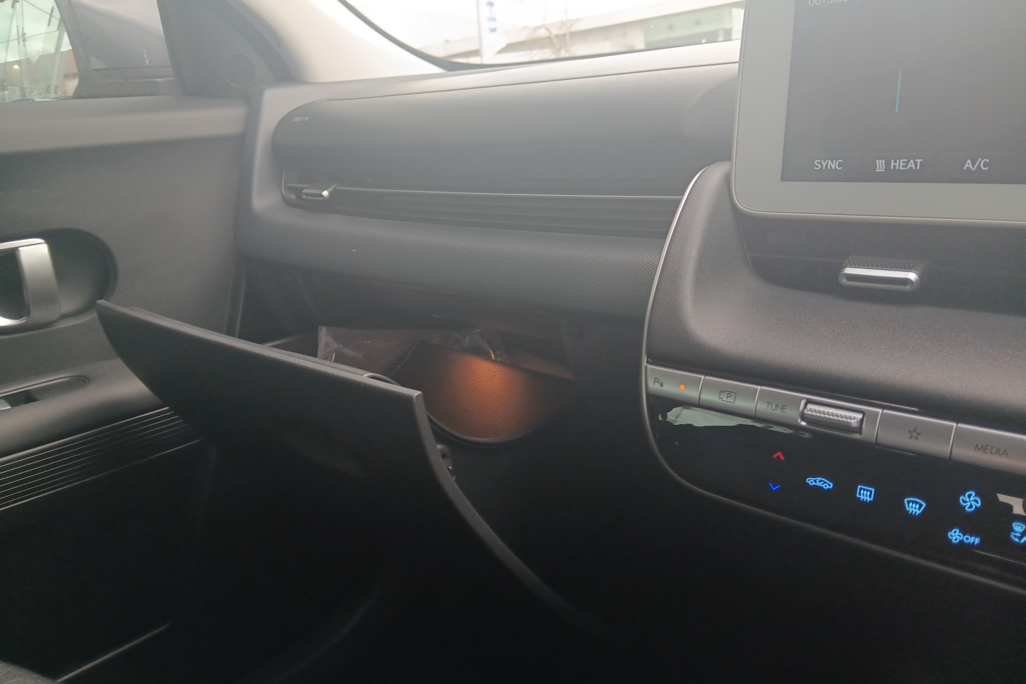 "Covered storage compartment on driver side",