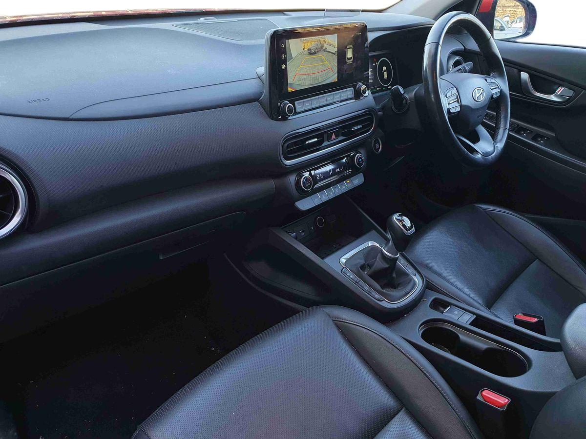 "features": "10.25\" touchscreen centre console display satellite navigation with live services and mapcare, Blind spot Collision Warning (BCW), Bluetooth connectivity, Cruise control + speed limiter, Digital clock, Driver attention warning, Driver supervision instrument cluster with 10.25\" LCD display, eCall emergency call system, Forward collision avoidance assist with pedestrian detection, Front parking sensor, Head up Display, Intelligent speed limit warning, Lane follow assist, Lane keep assist, Leading vehicle departure alert (LVDA), Parking system with rear camera and guidance system, PAS, Phone connection with apple carPlay and android auto, Rear cross traffic collision warning (RCCW), Rear parking sensor, Roadside assistance, Safe exit warning (SEW), Windscreen washer fluid sensor and warning indicator, Wireless phone charging pad, 6 speed intelligent manual transmission, Front and rear USB ports, Krell premium audio system with 8 speakers including external amplifier and subwoofer, RDS and Digital DAB, Steering wheel mounted audio/phone controls, Auto dimming rear view mirror, Automatic headlights with dusk sensor, Automatic windscreen wipers with rain sensor, Body colour door mirrors and handles, Door mirror integrated indicators, Electric front/rear windows with drivers one touch/anti-trap, Electric tilt/slide glass sunroof, Electrically adjustable and heated door mirrors, Front fog lights, LED daytime running lights, LED Headlights, LED rear lights, Painted anthracite body garnish, Positioning Lights - LED, Power folding door mirrors, Privacy glass - Rear windows and tailgate, Rear skid plate - silver, Rear spoiler with integrated LED brake light, Rear wiper, Roof rails, Solar glass with front door glass and windscreen shade band, Windscreen auto defog function, 12V power outlet in front console, 60/40 split folding rear seat, Adjustable head restraints, Air conditioning climate control, Ambient lighting, Centre interior light, Door scuff plate, Driver and passenger front seat pockets, Driver's seat electric adjustments, Driver's seat electric lumbar support, Driver/passenger sunvisors and illuminated vanity mirrors, Front interior light, Front passenger's seat electric adjustments, Heated front seats, Heated rear seats, Heated steering wheel, Height/reach adjustable steering column, Isofix rear child seat fastenings, Leather upholstery, Leather wrapped steering wheel and gear knob, Luggage compartment lighting, Luggage hooks, Luggage net, Metal paint effect interior door handles, Parcel shelf, Rear centre armrest, Rear centre console with air vents, Sunglasses holder, Ventilated front seats, Vertical adjustment rear head restraints, Trailer wiring package - Kona, Airbags - front, front side and curtain airbags, Anti-lock brake system, Childproof rear door locks, Downhill brake control, EBD + Brake Assist, Electric parking brake, Electronic stability control, Fasten seatbelt reminder, Fixed 3 point for second row centre passenger seatbelt, Front seatbelt pretensioners, Height adjustable front seatbelts, Hill start assist control (HAC), Passenger airbag deactivate switch, Rear seat alert, Traction control, Tyre pressure monitoring system, Alarm/immobiliser, Deadlocks, Folding key, Locking wheel nuts, Remote central locking, Smart key with keyless entry and engine start/stop button, 18\" alloy wheels, ",