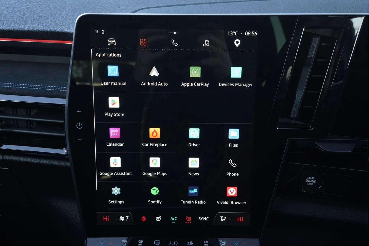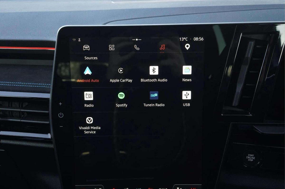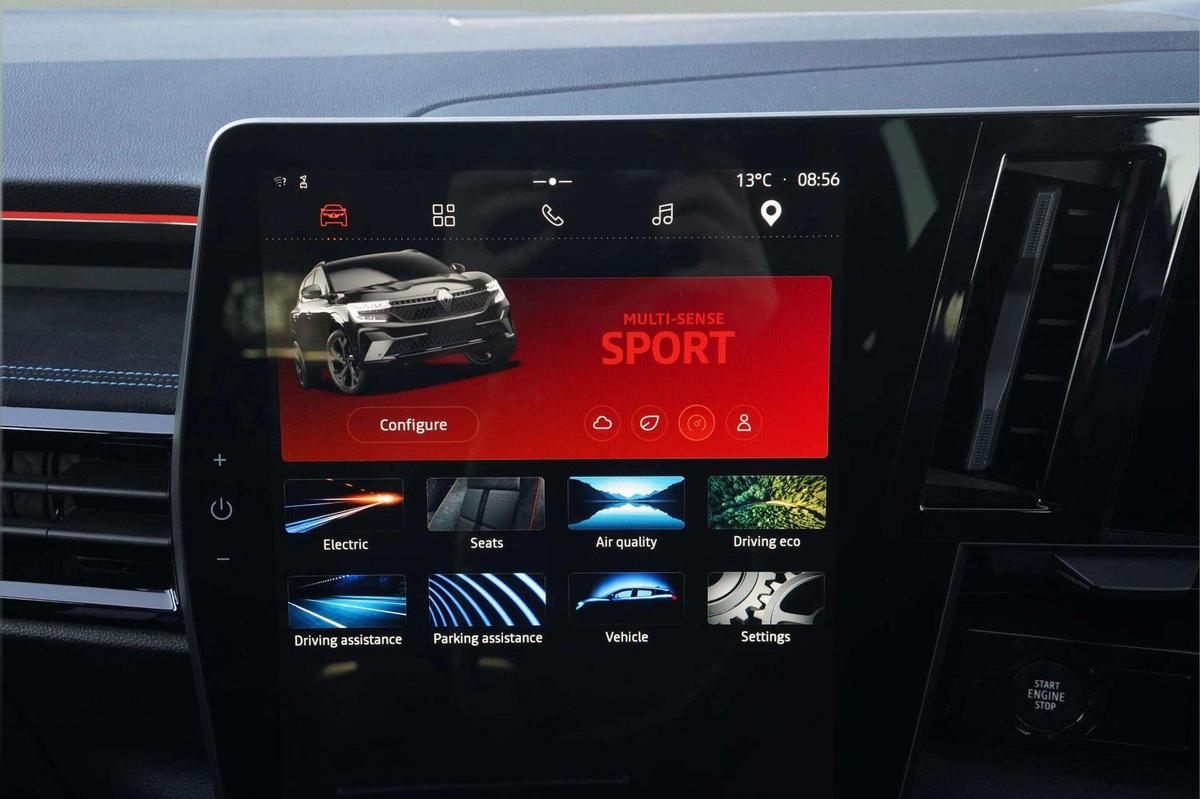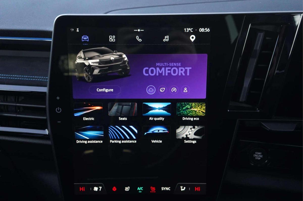 "features": "12\" openR multimedia screen, 12.3\" driver information display cluster, 9.3\" head-up display, Apple car play and Android auto, Autonomous driving level 2: adaptive cruise control with speed limiter, lane centering and hands-off detection, Blind spot warning, Bluetooth, Configurable dashboard display, Digital owner's manual, Driver attention alert system, E-call, Eco mode, Electric power boot opening, Emergency lane keep assist including overtaking and oncoming traffic, Engine start button, Exterior temperature display, Front cross traffic camera, Front, rear and side parking sensors, Gear selection indicator, Google built-in: maps, assistant and playstore, Internet access, Lane change warning, Lane departure warning, Multisense driving modes (eco, comfort, sport and normal), OEM internet services, On board diagnostics, PAS, Pedestrian alert, Real time traffic information, Rear cross traffic alert, Rear cross traffic camera, Rear view camera, Service interval indicator, Start/stop system, Tailgate, Traffic and speed sign recognition with overspeed prevention, Travel data recorder, Trip computer, Voice control for audio, climate, telephone, navigation, Wi-Fi hotspot, 2 front and 2 rear USB-C ports, Arkamys audio system with 8 speakers, DAB radio, Steering wheel audio controls, Auto dimming door mirrors, Auto dimming rear view mirror, Automatic high / low beam, Body coloured bumpers, Cornering headlights, Door mirror LED indicator lights, Door sill protector, Electric adjustable door mirrors, Electric folding and heated door mirrors, Electric one-touch power front and rear windows, esprit Alpine detailing, Flush roof bars, Frameless rear view mirror with rain and light sensor, Front fog lights, Front wiper de-icer, Heated rear window, LED 3rd brake light, LED adaptive vision, LED daytime running lights, LED rear lights with moirage effect, Matrix LED vision headlights, Privacy glass, Rear side wing doors, Shark fin antenna, Tinted rear windows, Trailer Stability Programme, Underbody protection, Variable intermittent front wash/wipe, Variable intermittent rear wash/wipe, 12v power outlet in cargo area, 12V power outlets front and rear, 3 folding rear headrests, Air purifier, Cabin air filter, Cigarette lighter, Cloth/alcantara upholstery, Cruise control operation in steering wheel, Dual zone automatic climate control, Electric front seats with lumbar adjustment, massage function, driver recognition and easy access, Esprit Alpine leather steering wheel, False floor in boot, Front and rear head restraints, Front floor lighting, Heated front seats, Heated steering wheel, Interior ambient lighting, ISOFIX child seat fixing points on rear outermost seats, Luggage area divider, Luggage compartment cover, Luggage compartment light, Manually adjustable steering column, Multifunction steering wheel, Reach and rake adjustable steering column, Rear armrest, Regenerative braking paddles, Rubber floor mats, Seat pockets on rear of front seats, Single front passenger seat, Sliding 3 seat rear bench, Sliding centre console handrest, Tie down hooks, Timed interior light, 3 point seatbelts on all rear seats, ABS, Automatic emergency braking system (urban, city pedestrian and cyclist), Curtain airbags, Distance warning alert, Driver airbag, Driver knee airbag, Electronic parking brake with auto hold, Emergency brake assist with intersection function, ESP, Fire protection system, Front & rear active emergency brake assist, Front side airbags, Height adjustable front seatbelts, Height adjustable rear seatbelts, Hill start assist, Manual passenger airbag deactivation function, Manual rear child locks, Passenger airbag, Passenger knee airbag, Pedestrian airbag system, Seatbelt load limiter, Seatbelt pretensioners, Seatbelt reminder, Tyre pressure monitor, Alarm, Central locking, Drive away door locking, Hands free key card with keyless entry, Immobiliser, Remote central locking, Remote vehicle locator, 20\" Daytona alloy wheels, ",