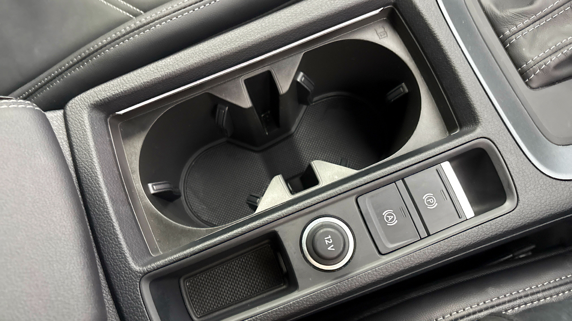 "2 front cupholder in centre console with clamping elements and matt black inlay",