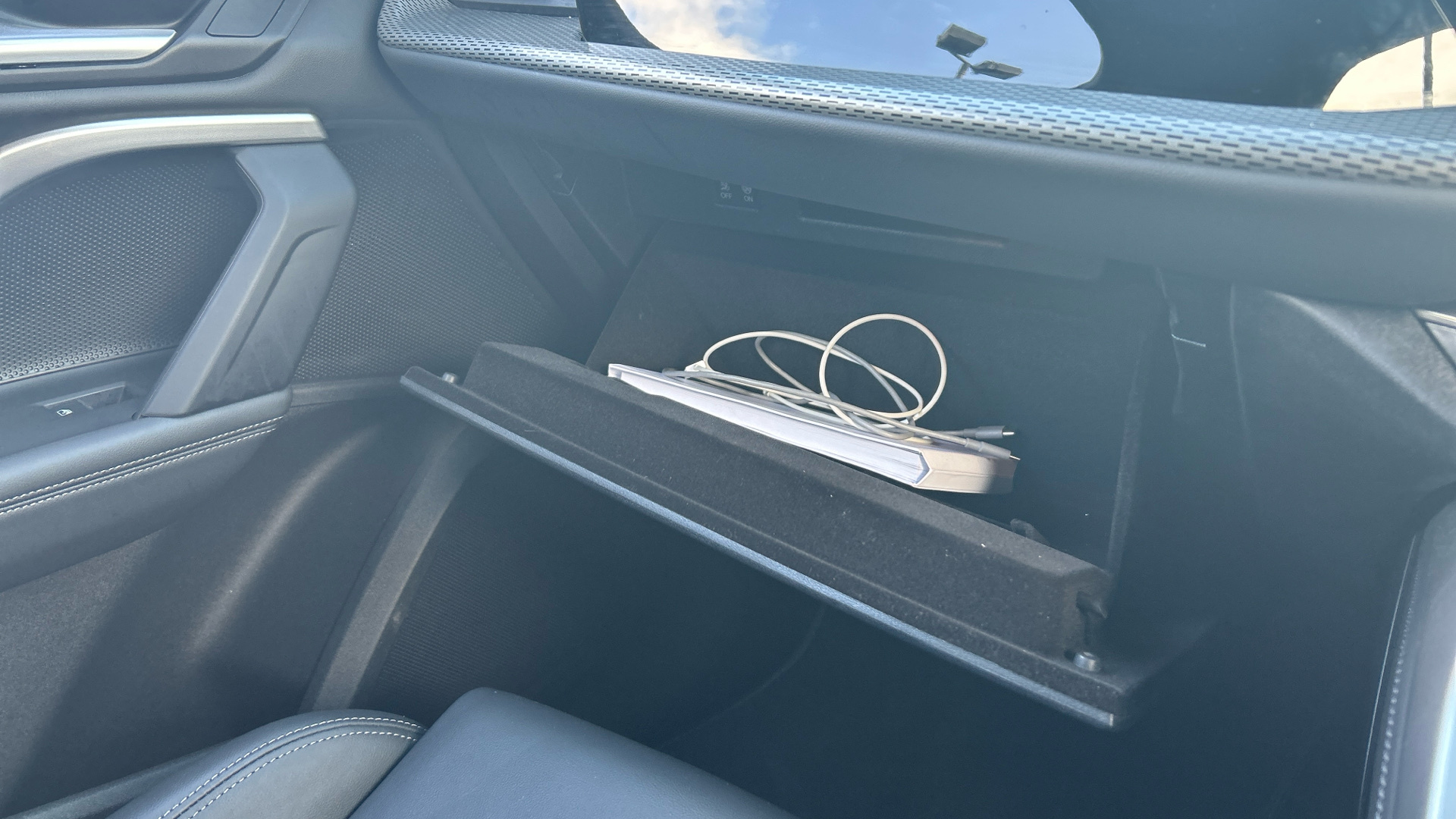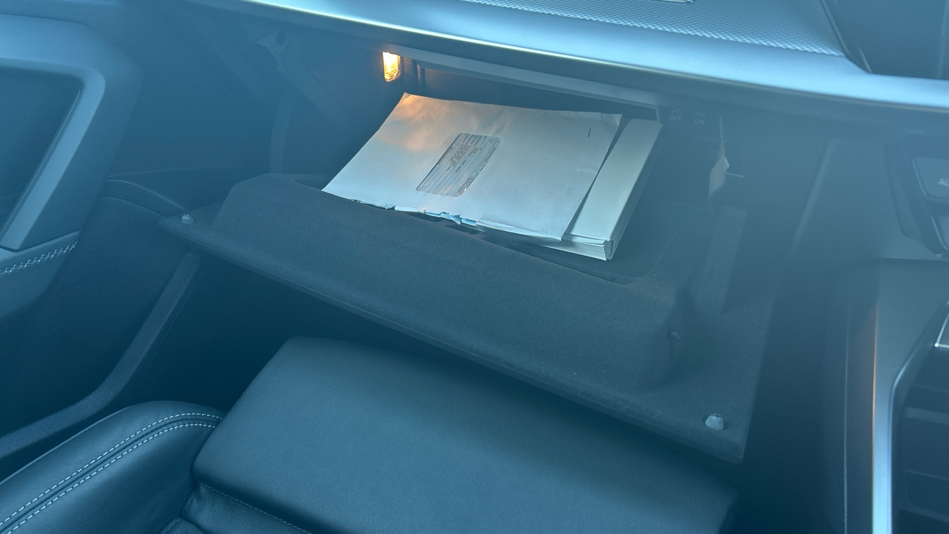 "Illuminated glove compartment with separate small compartment",