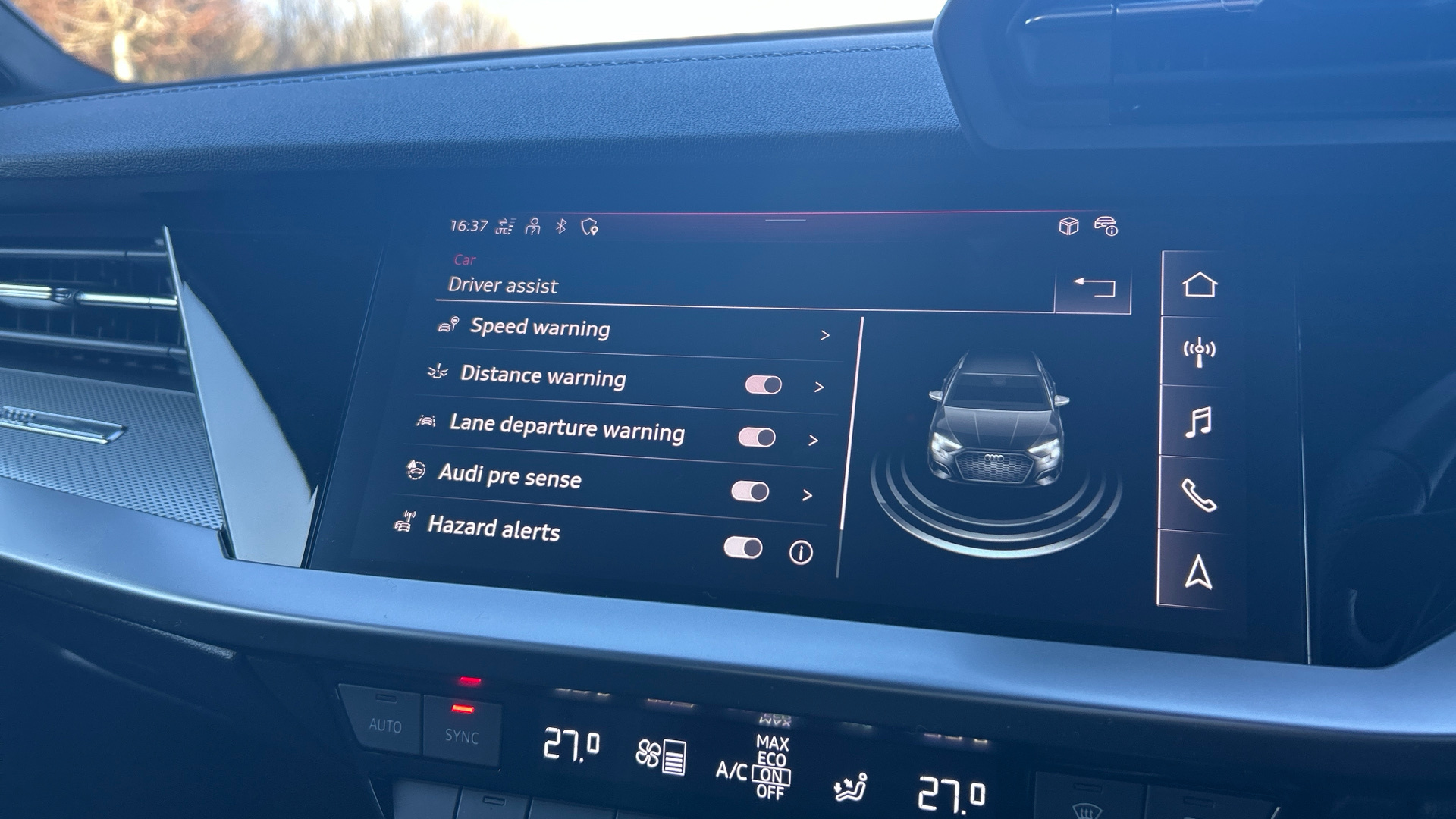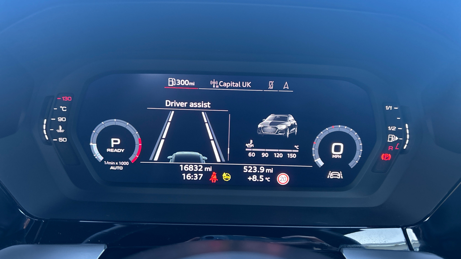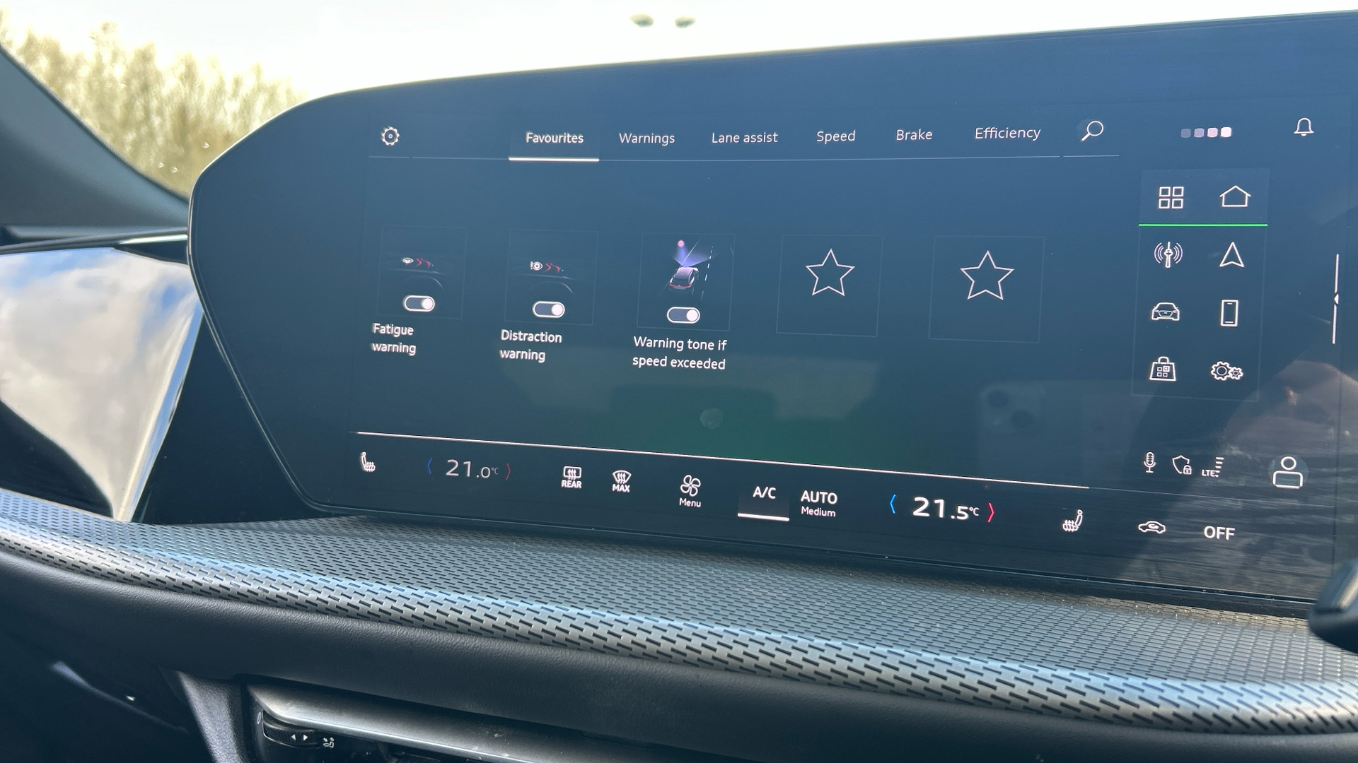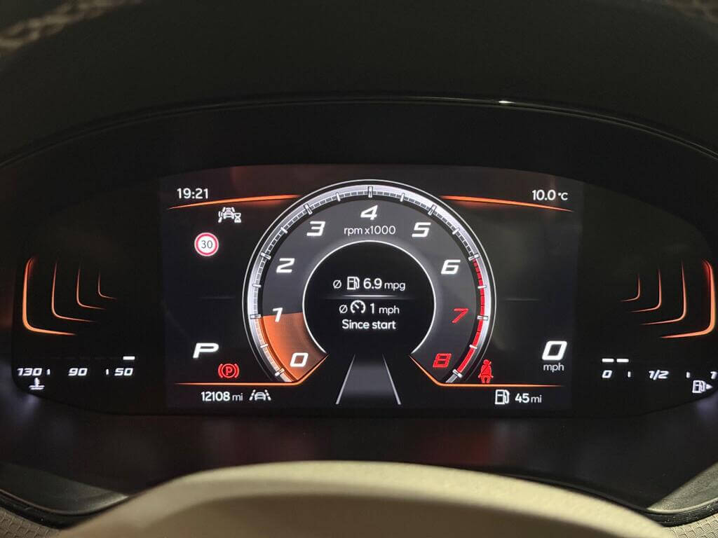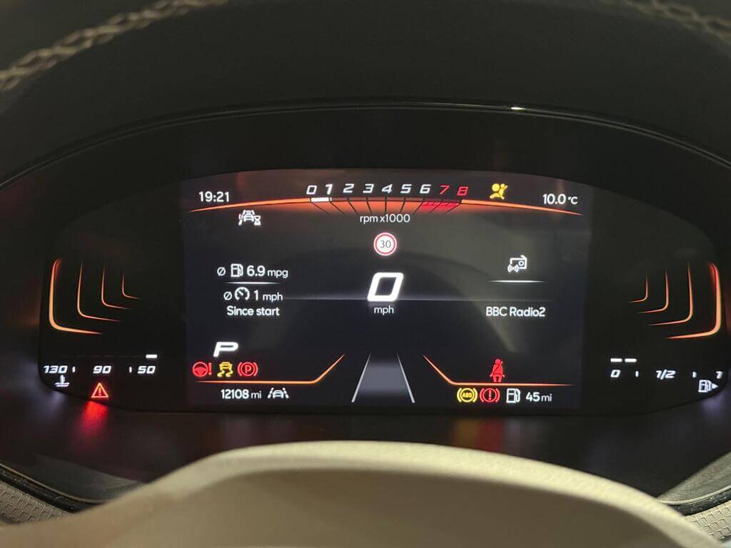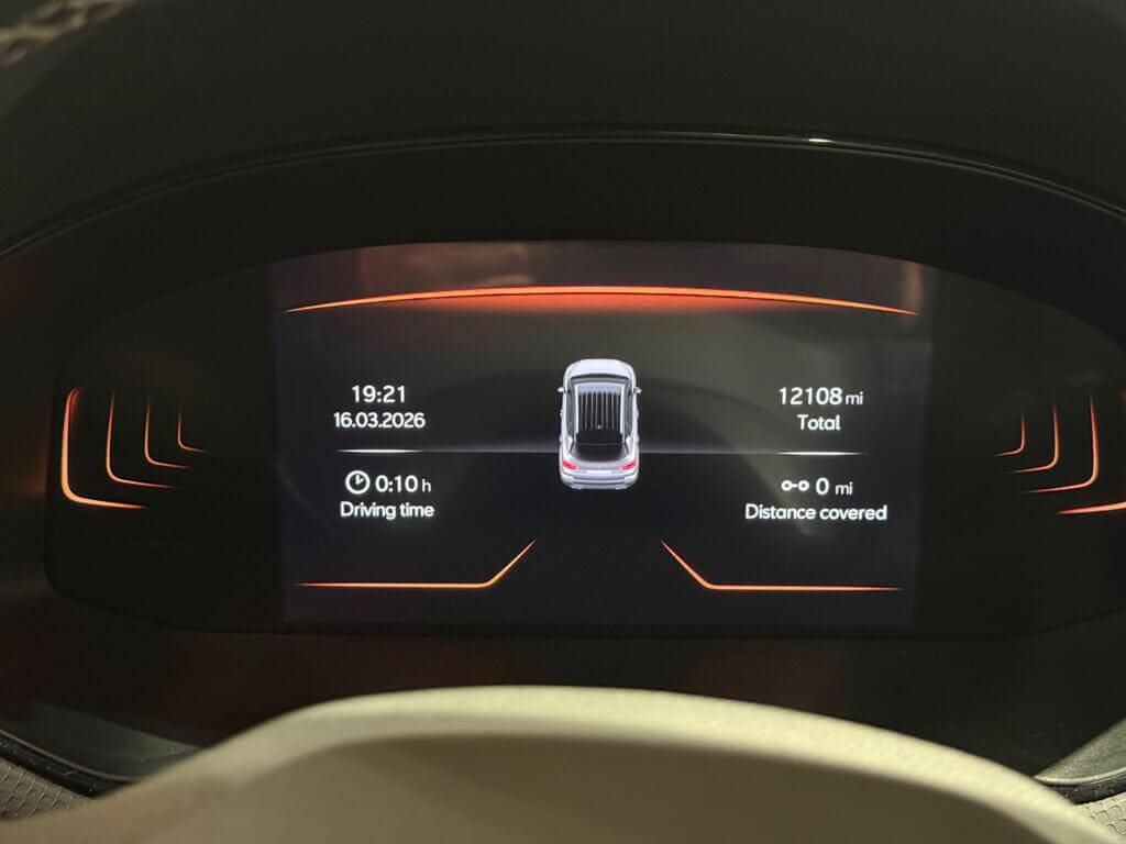 "On board computer - average speed+fuel consumption, service interval, clock/date, odometer/trip meter, outside temperature display and ice warning",
