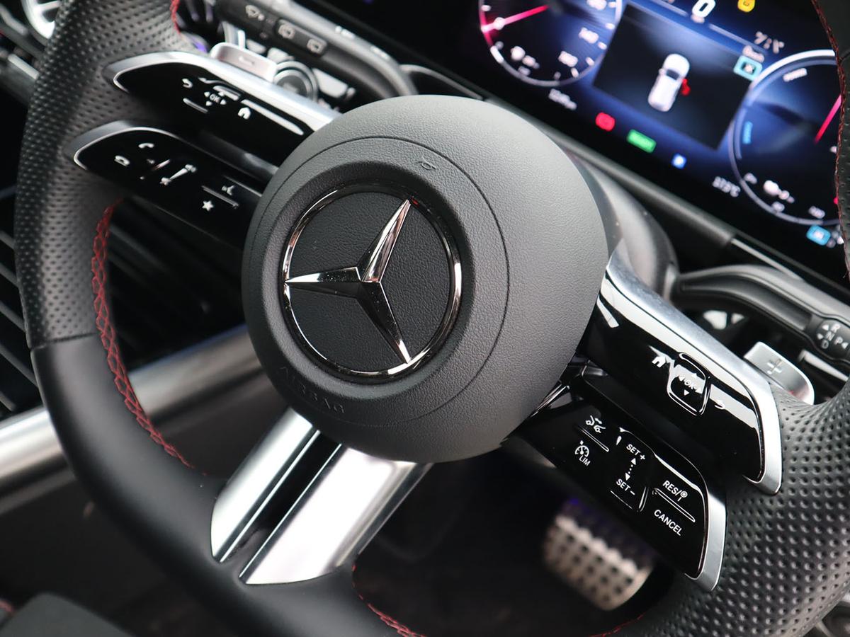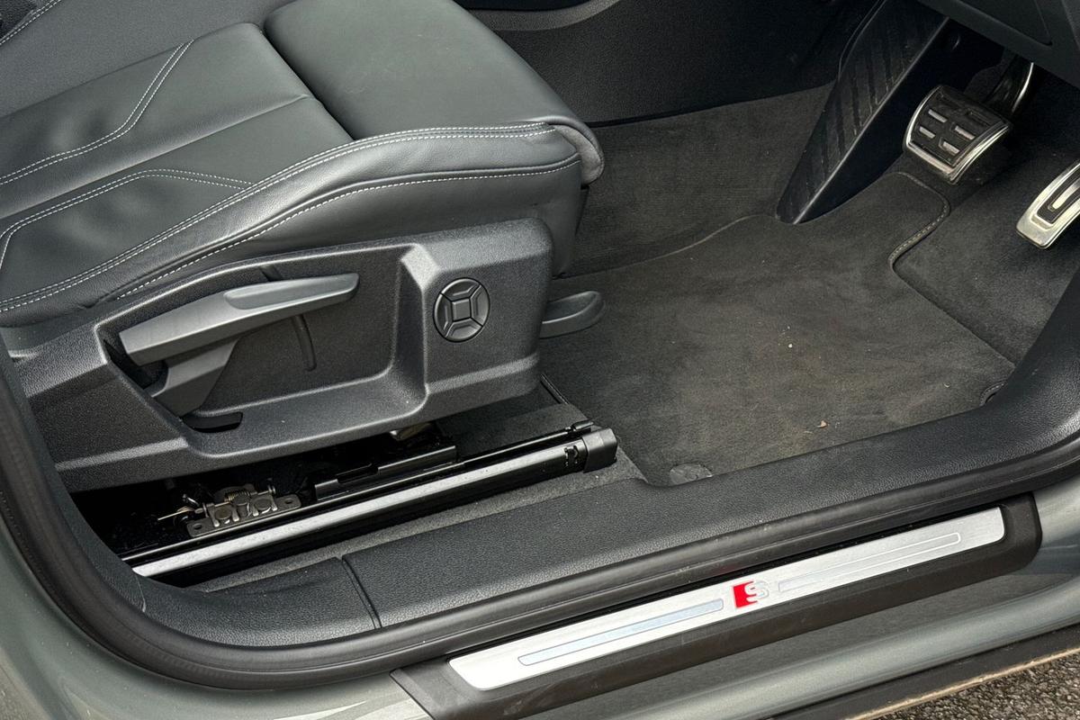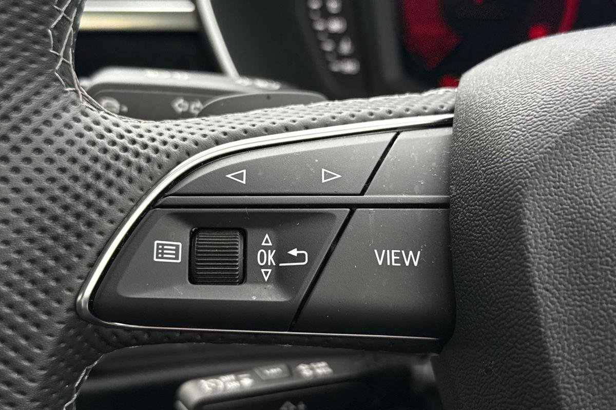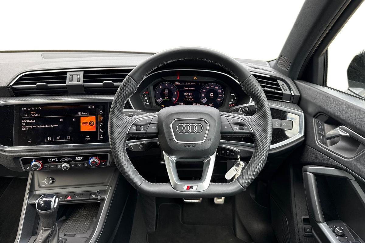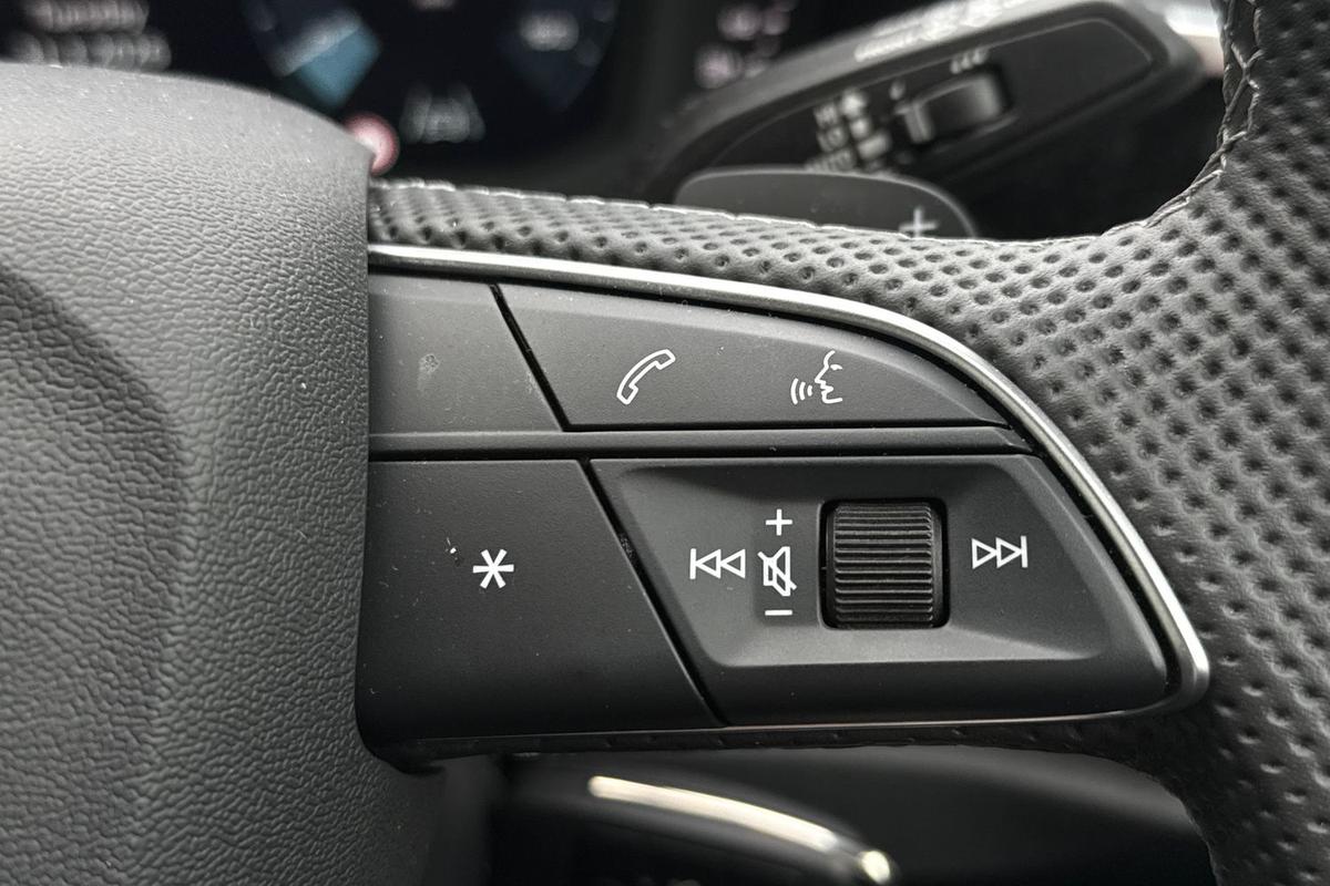 "3 spoke heated flat top and bottomed leather multi function sport steering wheel with gear shift paddles and \"S\" badging",