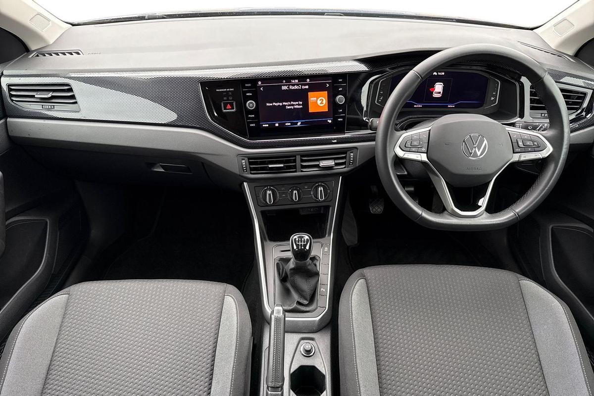 "features": "Adaptive cruise control without follow-to-stop and speed limiter, Bluetooth mobile phone interface, Driver alert system, Emergency call service, Front assist system, Power assisted speed sensitive steering, Preparation for We connect and We connect plus, Speedo and rev counter, electronic odometer, trip, service interval display and fuel gauge, Standard rear axle, Travel Assist - Lane keeping system and traffic jam assist, Travel assist including emergency assist, Trip computer, Warning signal and warning light for front and rear seatbelts not fastened, Washer fluid level indicator, Wireless app connect, Front wheel drive, Rear shock absorpion, Start-stop system with battery regeneration (recuperation - energy recovery during braking), DAB Digital radio, Diversity antenna for FM reception, Front and rear 6 speakers, Automatic dimming interior rear view mirror, Body colour bumpers, Body colour door handles, Body colour door mirrors, Electric front windows, Heat insulating darkened glass in side and rear windows, Heat insulating glass windscreen, Power folding adjustable/heated exterior mirrors and front passenger exterior mirror lowering function, Rain sensor, Rear electric windows, Rear fog light, Rear side wing doors, Rear windscreen washer and wiper with interval delay, Third brake light, 12V power socket in centre console, 2 front and 2 rear reading lights, 2 USB-C ports in the front, 2 USB-C charging sockets on the center console in the rear, 3 rear head restraints, 60/40 split folding rear seat and rear seat bench not split, Chrome plated radiator grille inserts, air vent surrounds and light switch surrounds, Door and side trim panel, Driver and front passenger seat height adjustment, Driver/passenger sunvisors with illuminated vanity mirrors, Front centre armrest, Front seat backrest storage pockets, Front standard seats, Handbrake lever handle in leather, Hartley/Thomas cloth upholstery, Headliner in recycled material, Isofix child seat preparation easy-fit (for two outer rear seats, and front passenger seat) compatible with I-size, Leather trimmed gear knob, Luggage compartment cover, Luggage compartment floor, Luggage compartment lighting, Multifunction steering wheel, Single front passenger seat, Standard pedal cluster, Light and vision pack - Polo, 3 point height adj front seatbelts + pretensioners, 3x3 point rear seatbelts, ABS, Driver and front passenger airbag with front passenger airbag deactivation, Drivers and front passengers safety optimised head restraints, ESC (Electronic stability control) + EDL (Electronic Differntial lock) and ASR (Traction control), Extended and predictive pedestrian/ cyclist protection, Front curtain and side airbags with center airbag, Front disc brakes, Hill hold control, Manual child lock in rear doors, Rear drum brakes, Single tone horn, Tyre pressure loss indicator, Alarm with interior protection, Anti-theft alarm system with interior monitoring, backup horn, and towing protection, Anti-theft wheel bolts, Electronic engine immobiliser, Lava stone black gloss/matt decorative inserts in dash and front door panels, Low rolling resistance tyres, ",