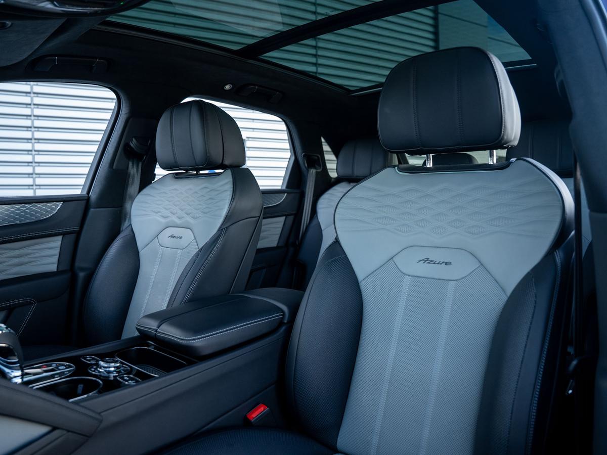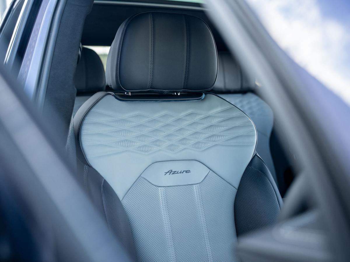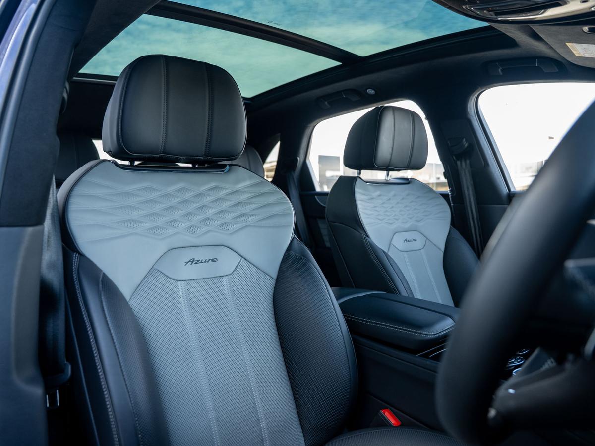 "Microfibre upholstery with rhombus pattern and S emblem + front sports seats",