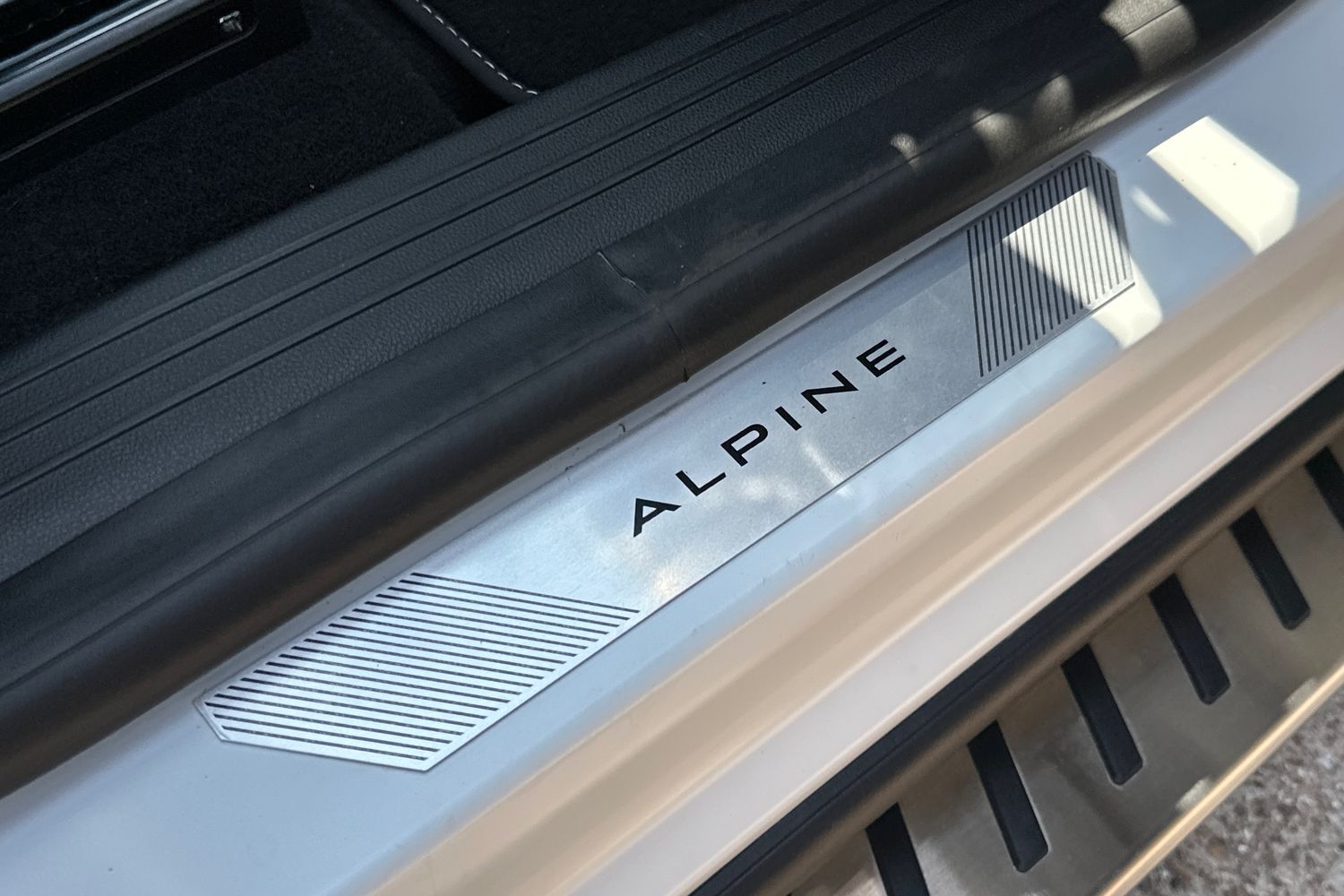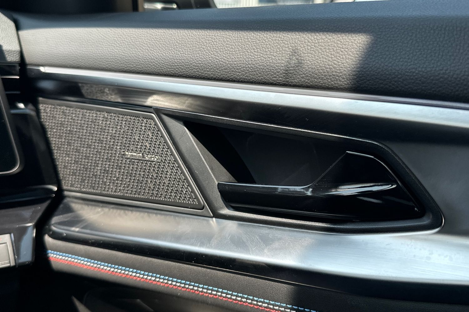 "Front door sill finishers in black plastic with BMW designation",