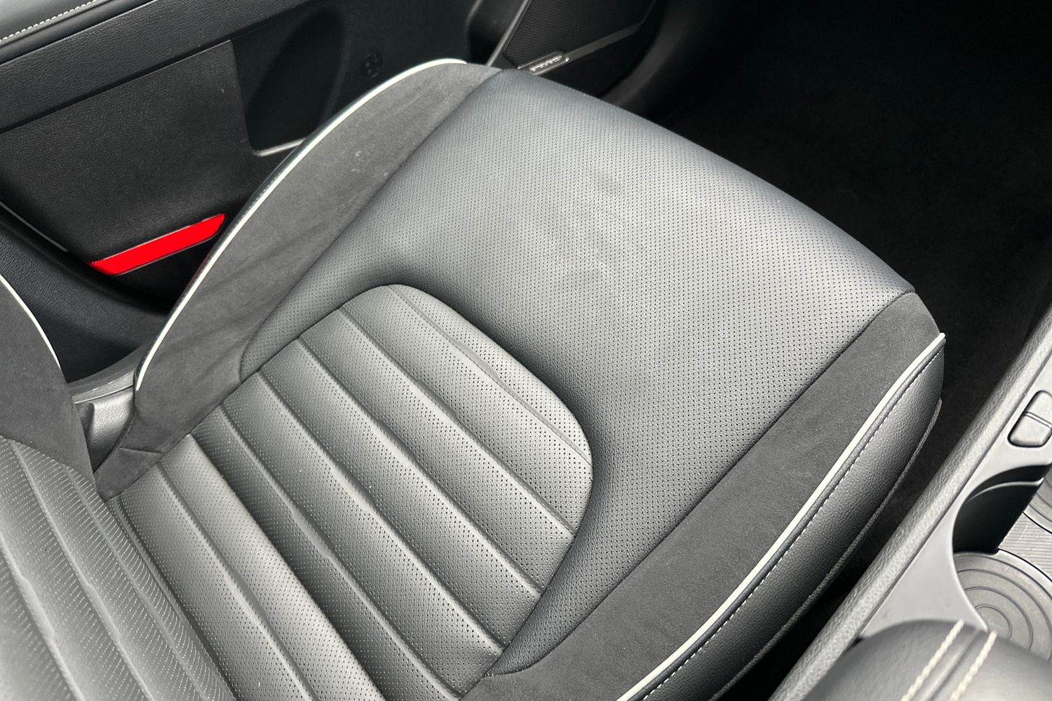 "Dakota leather upholstery with perforation and contrast stitching",