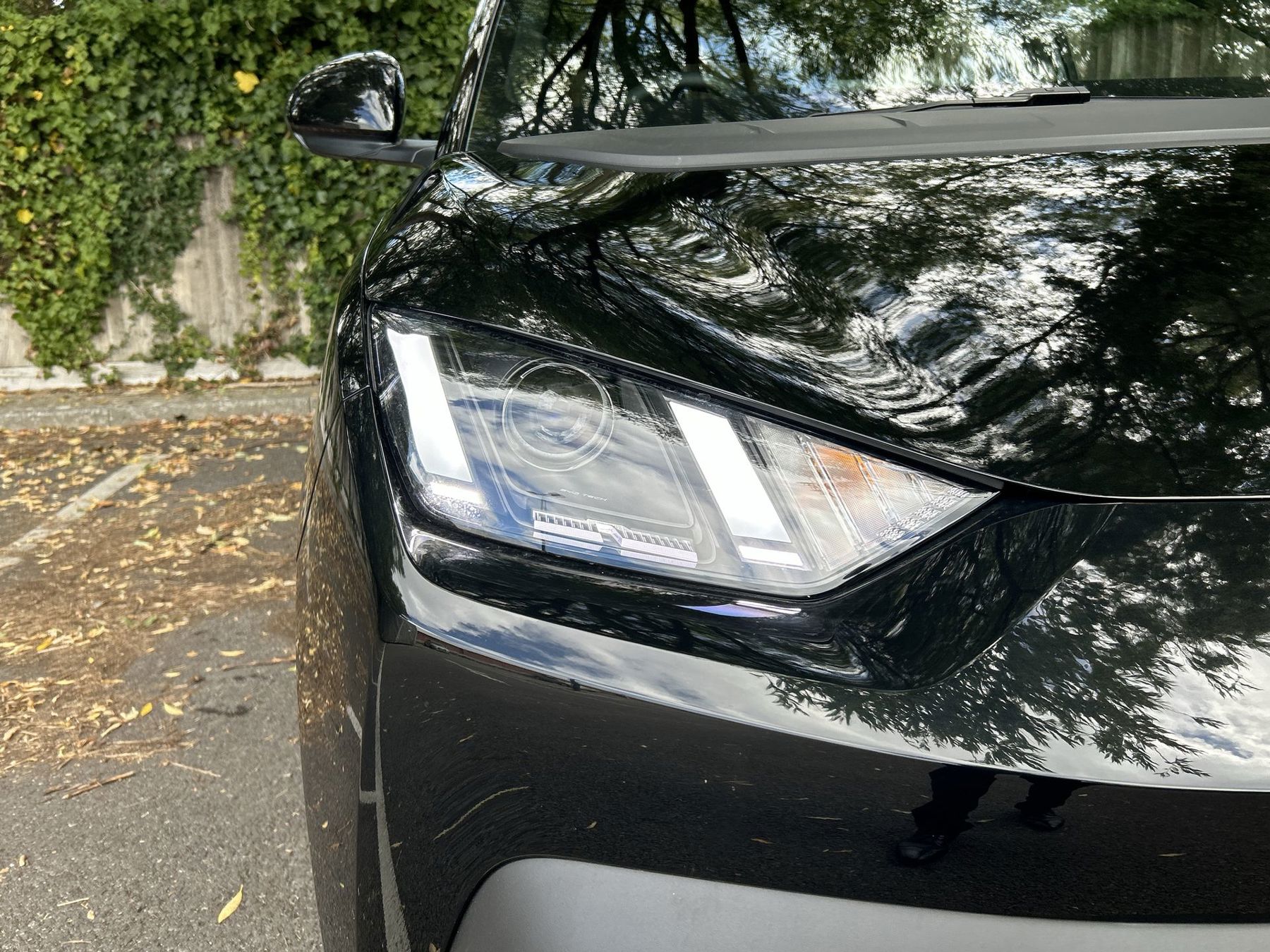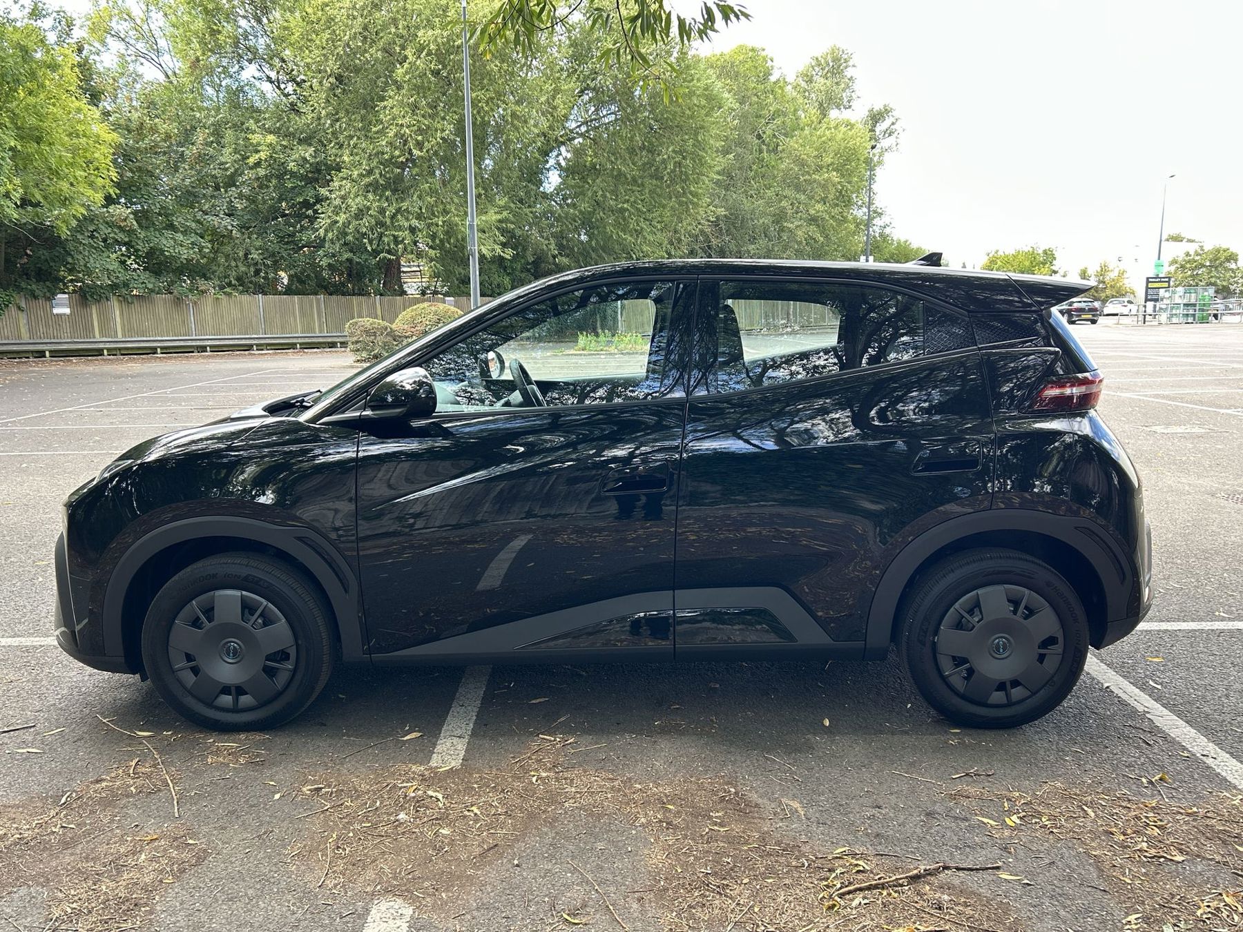 "Matt black roof moulding, B pillar finisher and wheel arch trim",