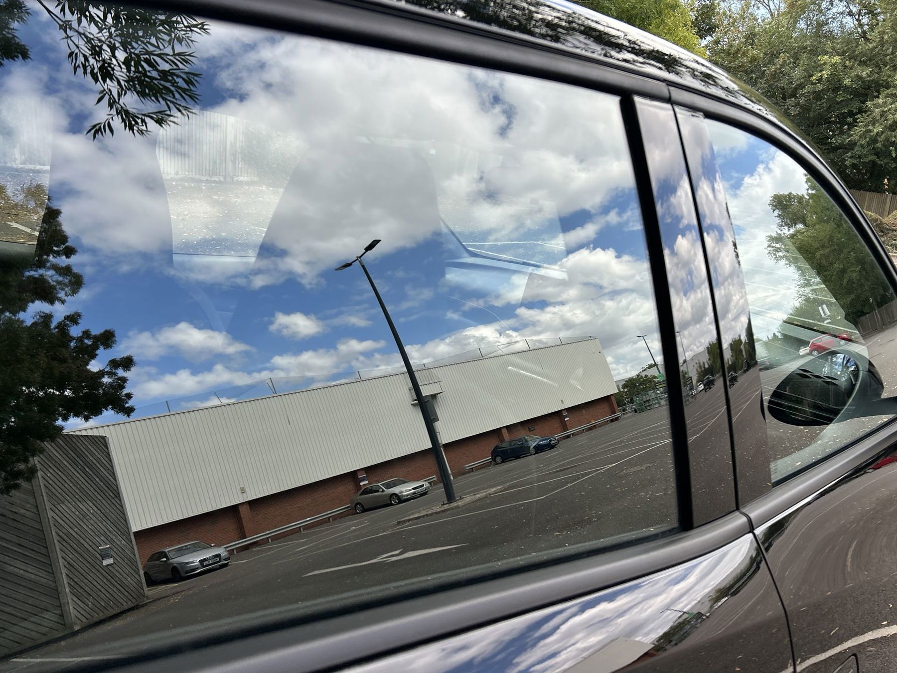 "Matt black window frame",